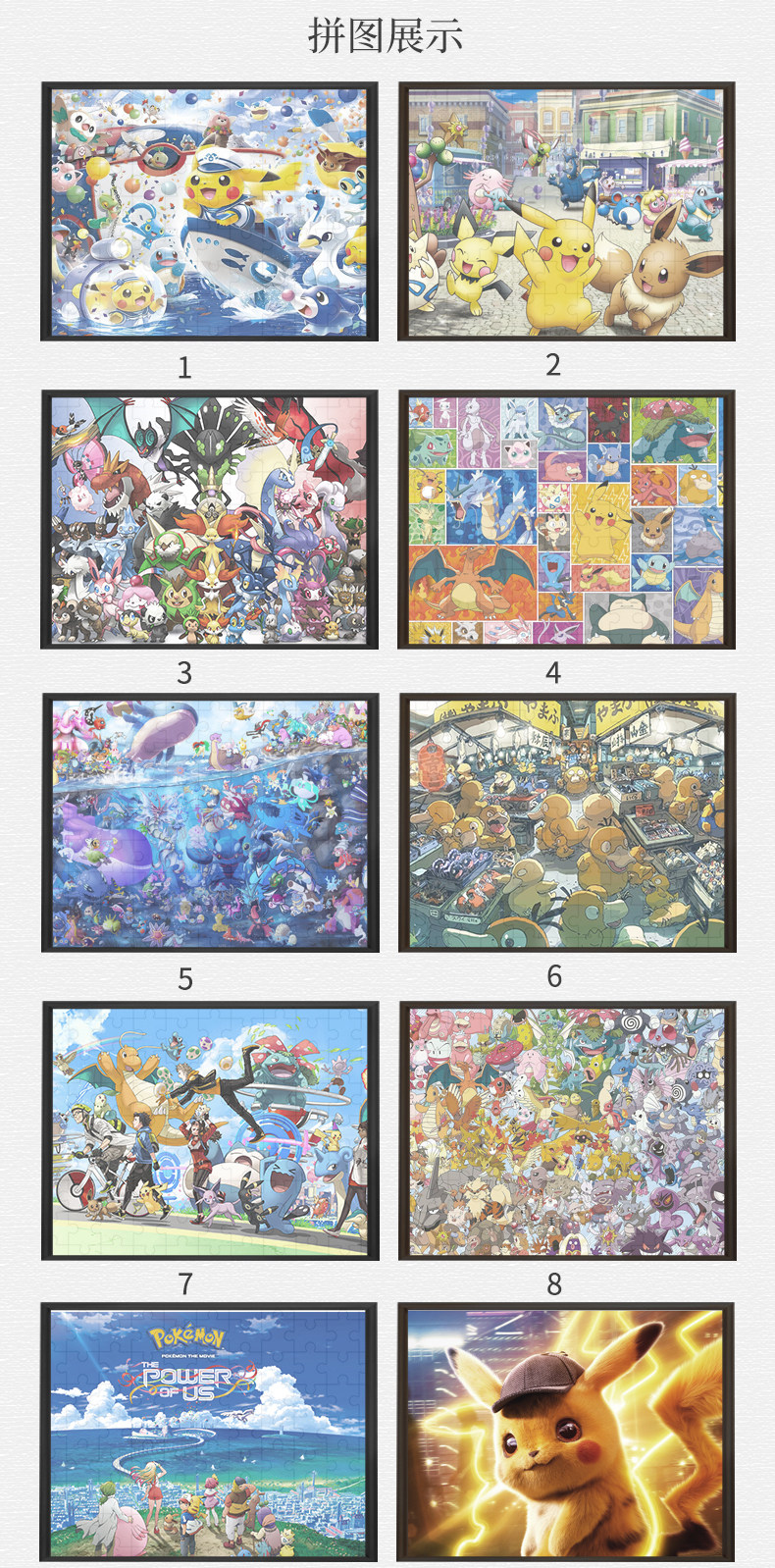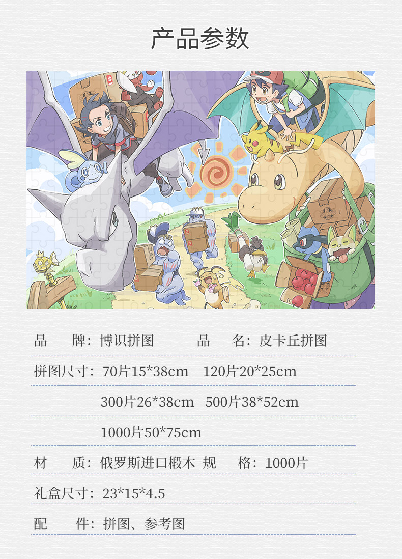 Pikachu Pokémon 500-Piece Wooden Puzzle with Photo Frame, Cartoon Anime Large and Difficult Puzzle Toy Gift
