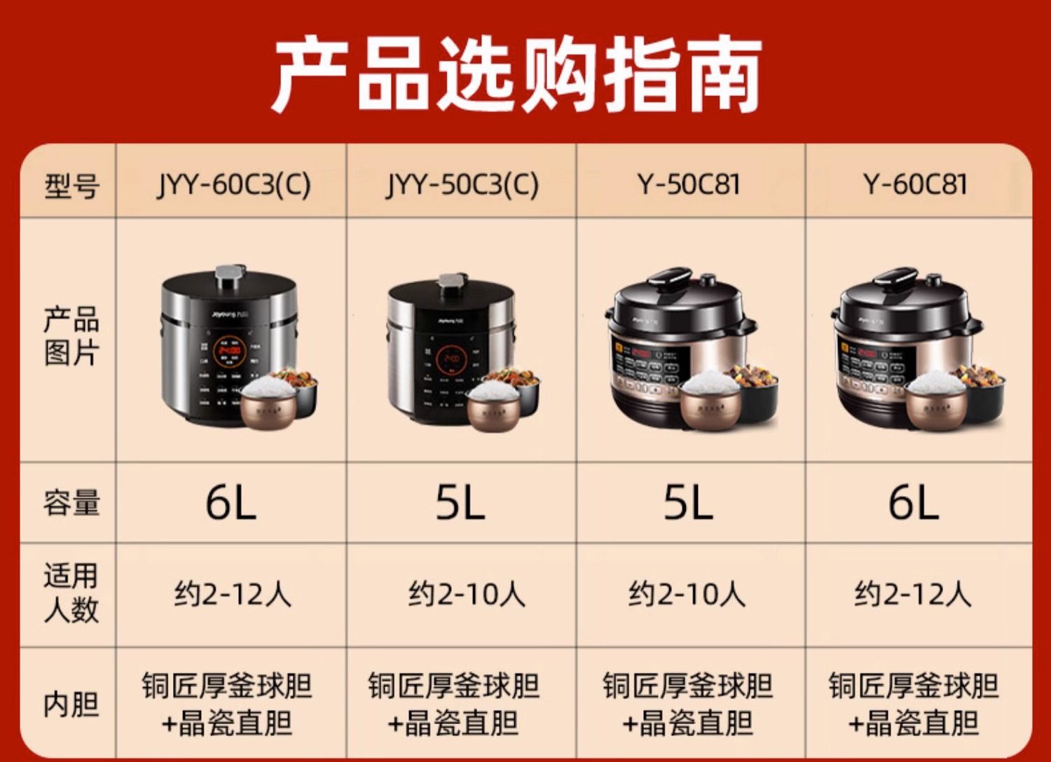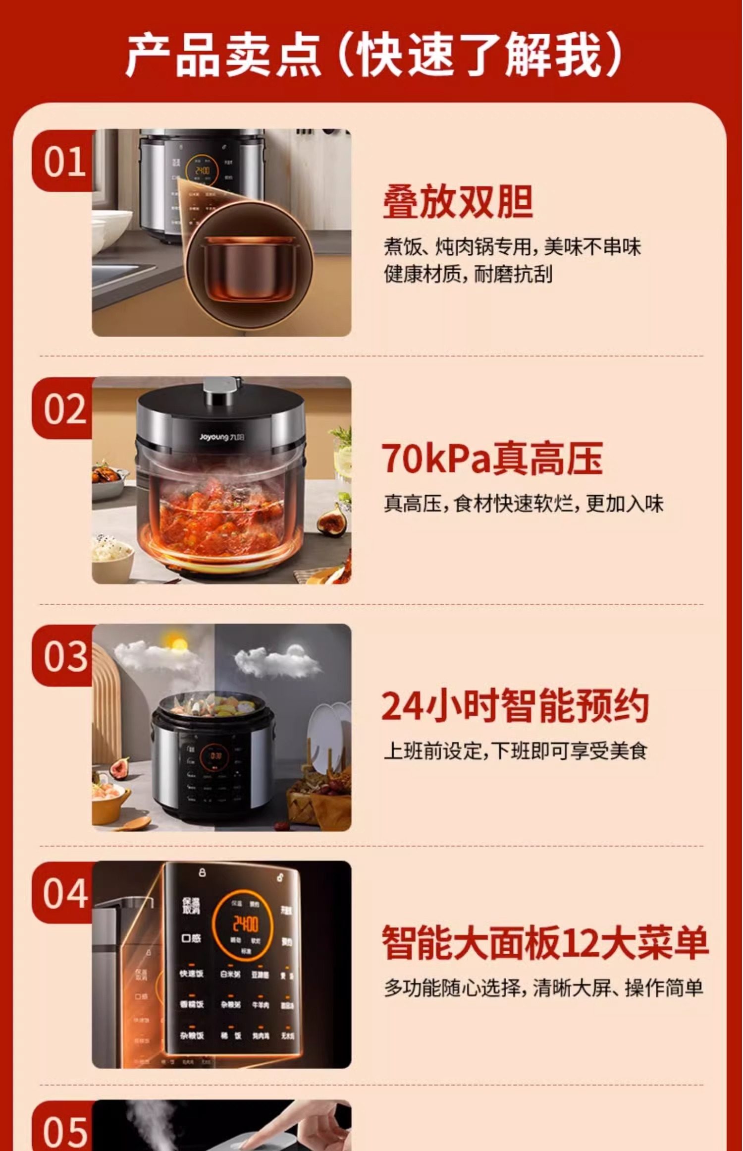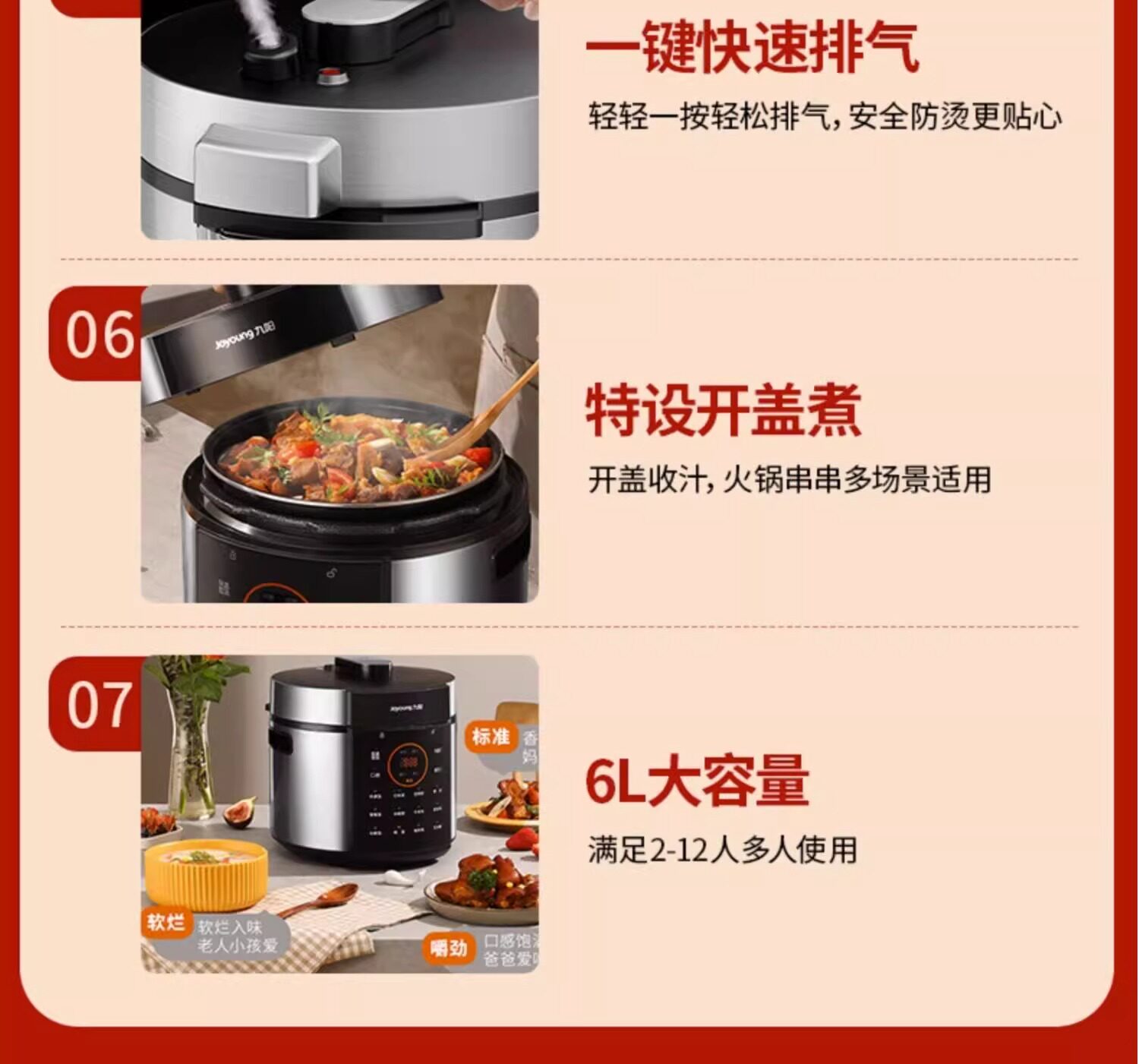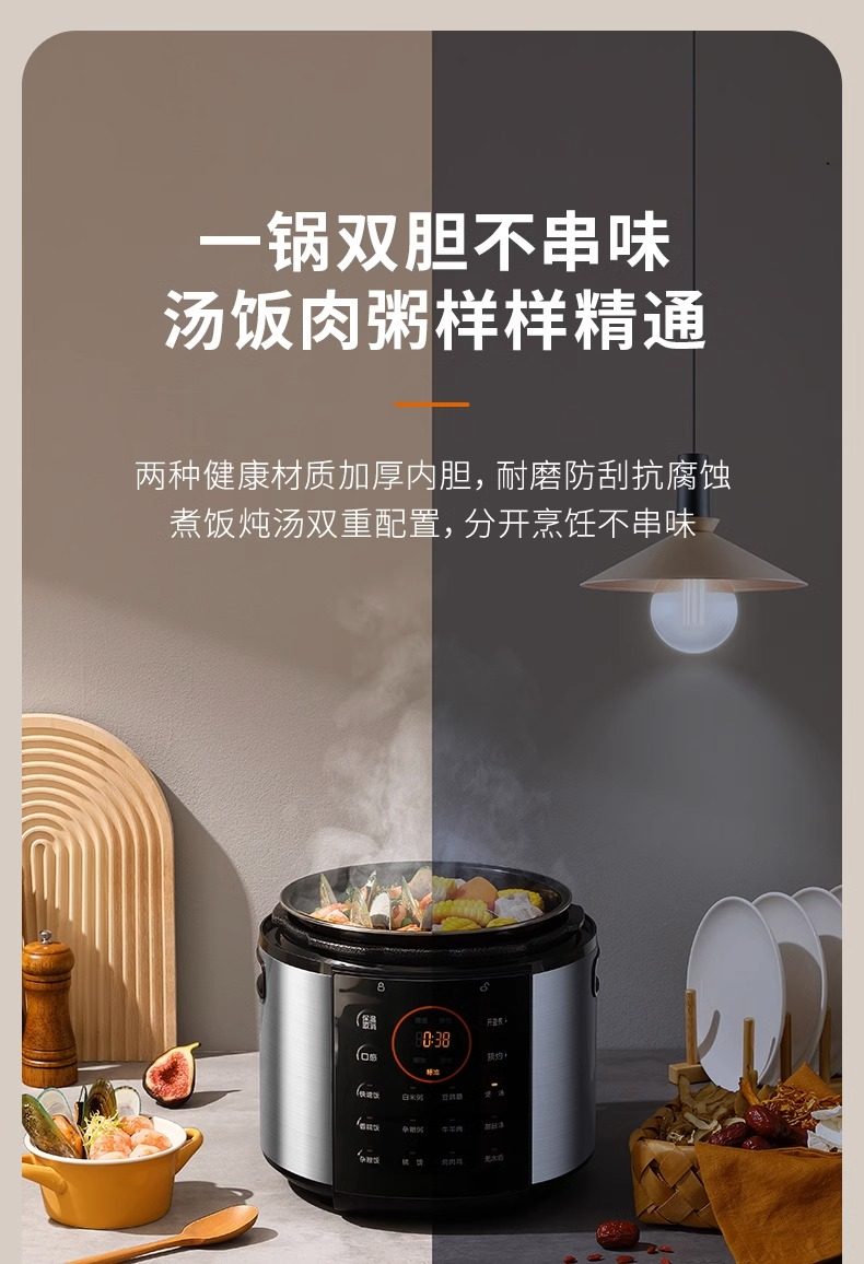 Joyoung Electric Pressure Cooker Smart Electric Pressure Cooker Rice Cooker for Home Use 6L Dual Pot Large Capacity Multifunctional 2-3-4-5-6