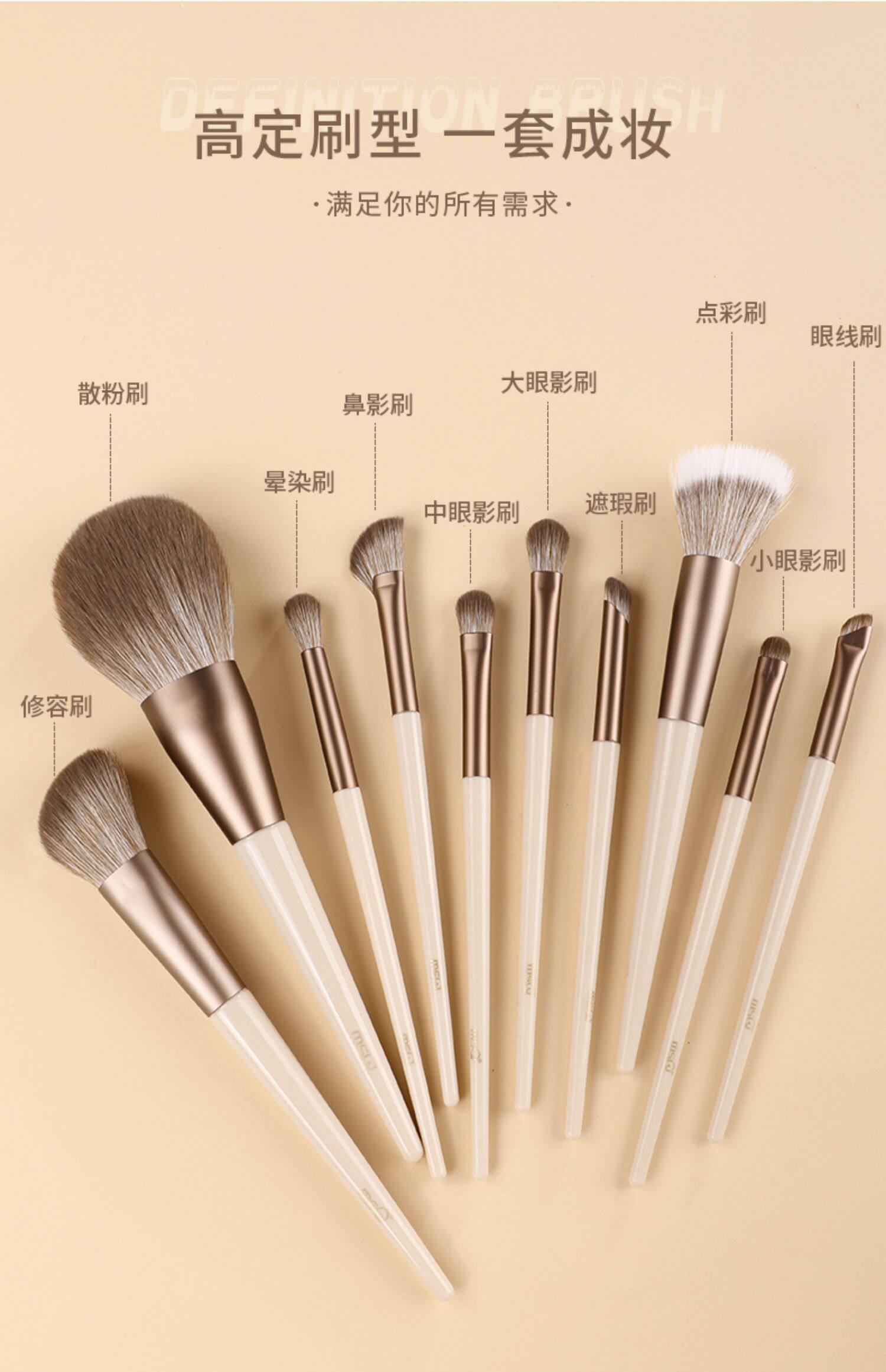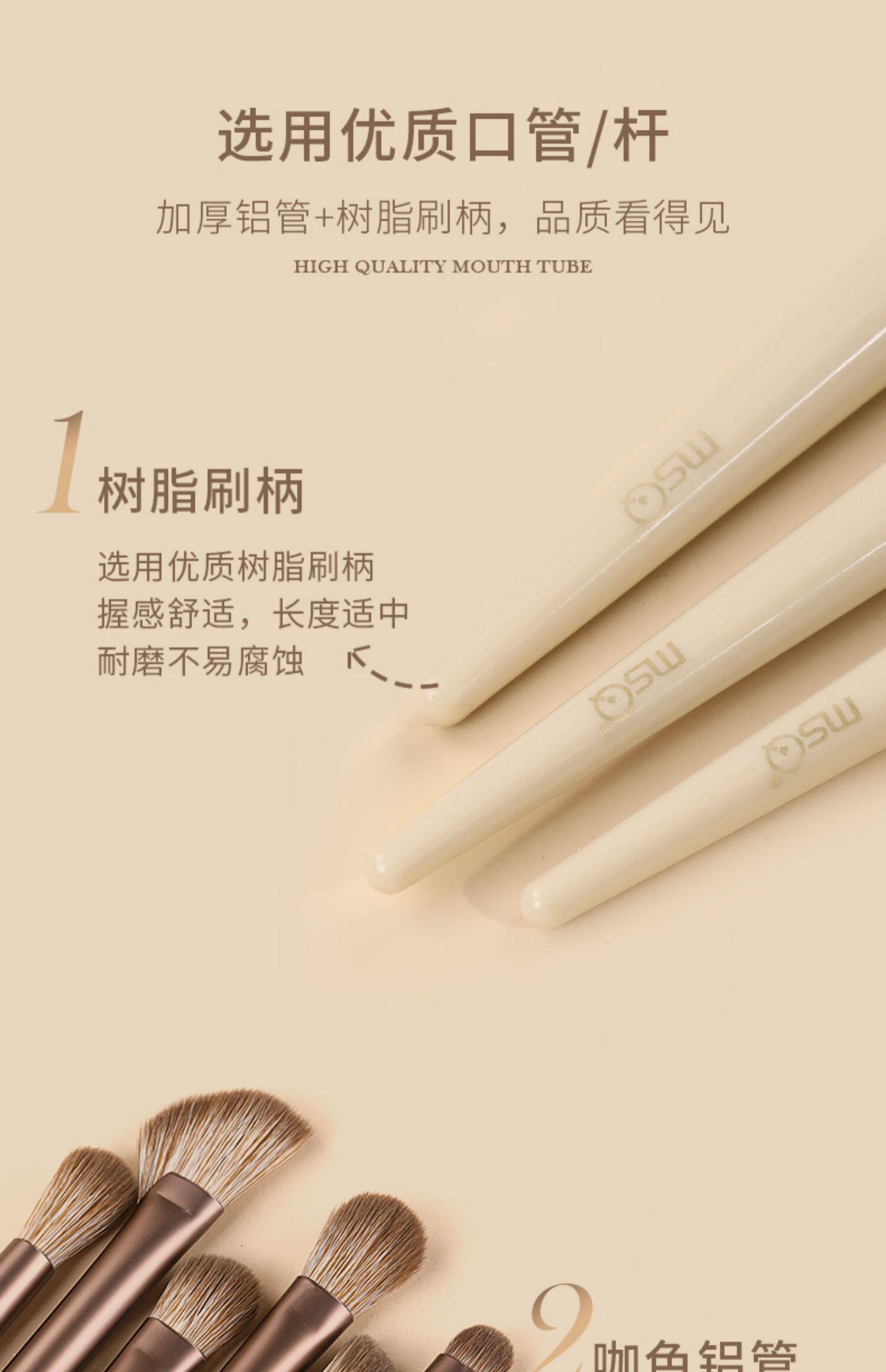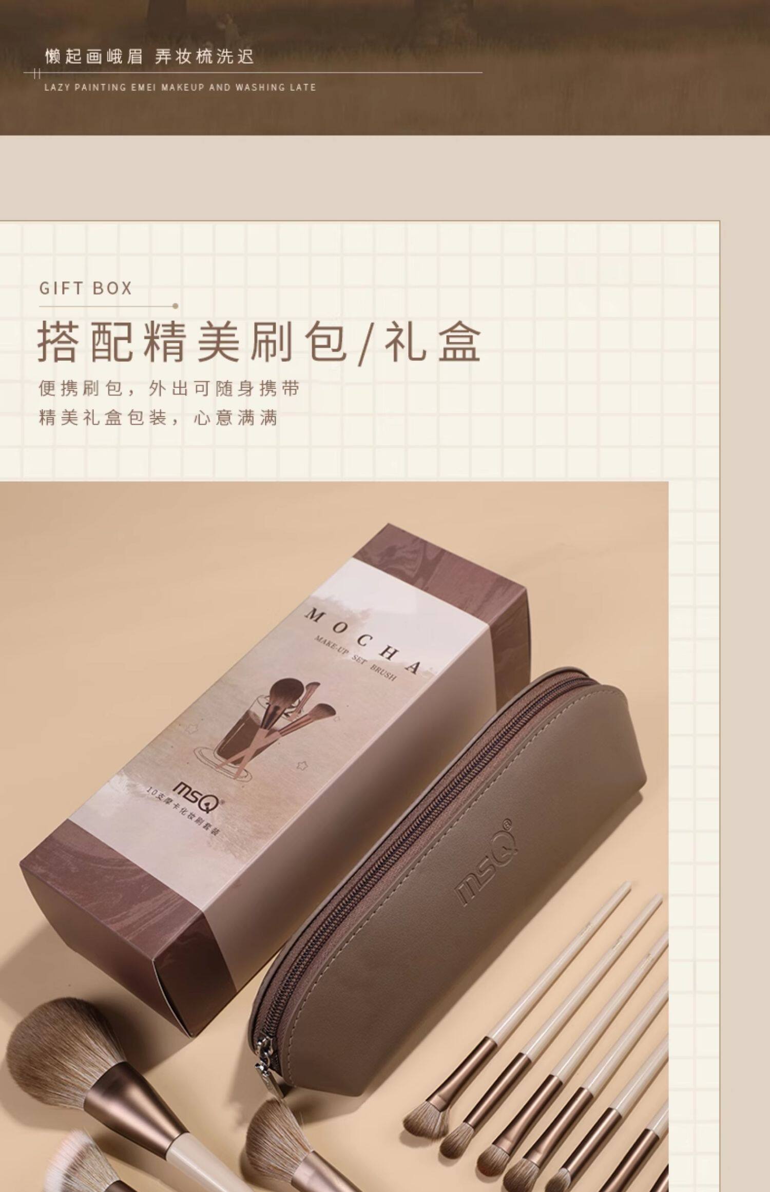Msq/Meisika 10-Piece Mocha Makeup Brush Set Soft Makeup Brushes for Beginners Soft-Bristled Portable Brush Set
