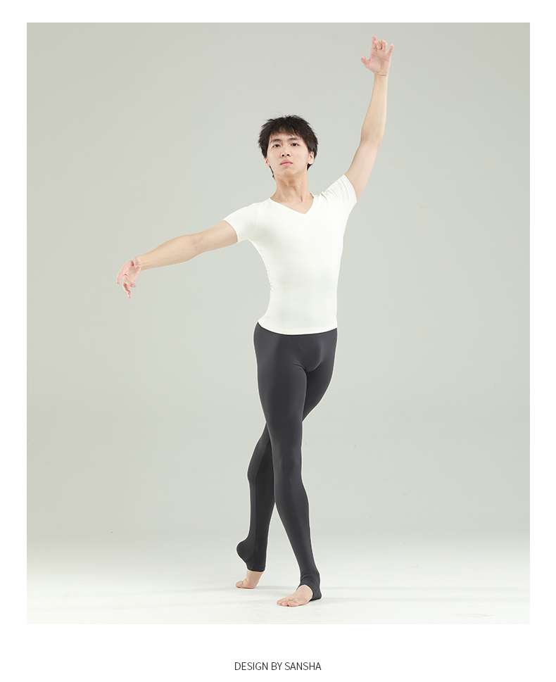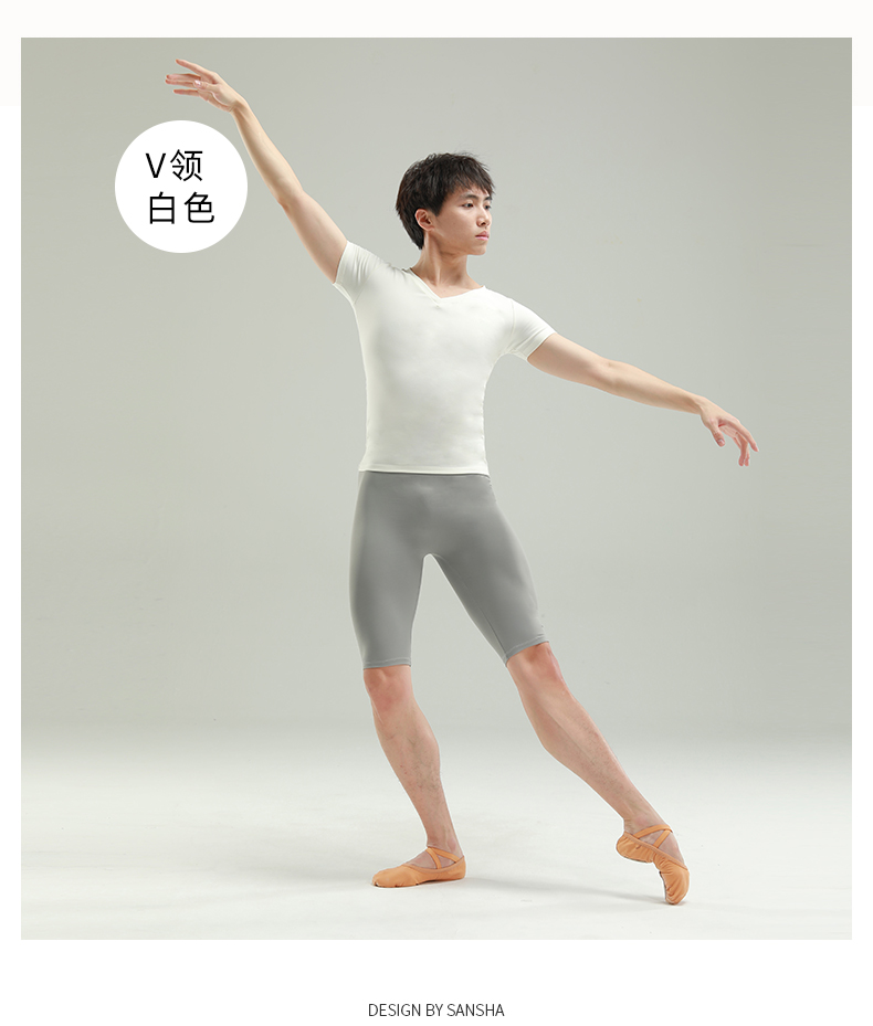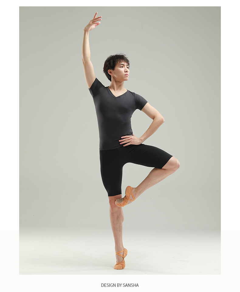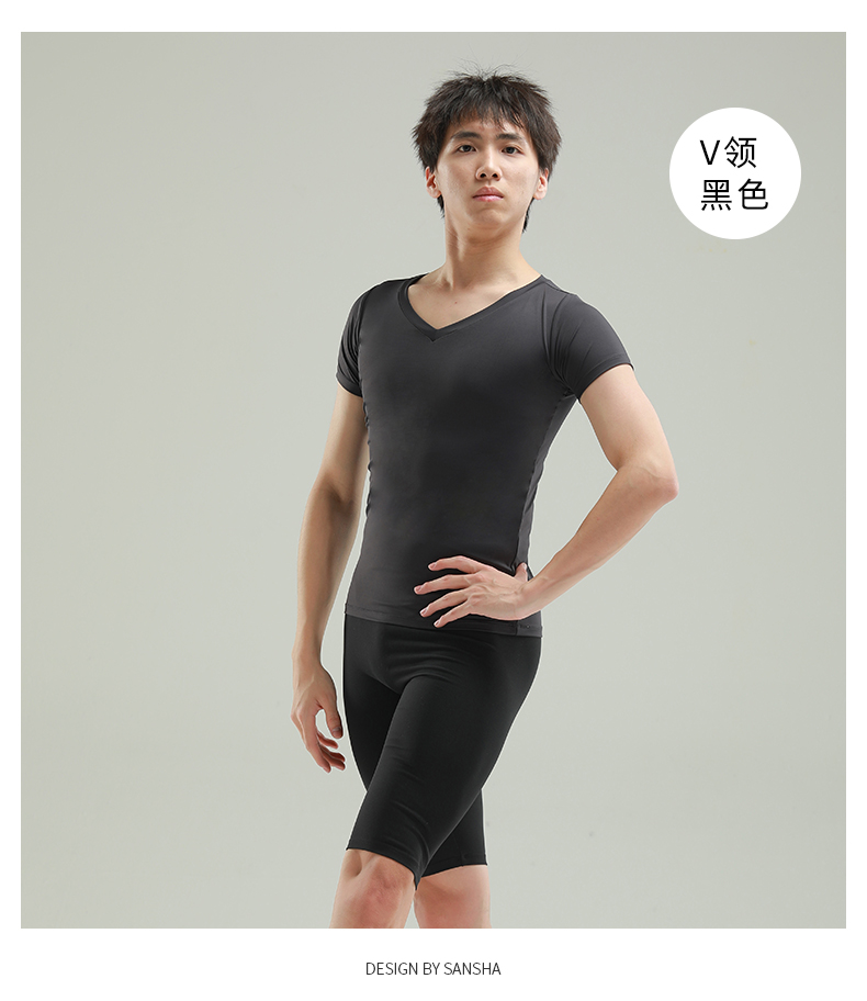 France sansha men's ballet clothing top boy round neck v-neck short-sleeved dance art exam training top t-shirt