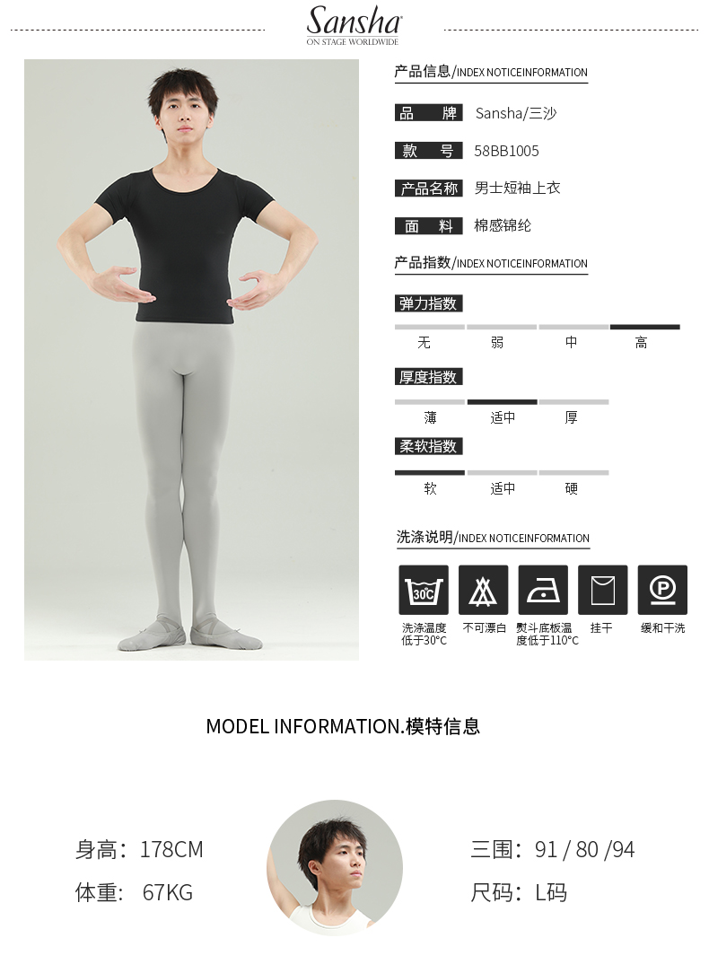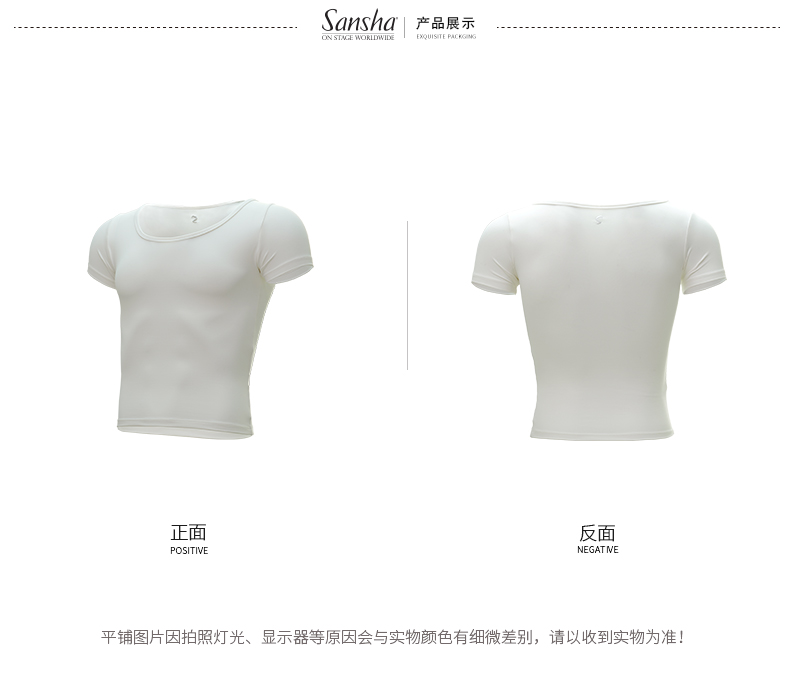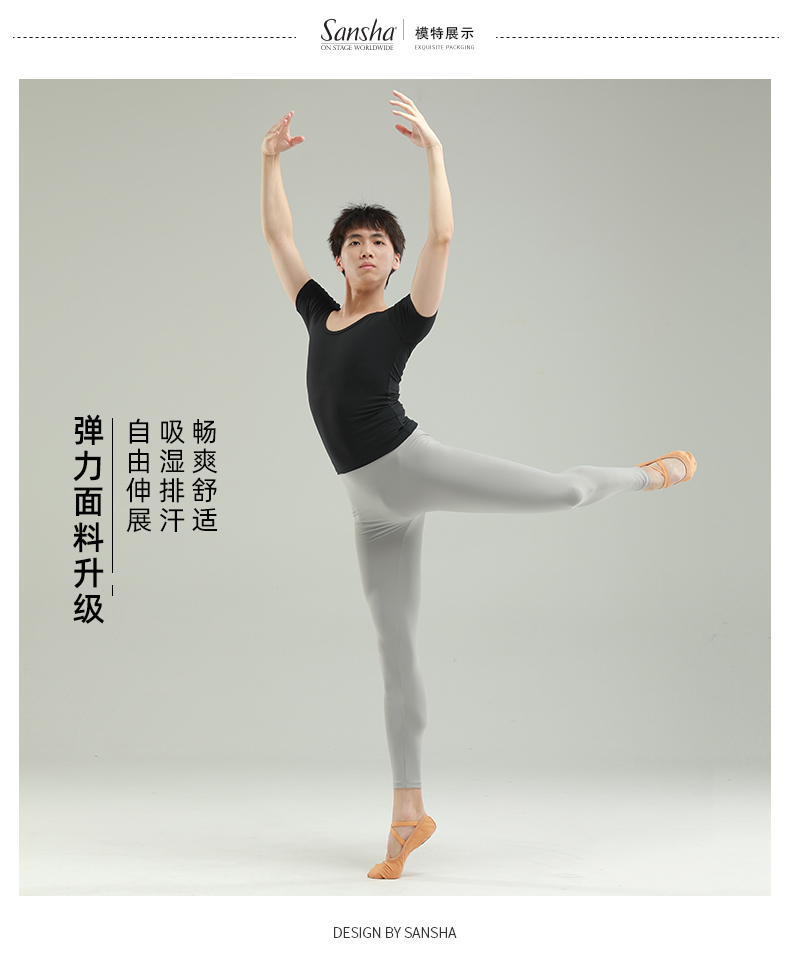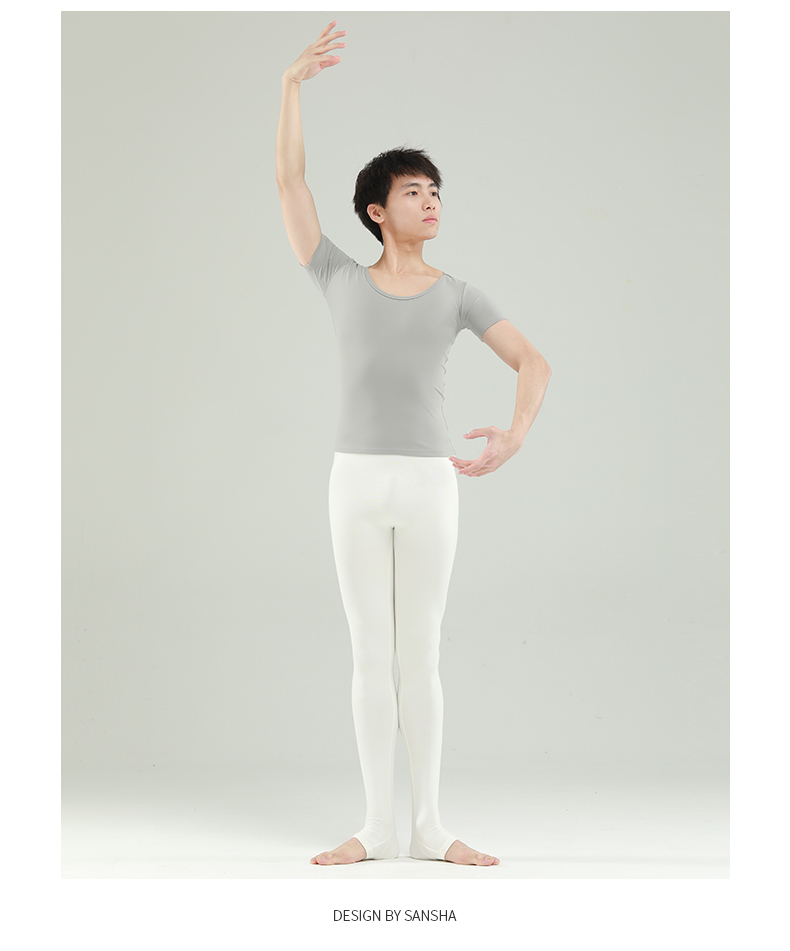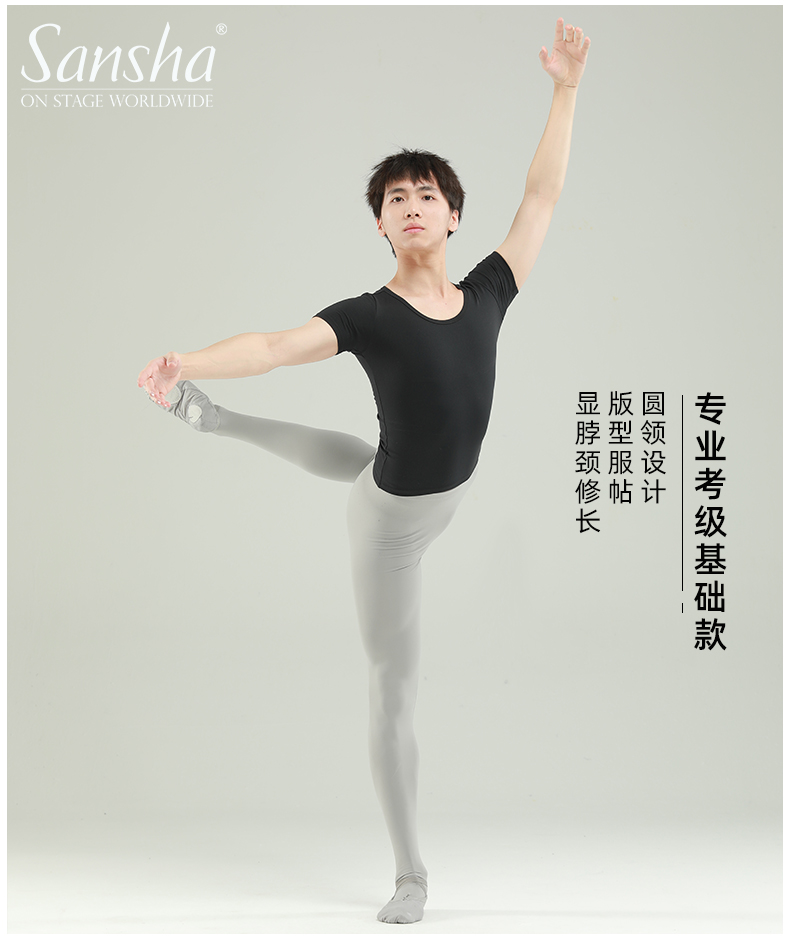 France sansha men's ballet clothing top boy round neck v-neck short-sleeved dance art exam training top t-shirt