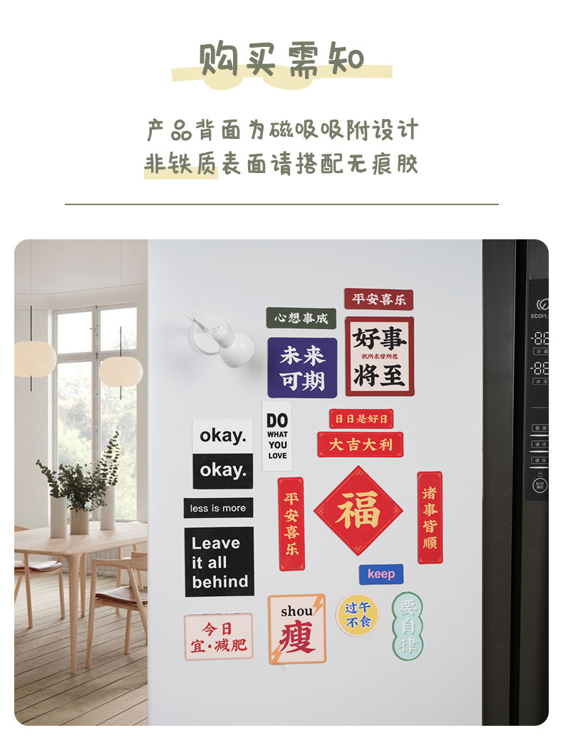 Color Classification Iron Refrigerator—[Loving Notes + Good Fortune & Great Success]1 Large + 5 Small,Iron Refrigerator—[Value Pack]18 Slices,Iron Refrigerator—[Good Luck]5 Pieces,Iron Refrigerator—[The Future Is Promising]4 Slices,Iron Refrigerator—[Be Self-Disciplined]5 Pieces,Iron Refrigerator—[ins Wind]4 Slices,Non-Ferrous Refrigerator—[Loving Notes + Good Fortune & Great Success]1 Large + 5 Small,Non-Ferrous Refrigerator—[Value Pack]18 Slices,Non-Ferrous Refrigerator—[Good Luck]5 Pieces,Non-Ferrous Refrigerator—[The Future Is Promising]4 Slices,Non-Ferrous Refrigerator—[Be Self-Disciplined]5 Pieces,Non-Ferrous Refrigerator—[ins Wind]4 Slices