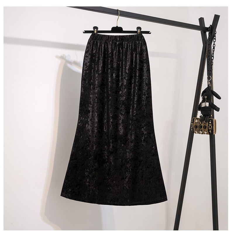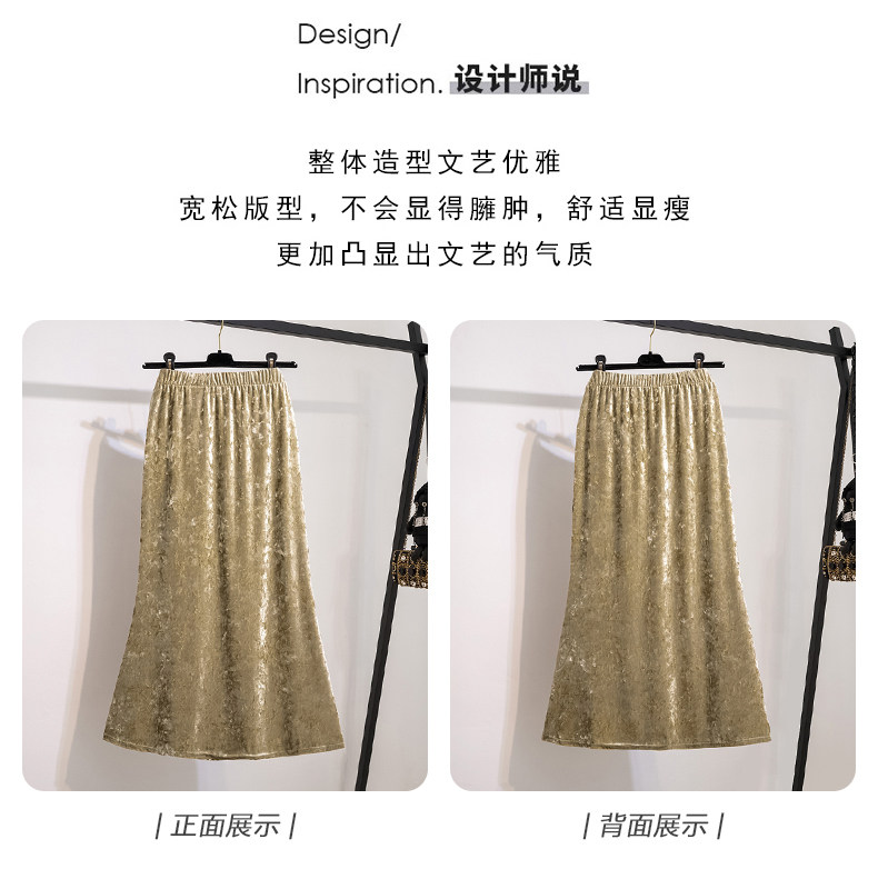 Super hot velvet skirt for women in autumn 2026 new large size skirt, huge and good-looking for fat mm, thirteen lines popular skirt