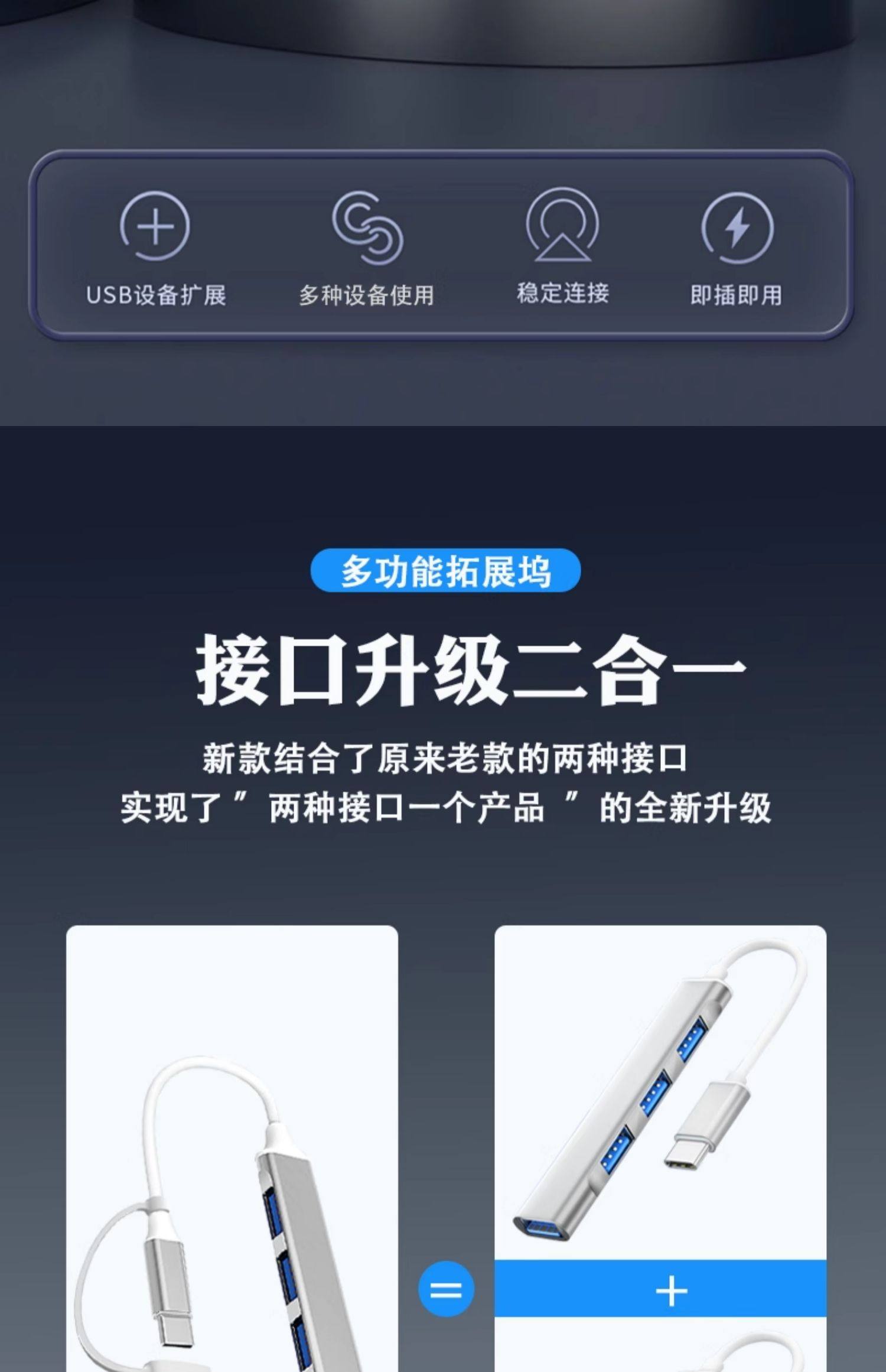 USB3.0 extender suitable for notebook Typec expansion multi-port splitter adapter docking station set extension line projection screen multi-plug converter excellent U disk plug computer tablet