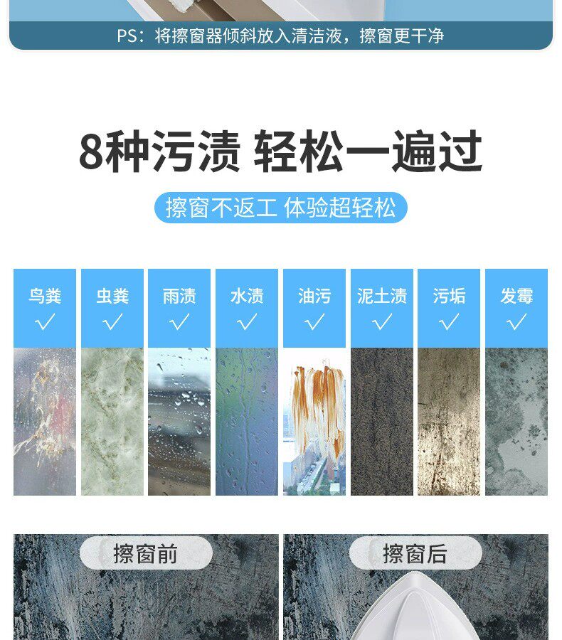German Glass Cleaning Tool, All-In-One Scraper for Home Use, High-Rise Window Interior and Exterior Cleaner, Double-Sided Professional Universal Glass Scraper