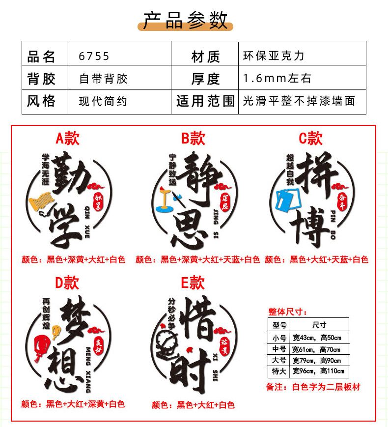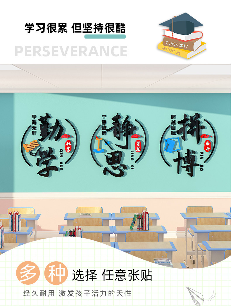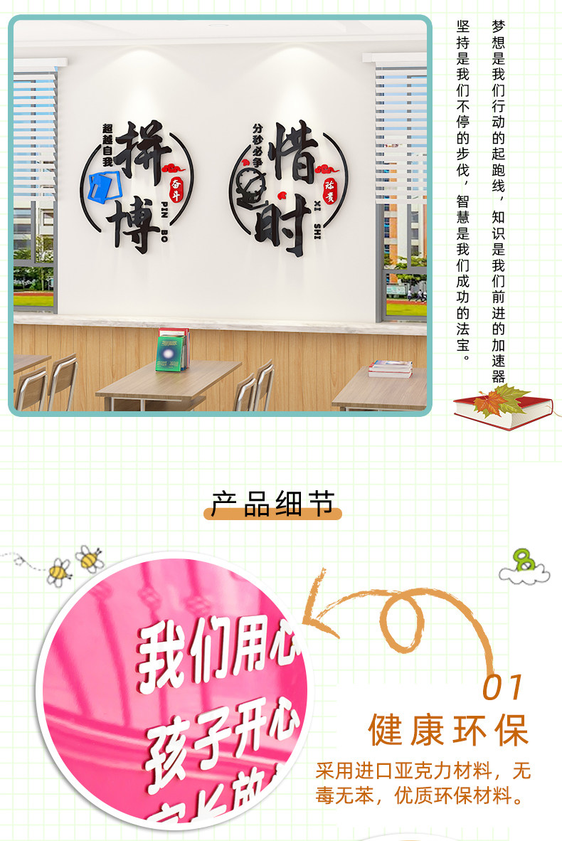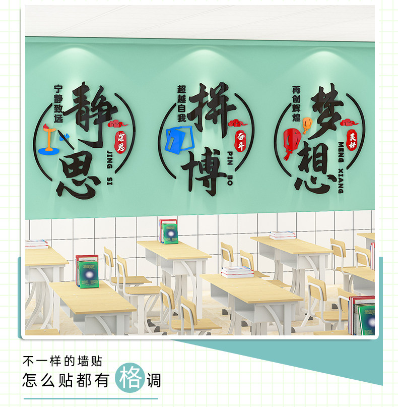 Primary School Classroom Decoration 3D Stereo Wall Stickers Inspirational Slogans for Students Middle and High School Class Culture Construction