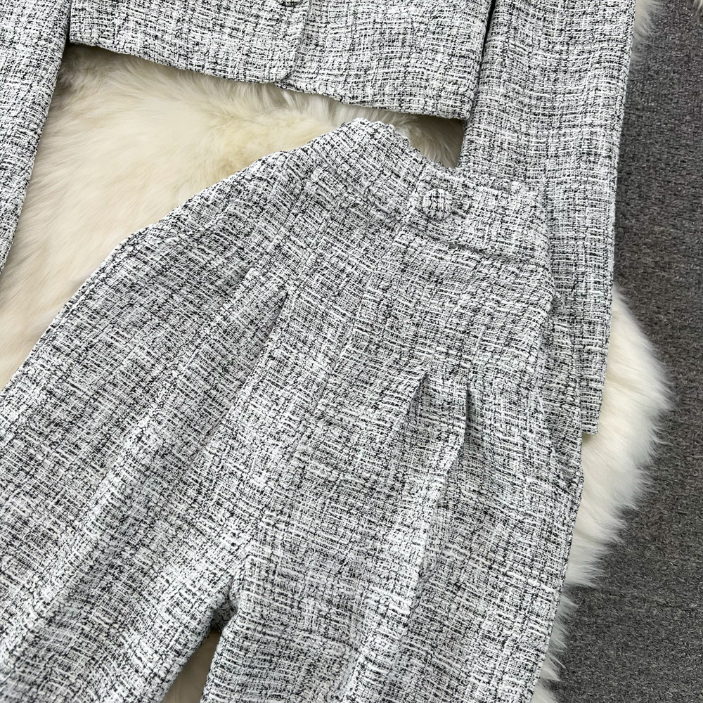 Fashion Suit Women's Korean Style Round Neck Single-Breasted Shirt Jacket Two-piece Casual High Waist Slim Straight Leg Wide Leg Pants
