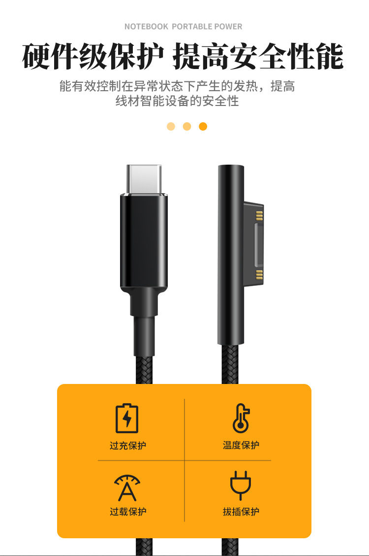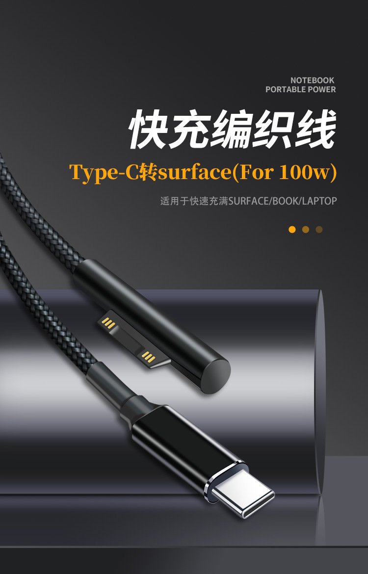 Suitable for Microsoft Surface Charging Cable Pd100W Fast Charging Type-C to Pro7/8 Data Cable Go2/3 Charger Surfacepro6/5/4 Computer Notebook Power Extension Cable