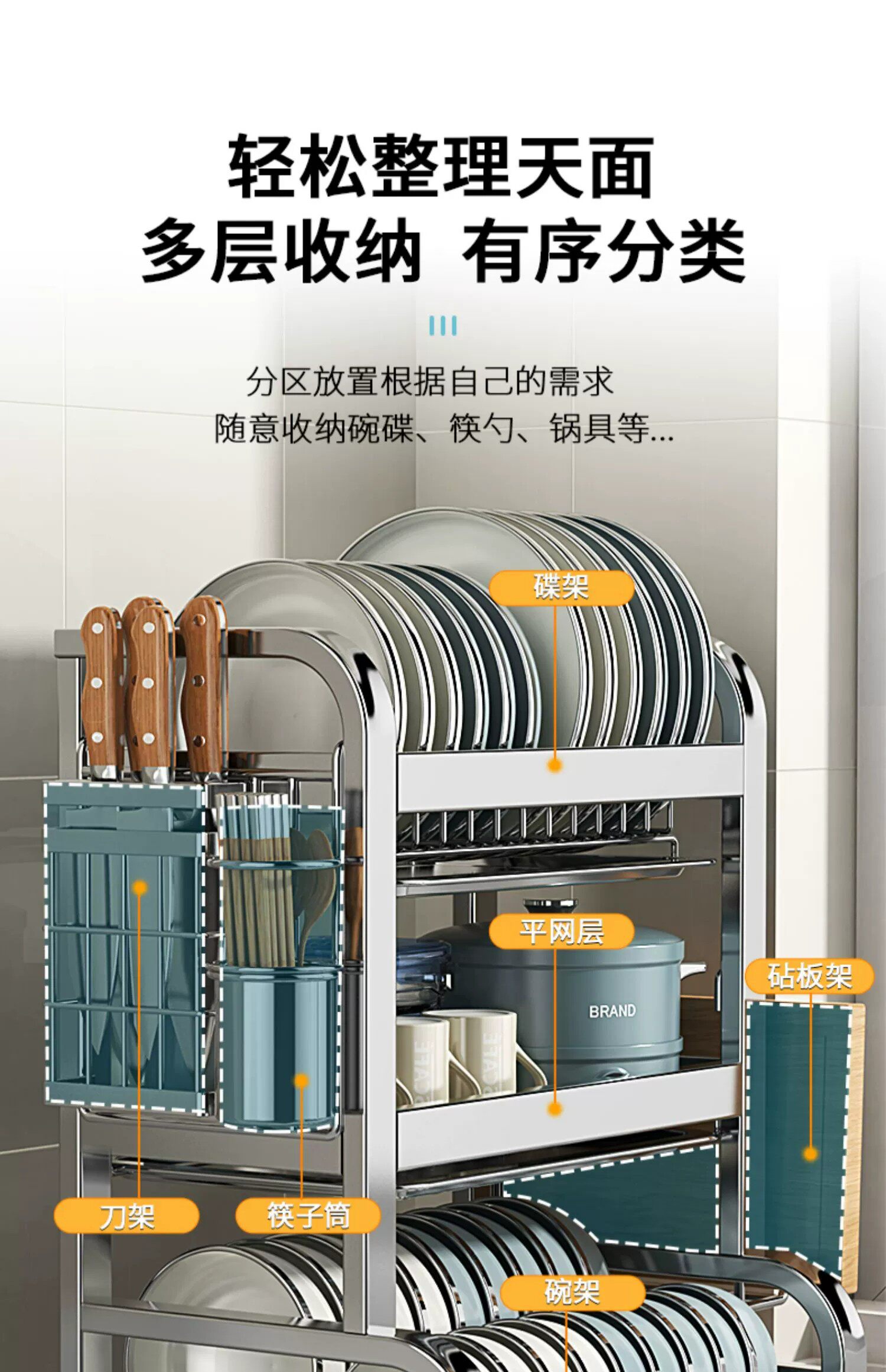 German Multi-Functional Stainless Steel Kitchen Storage Rack, Household Countertop Multi-Layer Dish Rack, Bowl and Plate Storage Rack