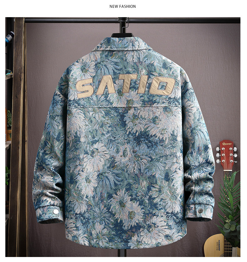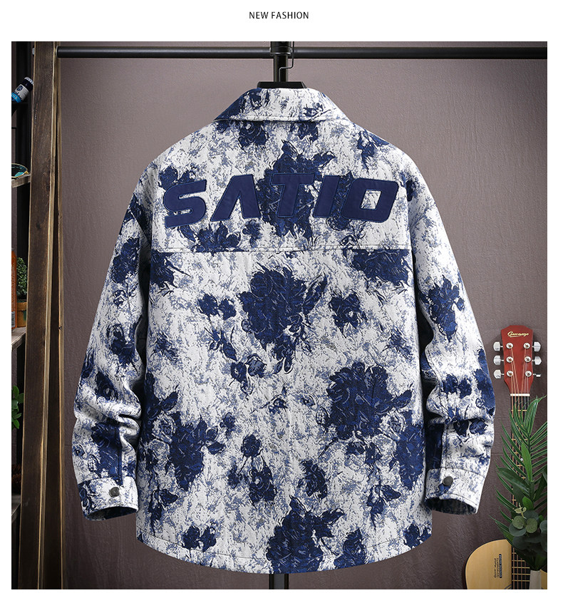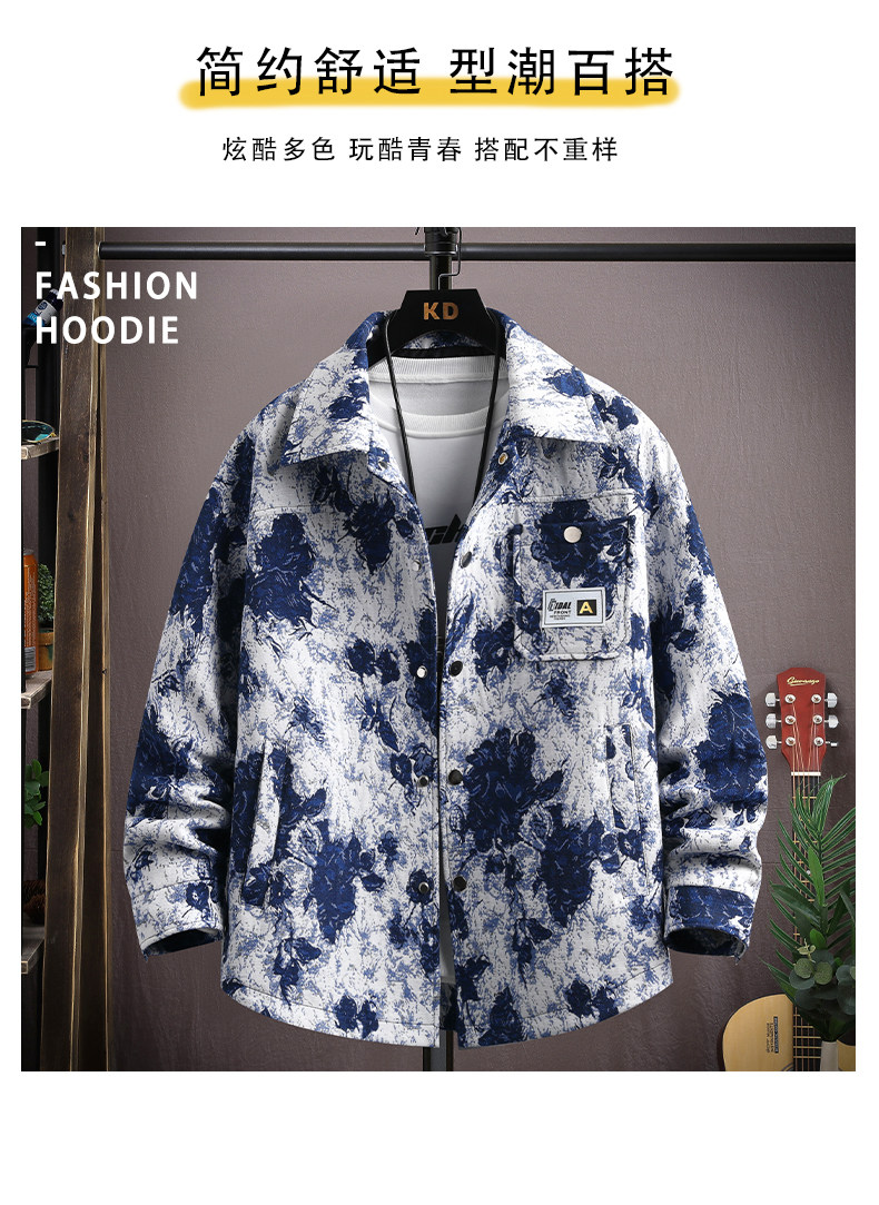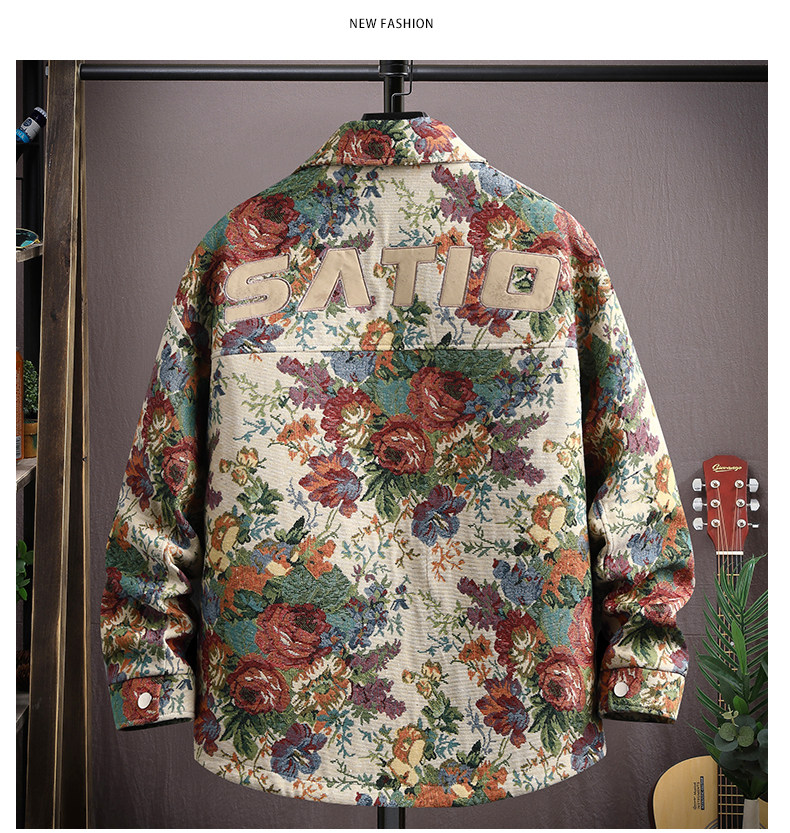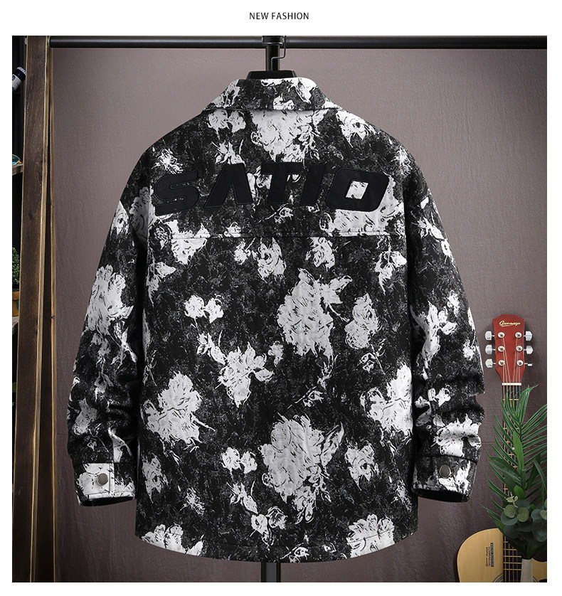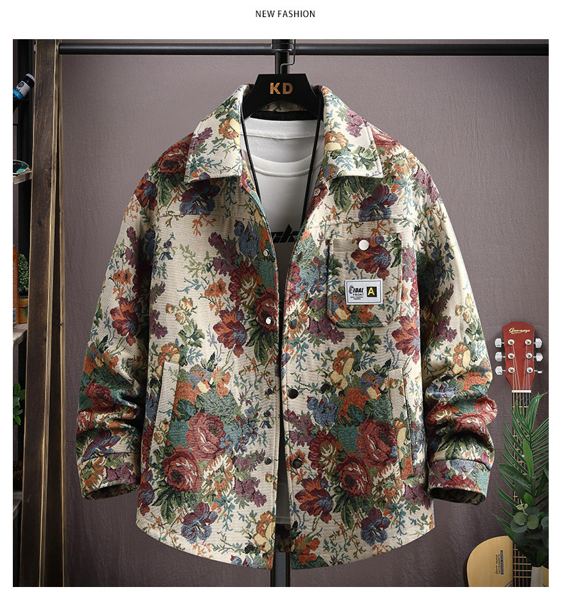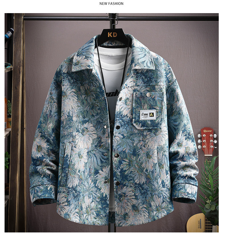 Autumn men's jacket loose and handsome ethnic style print 2025 new trendy brand versatile casual lapel top jacket