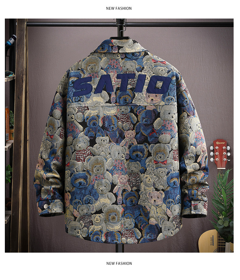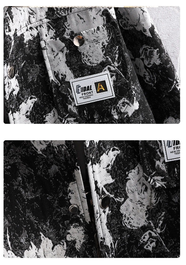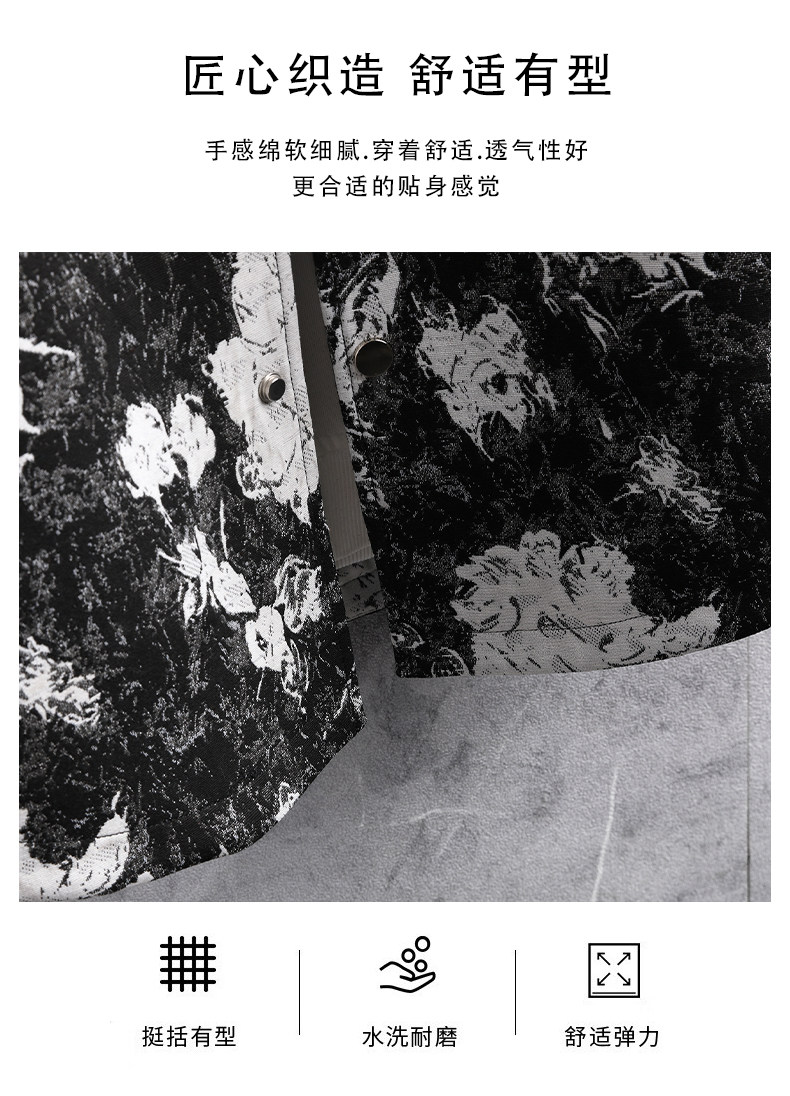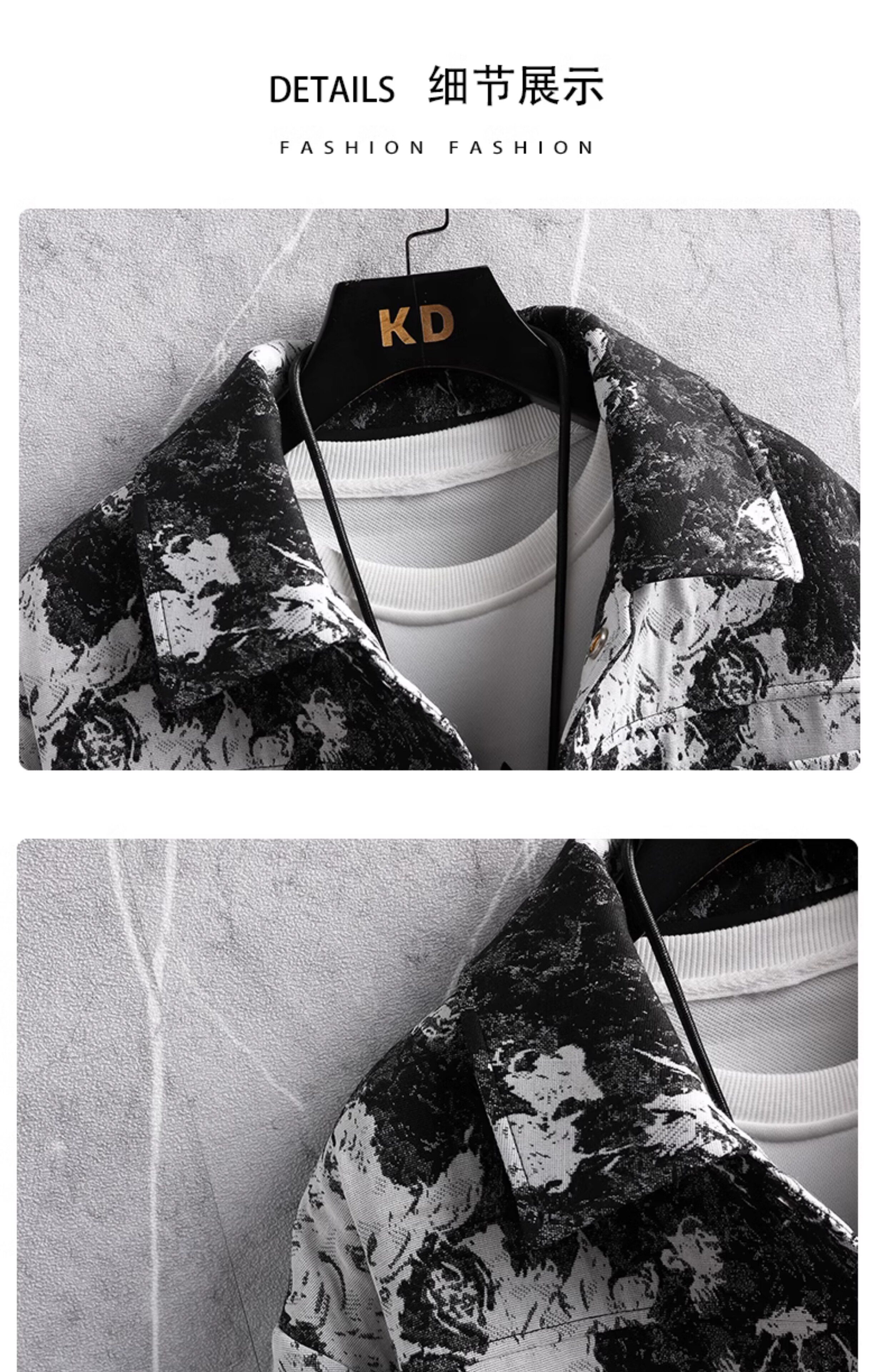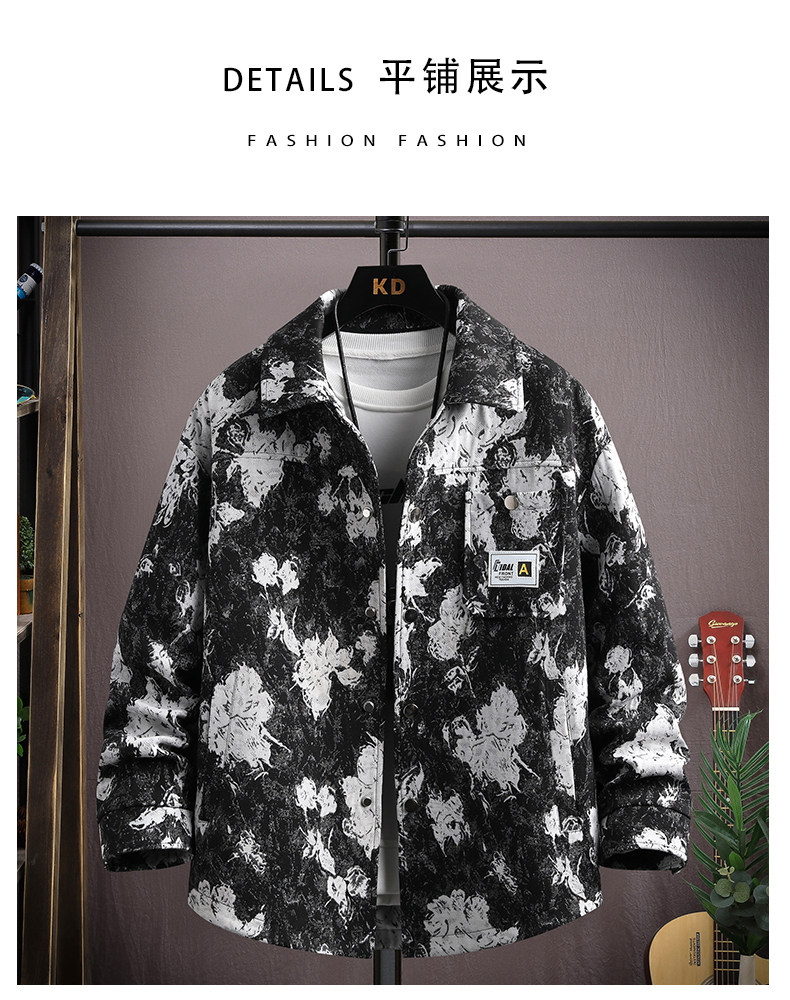 Autumn men's jacket loose and handsome ethnic style print 2025 new trendy brand versatile casual lapel top jacket