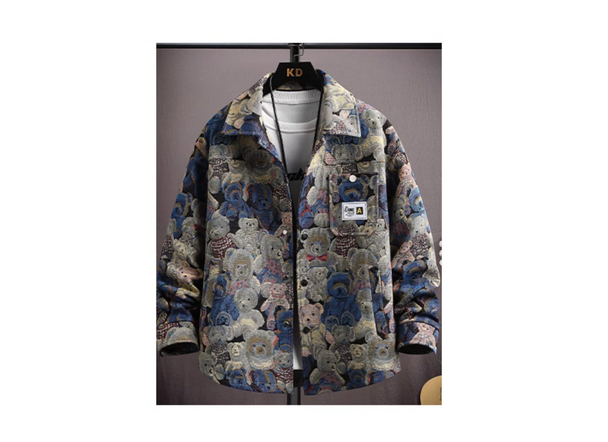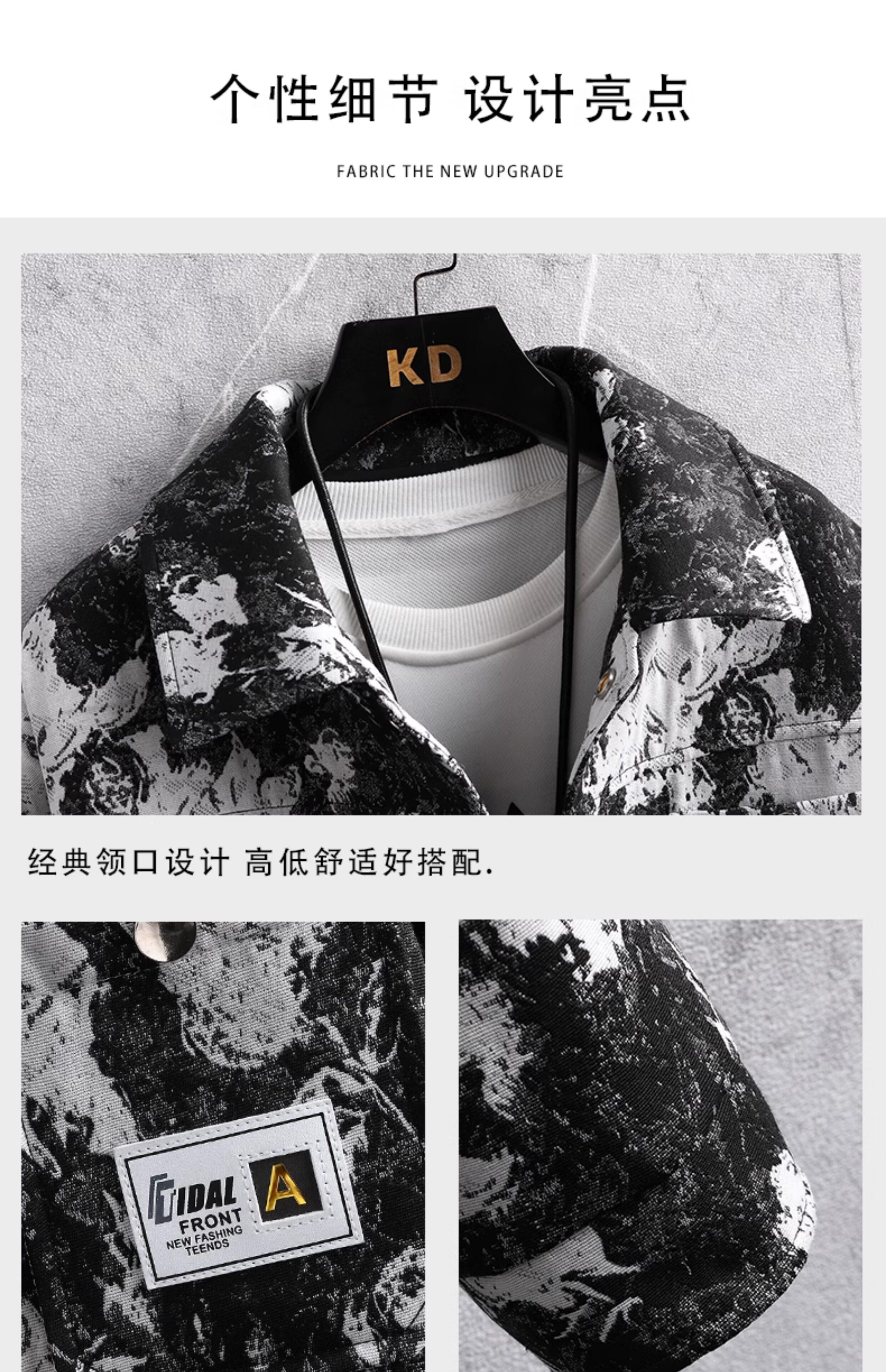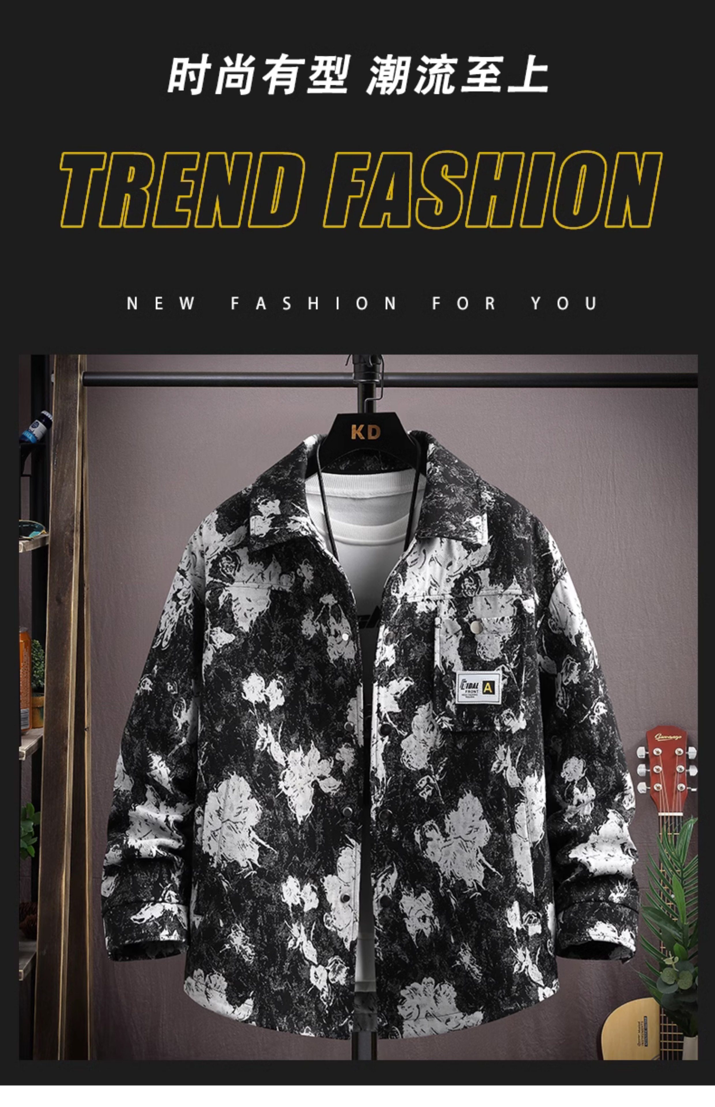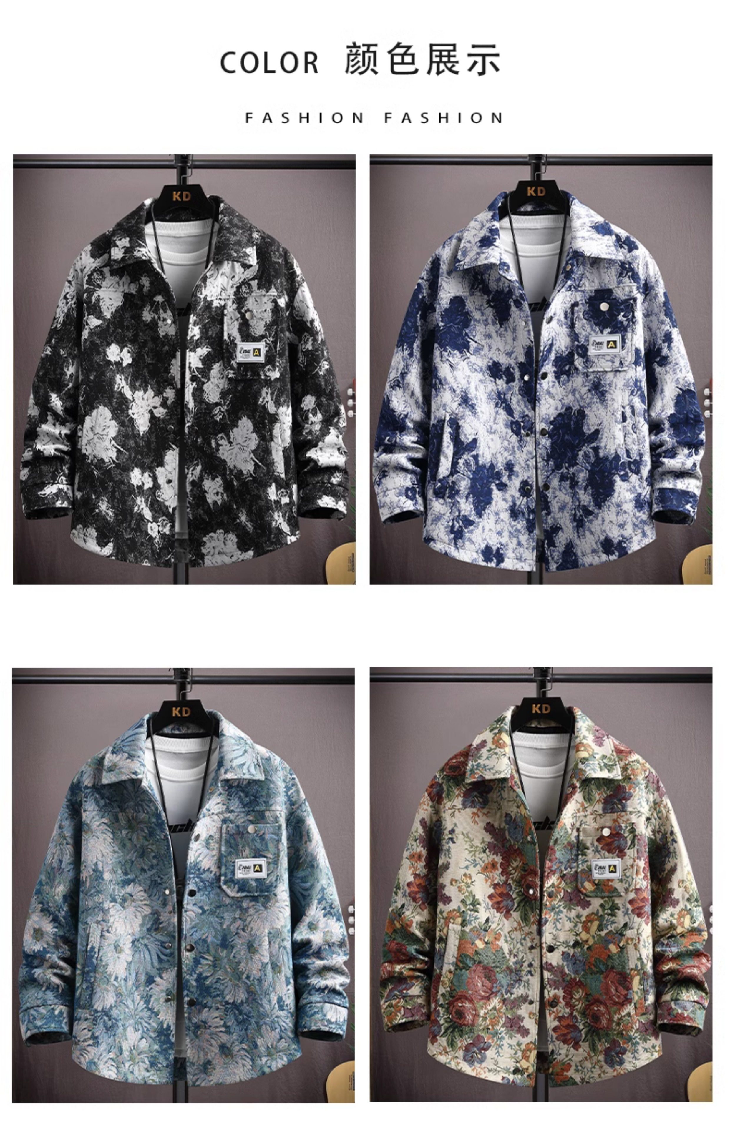 Autumn men's jacket loose and handsome ethnic style print 2025 new trendy brand versatile casual lapel top jacket