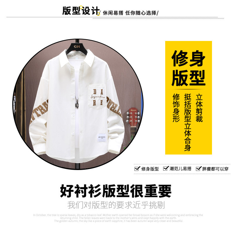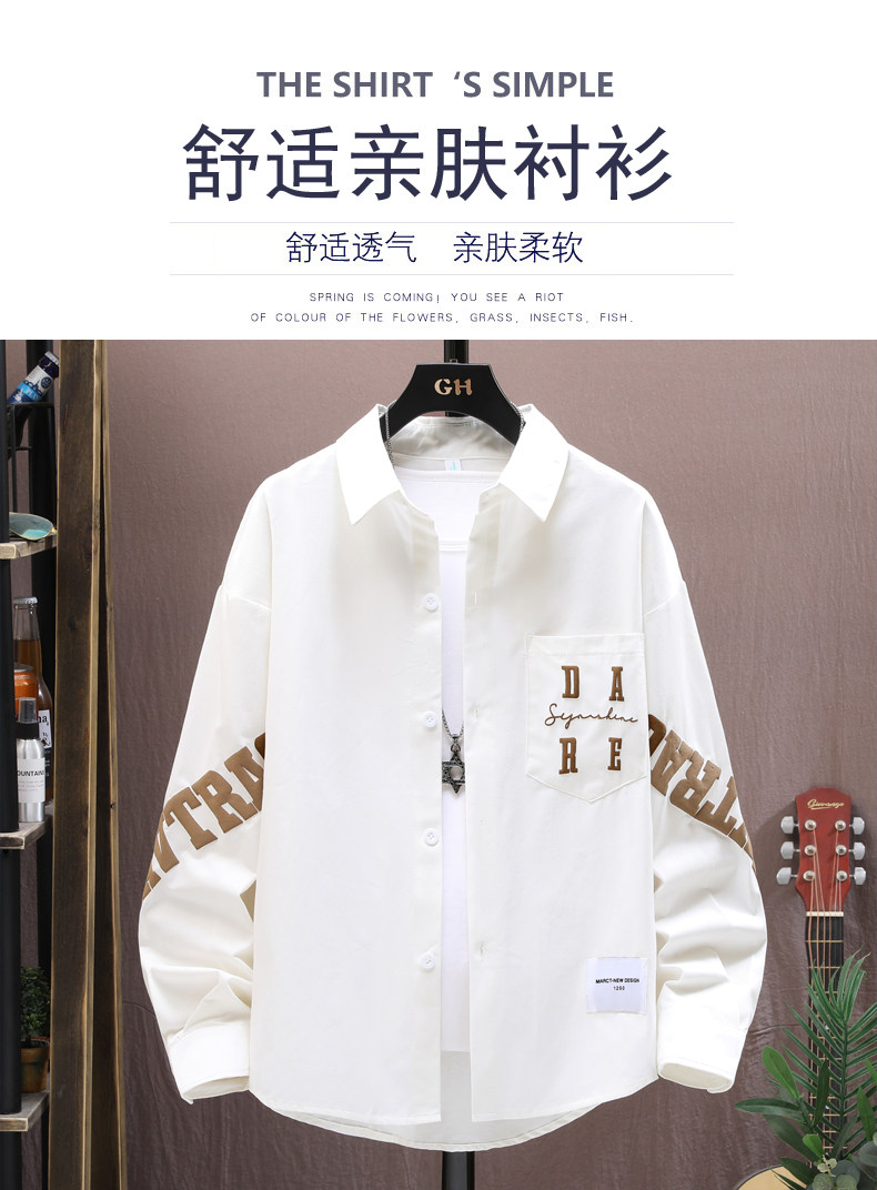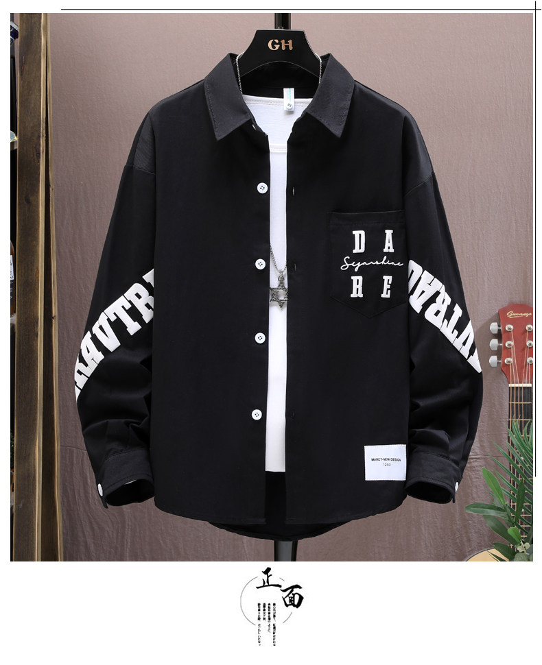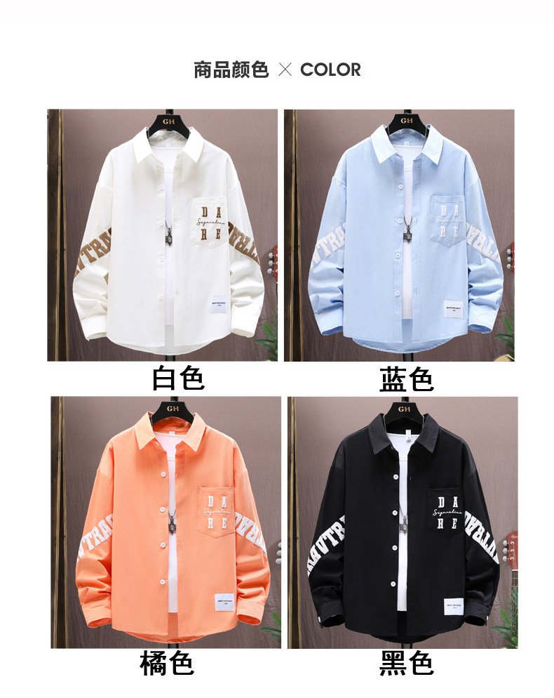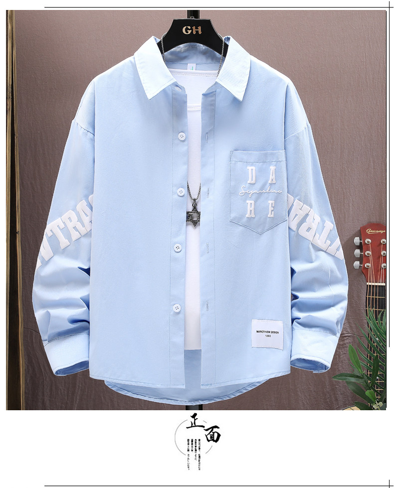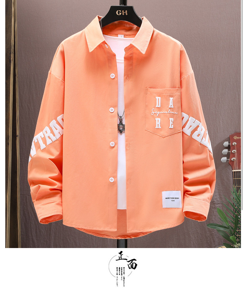Pure Cotton Long-Sleeved Shirt for Men, Autumn Loose-Fitting Shirt for Teenagers, Middle and High School Students, Casual Shirt, Versatile Jacket