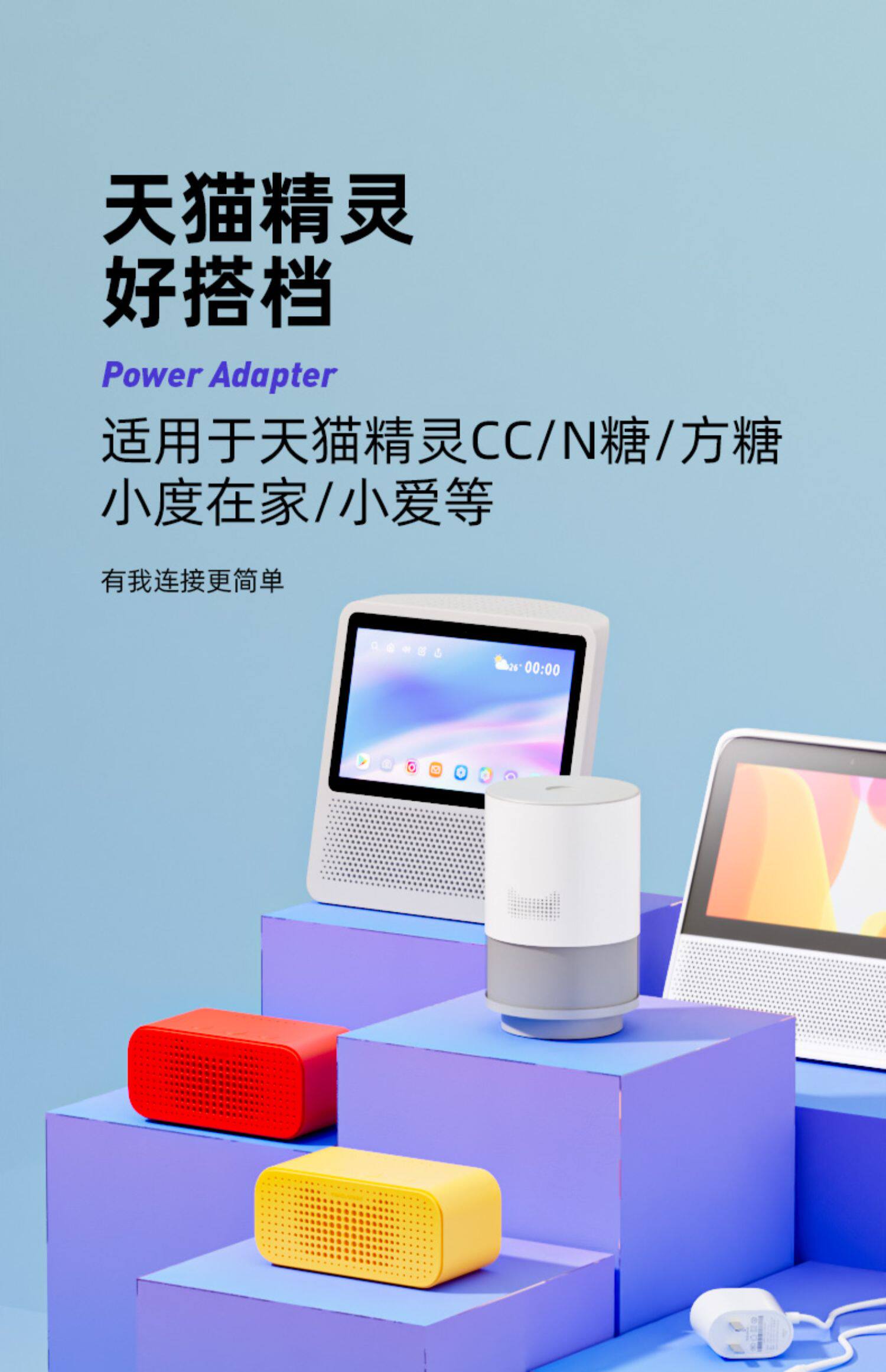 Suitable for Tmall Elf power cord adapter charger sugar cube 2RX15CC7H10IN smart speaker accessories accessories charging cable CC8 CC10 CCL IN sugar cube cookie M1 round hole