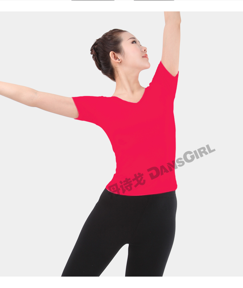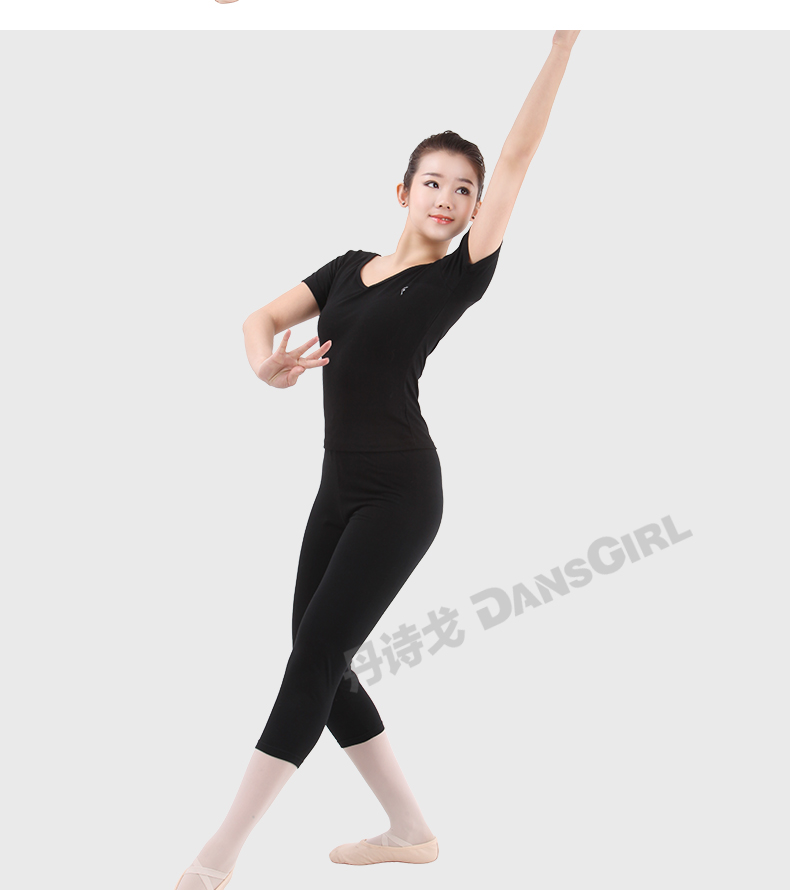 Danshige performance dance practice clothes slim yoga clothes black summer t-shirt front v-neck round neck short-sleeved top