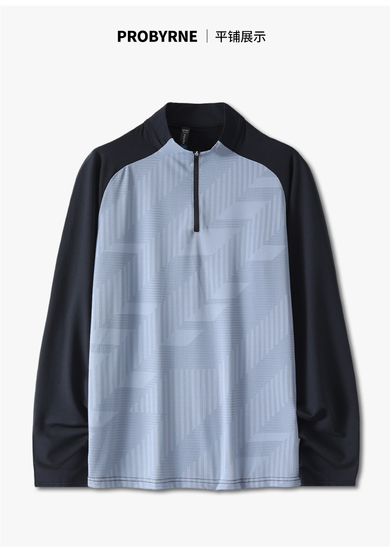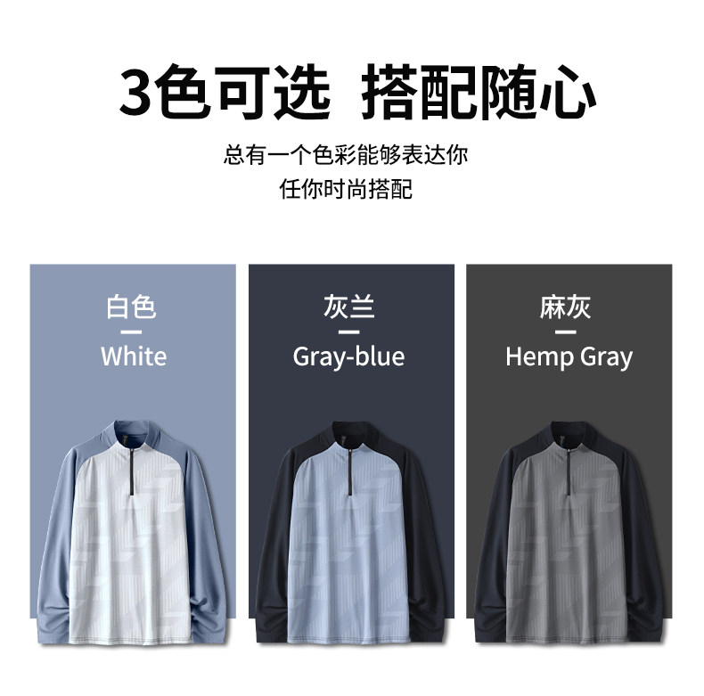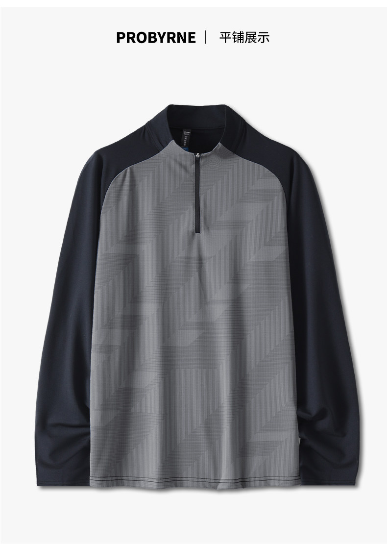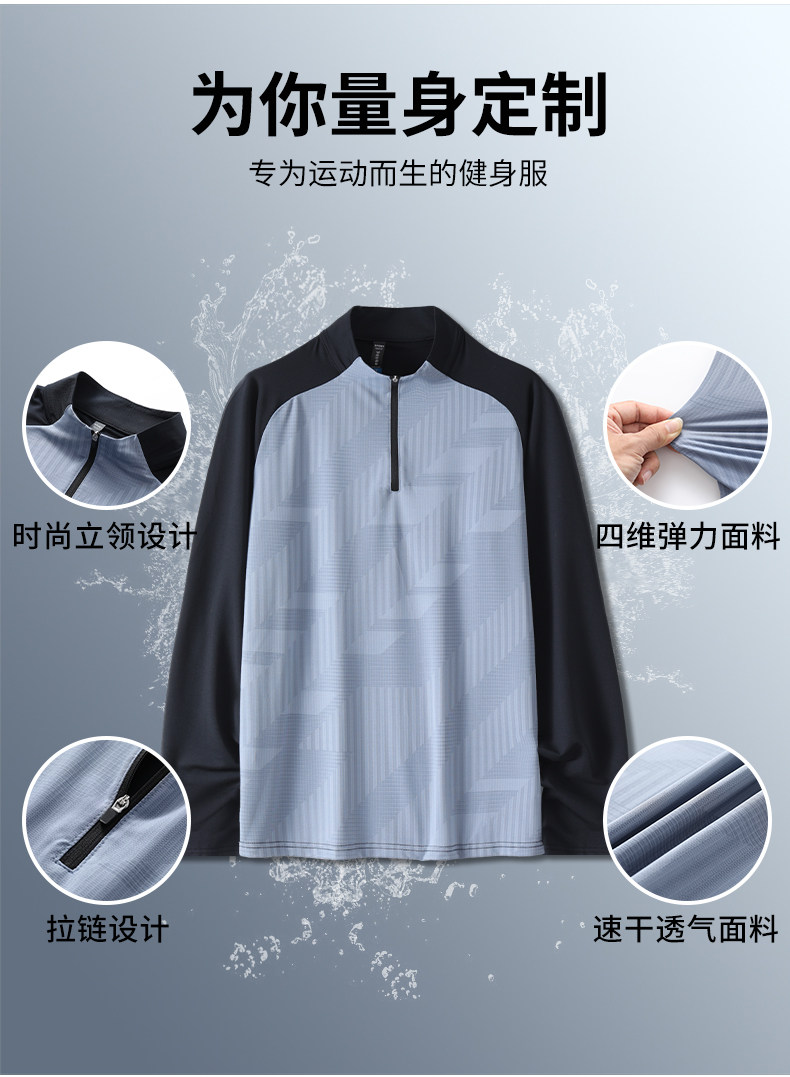 Running T-Shirt for Men, Autumn Sports Training Cycling Half-Zip Quick-Drying Clothing, Track and Field Fitness Clothing, Loose Long-Sleeved Top