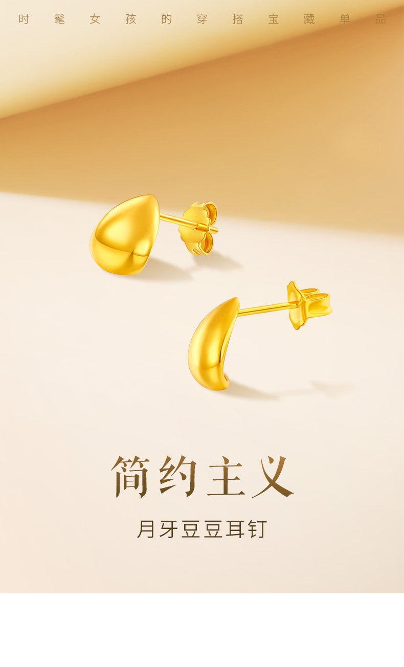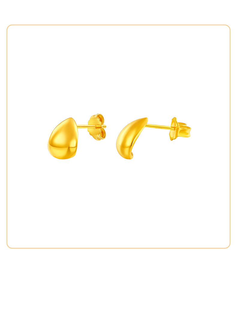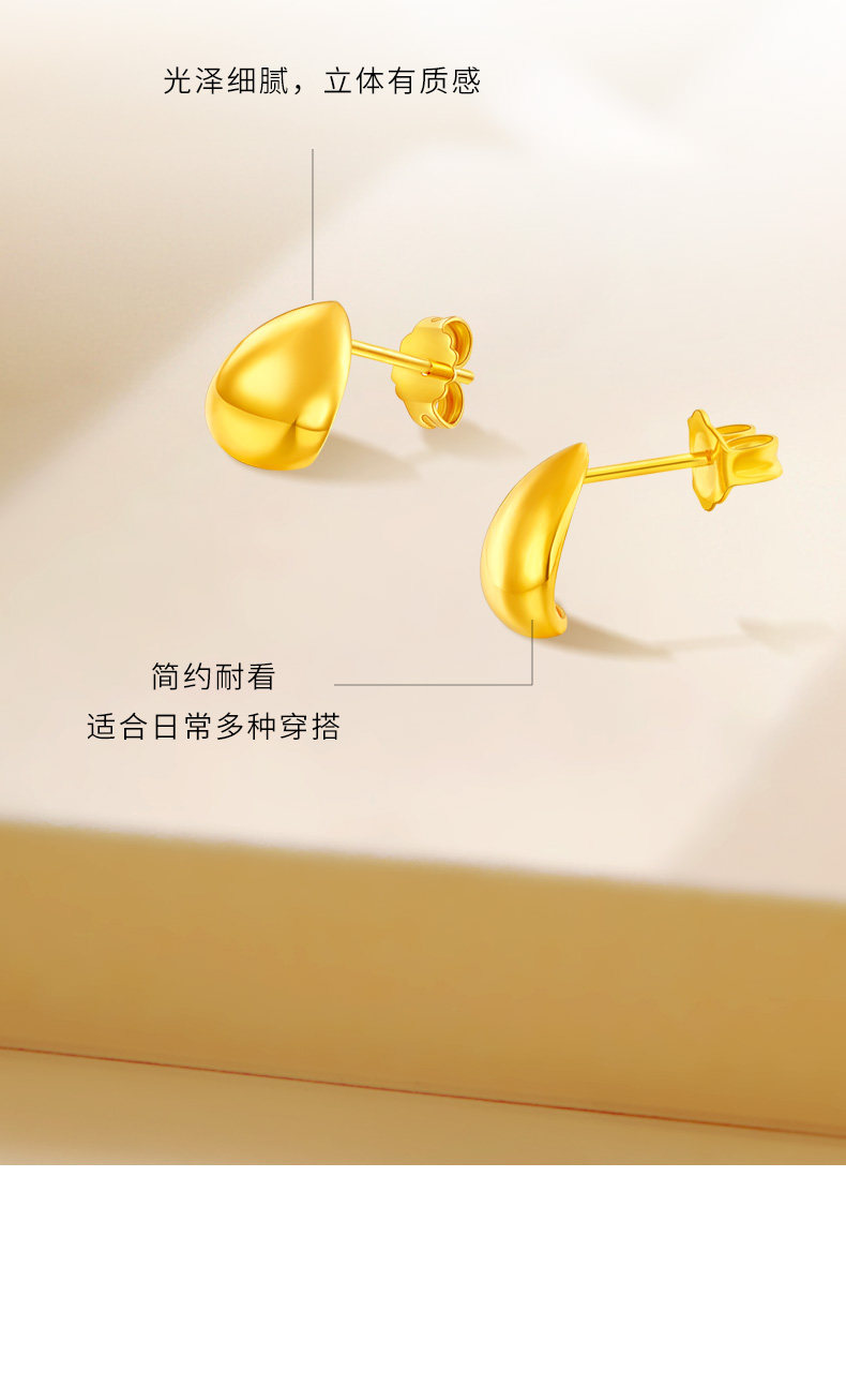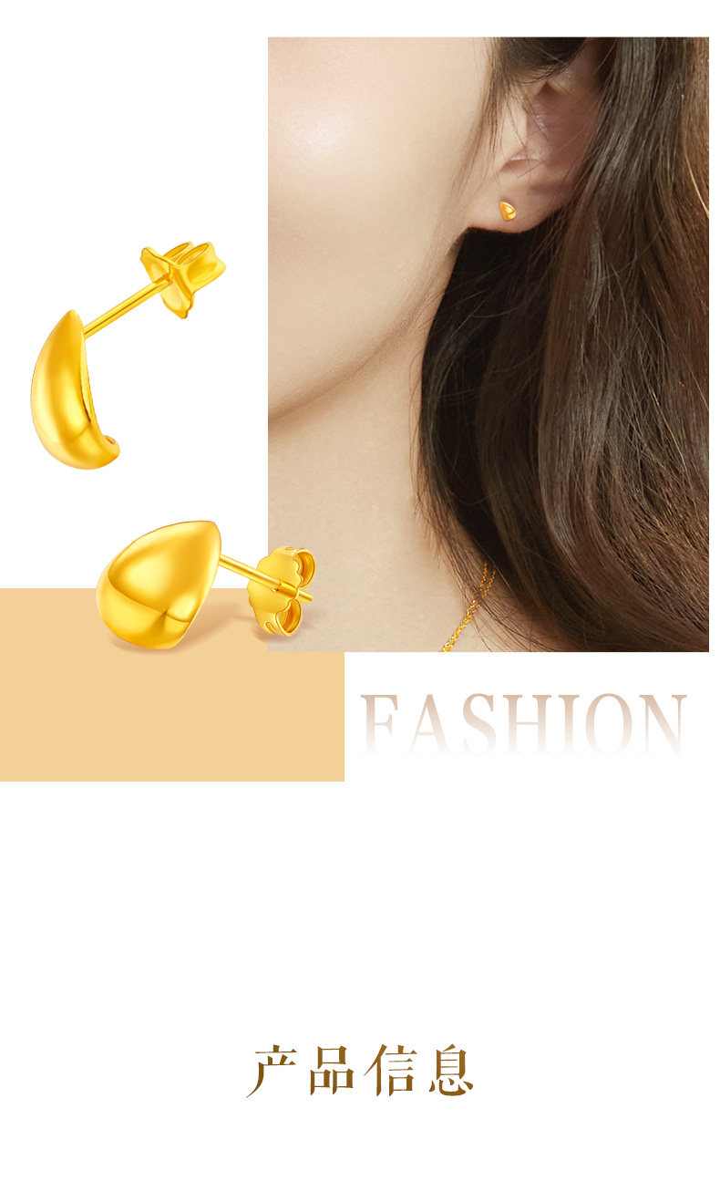 Cai Bai Jewelry Pure Gold Earrings New Style Gold Crescent Bean Earrings Fashionable Water Drop Clip Earrings Gift for Girlfriend
