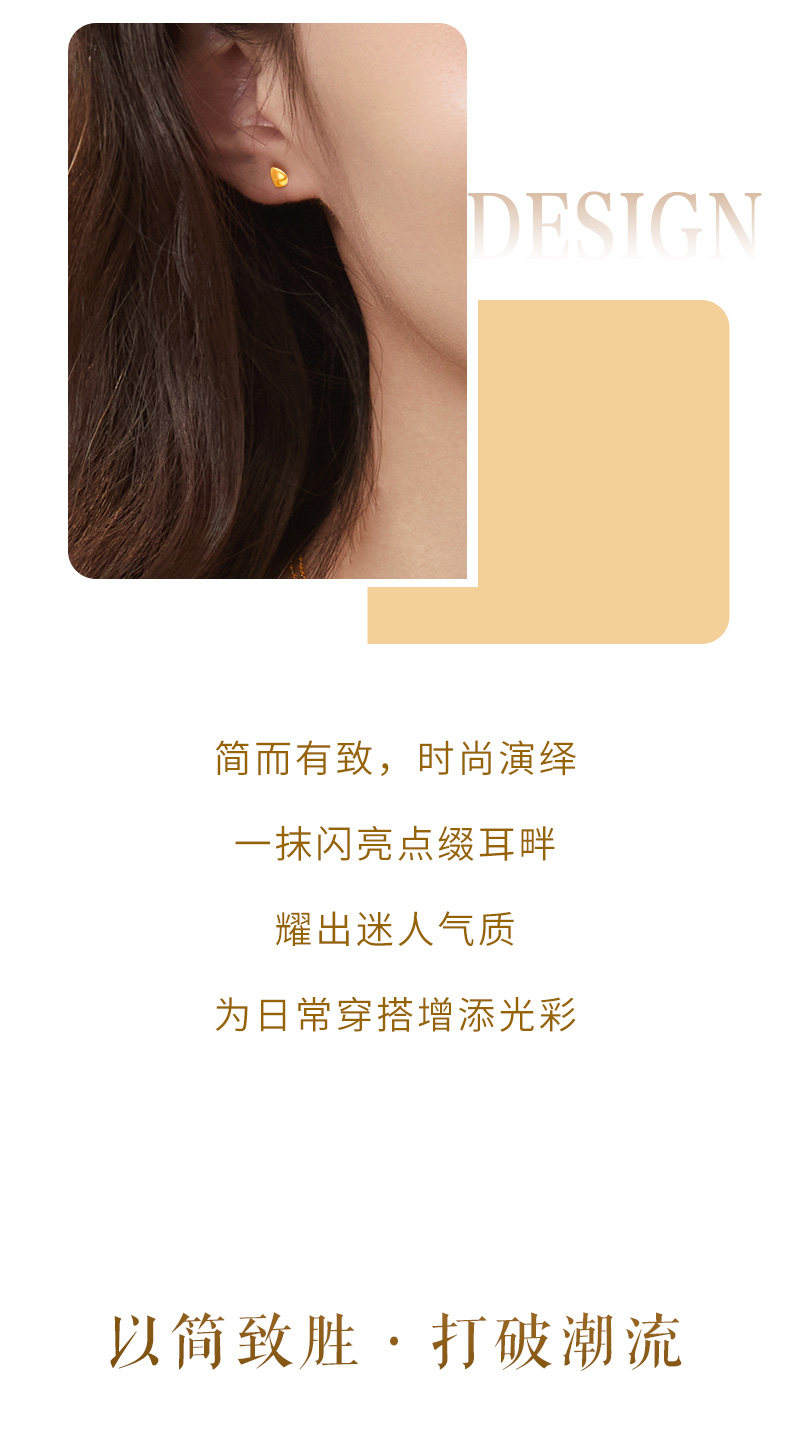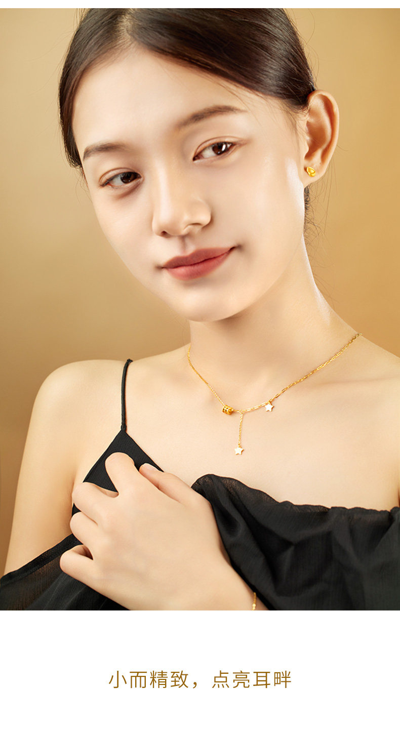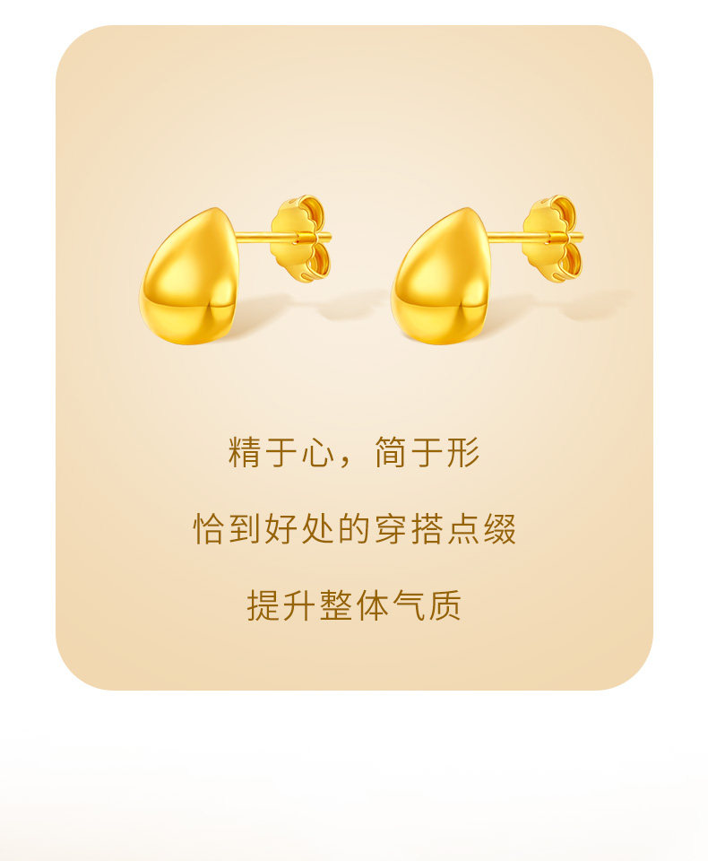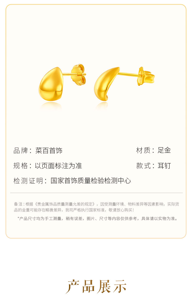 Cai Bai Jewelry Pure Gold Earrings New Style Gold Crescent Bean Earrings Fashionable Water Drop Clip Earrings Gift for Girlfriend