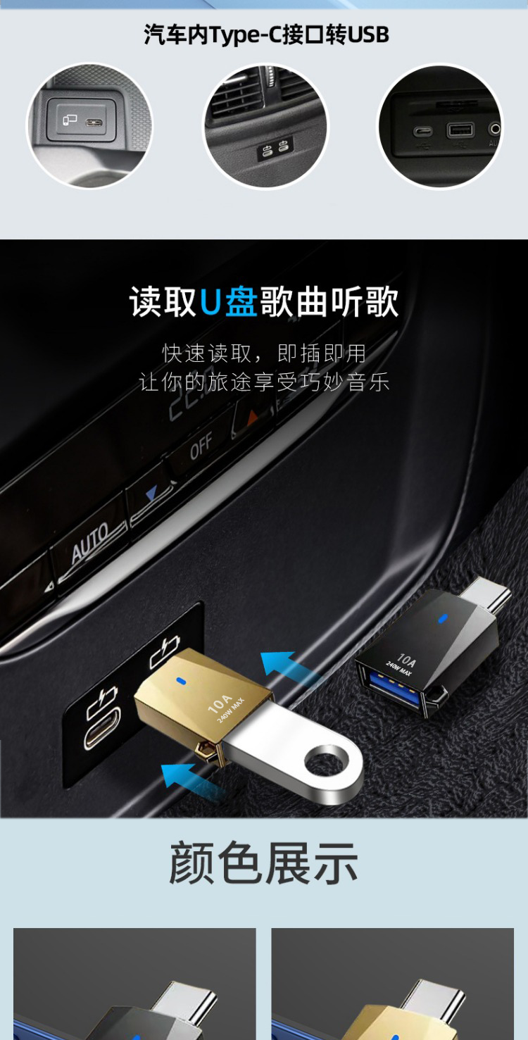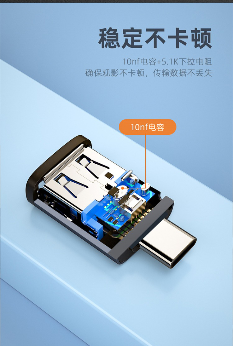 Type-C Adapter Otg Adapter USB External Flash Drive Converter Fast Charging Suitable for Huawei Redmi Otg Mobile Phone Data Cable 10A High Current Data Reading Transmission Power Bank Type-C Converter