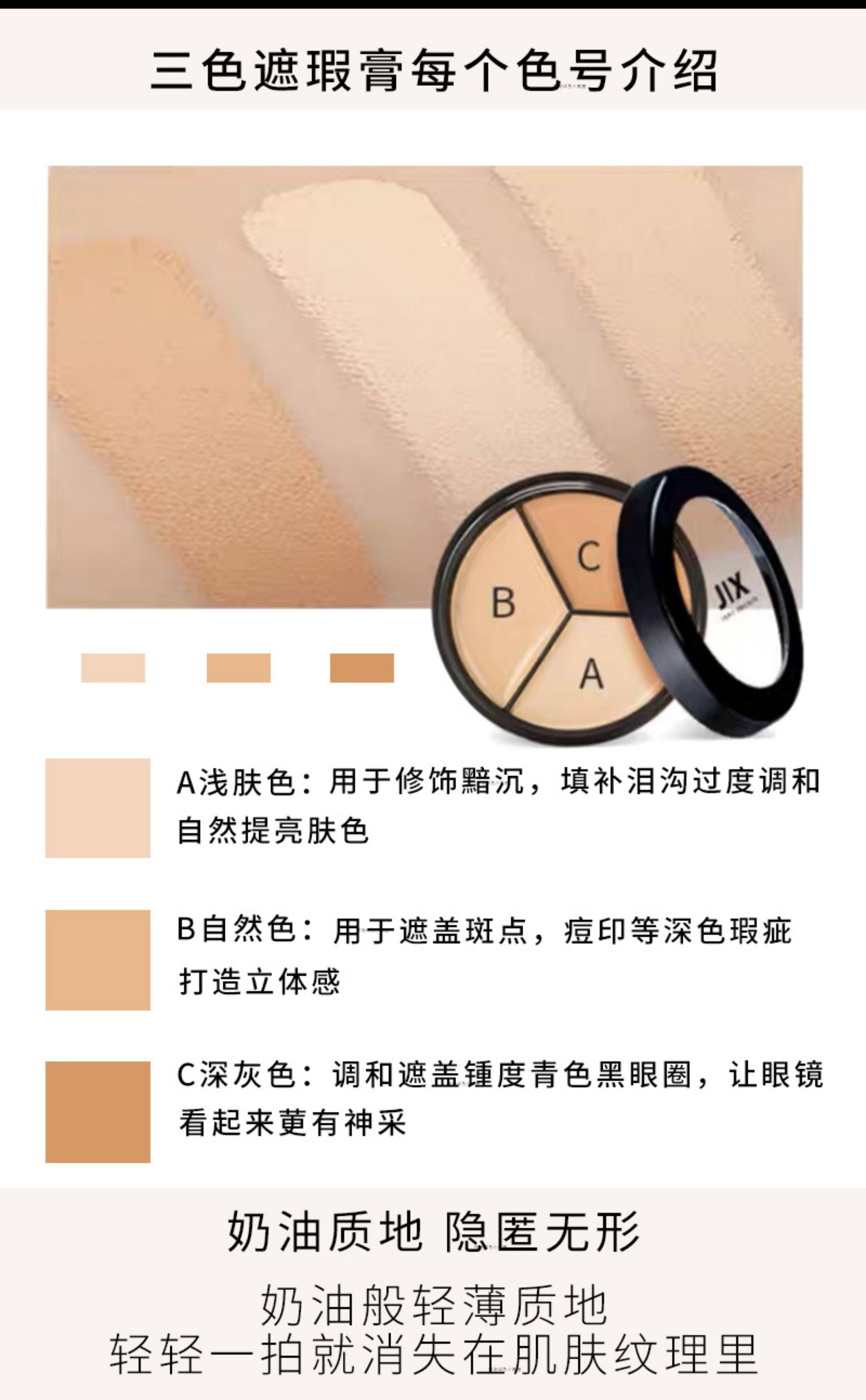 Color Classification Jx Three Color Concealer 0.35g*3,Jx Three Color Concealer 0.5g*3,Jx Three Color Concealer 0.5g*3,Jx Three-Color Concealer 1g*3,Jx Three-Color Concealer 1g*3,Jx Three-Color Concealer Formal Wear,Jx Three-Color Concealer to Brighten Skin Tone[ 0.35g*3],Jx Three-Color Concealer to Brighten Skin Tone[0.5g*3],Jx Three-Color Concealer to Brighten Skin Tone[1g*3]