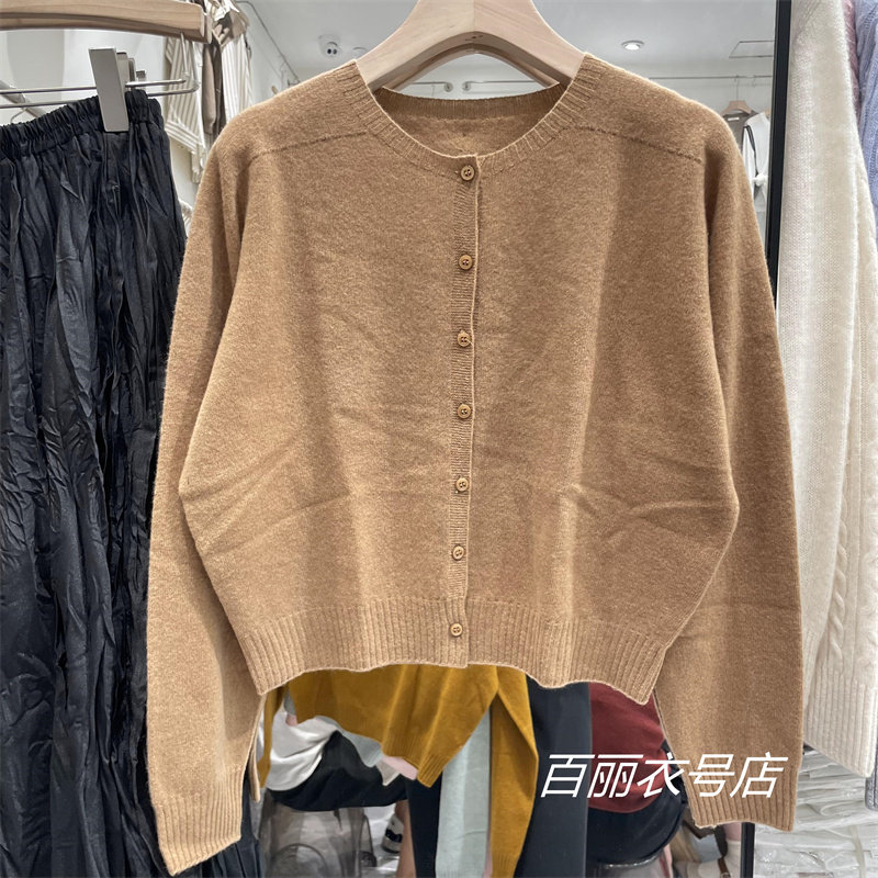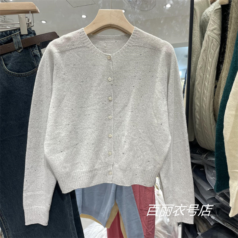 High-Quality All-Wool 6629 Korean-Style Simple Round-Neck Single-Breasted Long-Sleeve Knitted Cardigan Versatile Age-Reducing Short Top