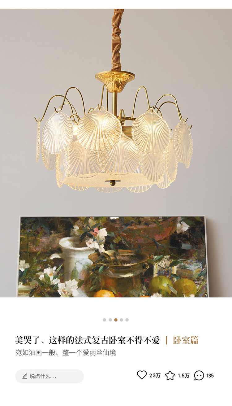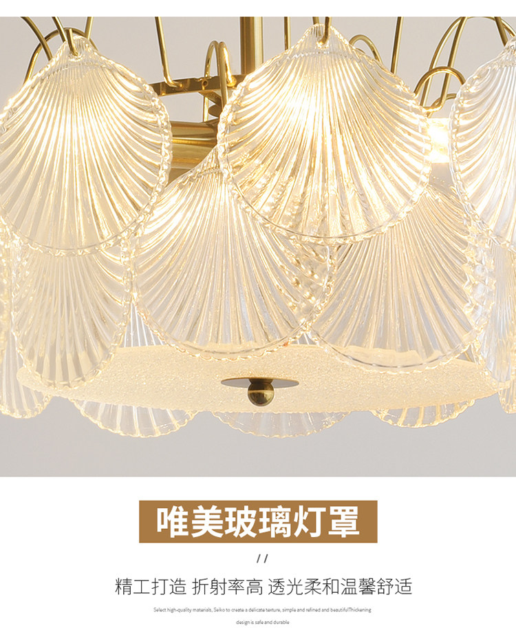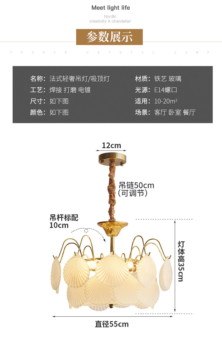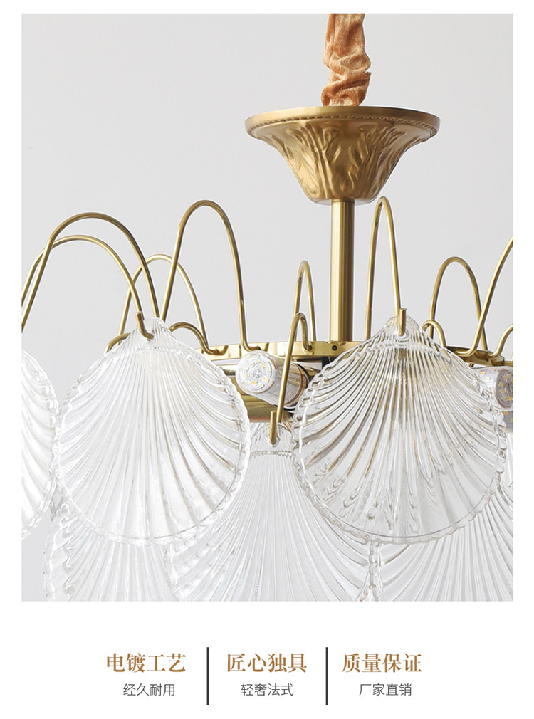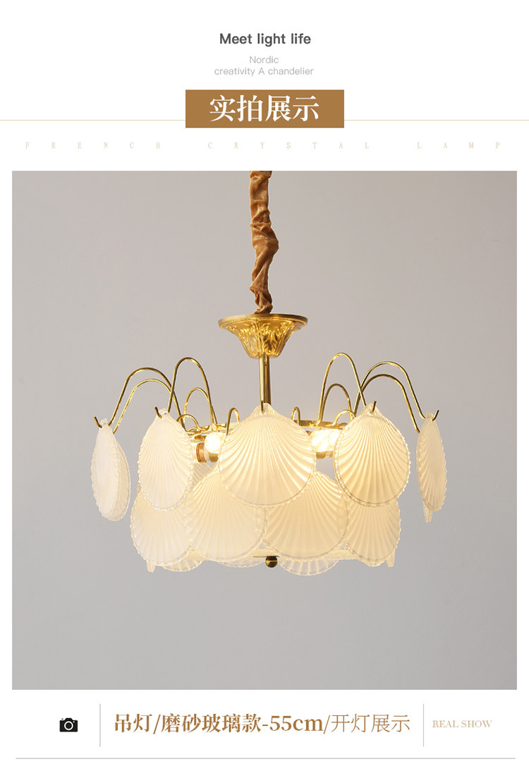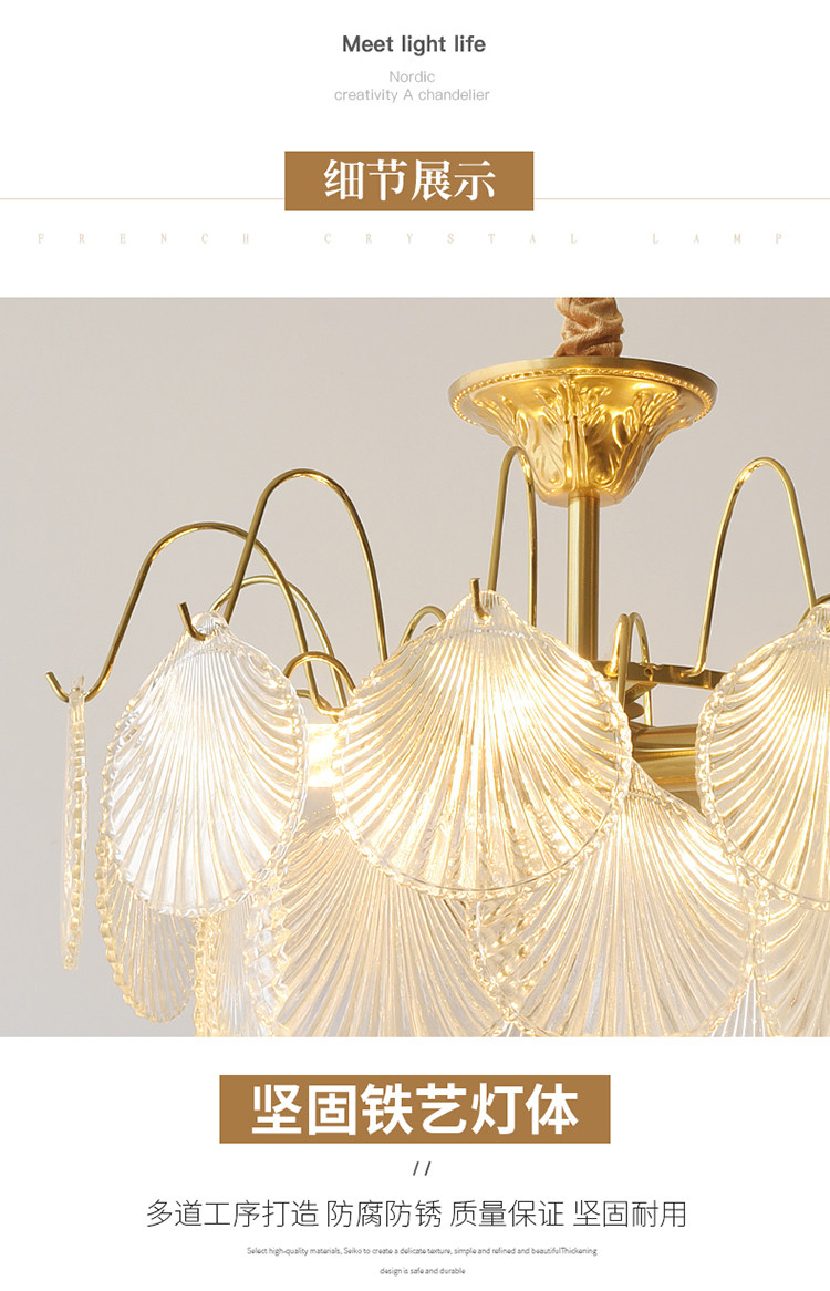 French Cream-Style Master Bedroom Crystal Chandelier, Light Luxury Post-Modern Minimalist Creative Shell Living Room Dining Room Chandelier