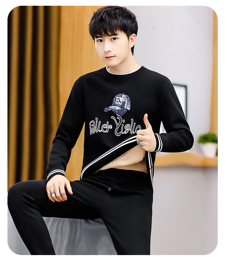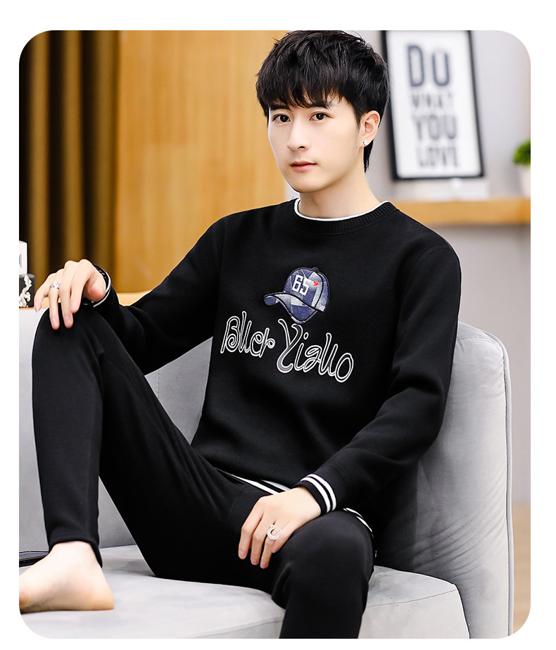 Woodpecker Winter Sheep Velvet Thermal Underwear Set Men's Velvet Thickened Autumn Clothes and Autumn Pants Teenagers' Bottoming Shirt