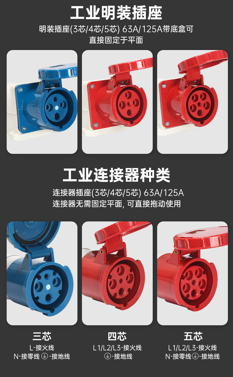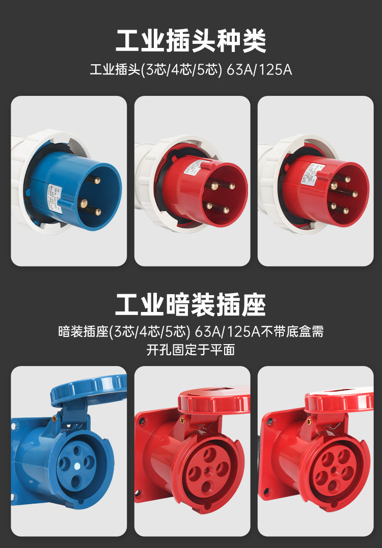 Color Classification Industrial Plug-3 Core-63A,Concealed Socket-3 Core-63A,Connector-3 Core-63A,Surface Mounted Socket-3 Core-63A,Industrial Plug-4 Core-63A,Concealed Socket-4 Core-63A,Connector-4 Core-63A,Surface Mounted Socket-4 Core-63A,Industrial Plug-5 Core-63A,Concealed Socket-5 Core-63A,Connector-5 Core-63A,Surface Mounted Socket-5 Core-63A,Industrial Plug-3 Core-125A,Concealed Socket-3 Core-125A,Connector-3 Core-125A,Surface Mounted Socket-3 Core-125A,Industrial Plug-4 Core-125A,Concealed Socket-4 Core-125A,Connector-4 Core-125A,Surface Mounted Socket-4 Core-125A,Industrial Plug-5 Core-125A,Concealed Socket-5 Core-125A,Connector-5 Core-125A,Surface Mounted Socket-5 Core-125A