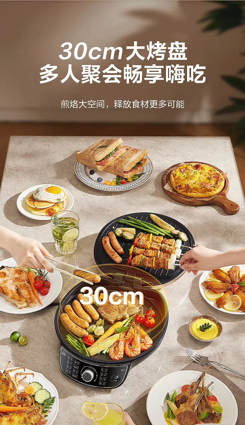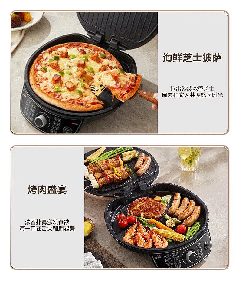 Baking pan function Bake cake,Grilled and other,baked donuts,make lollipops,toasted sandwich,Make egg waffles,Toasted Waffles,Baked fruit tart,pancakes,Pancakes/pancakes,Grilled Taiyaki,Make egg rolls