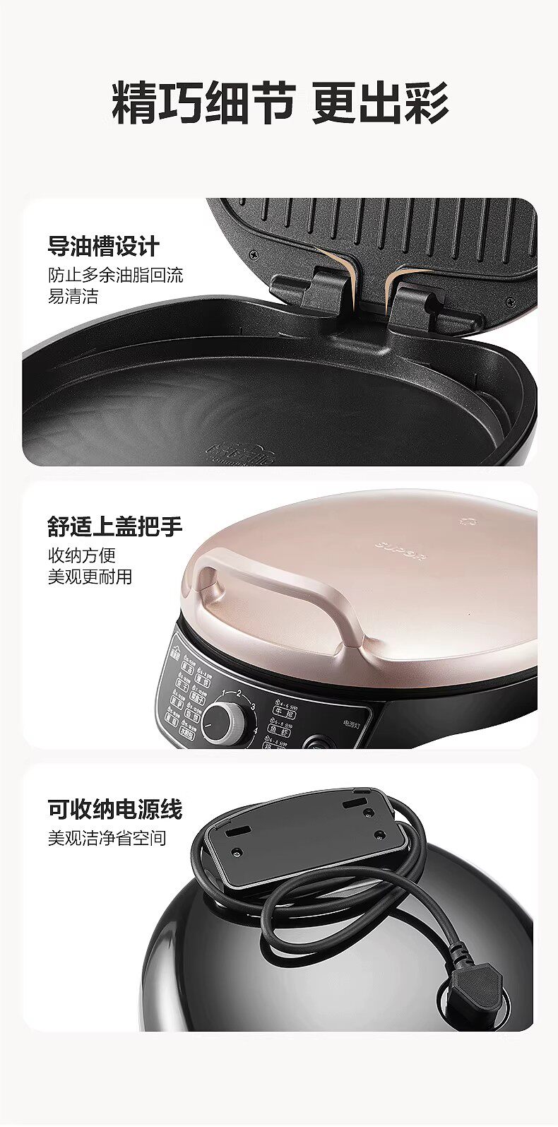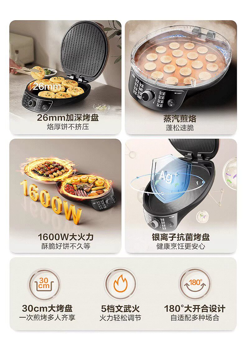 Supor Electric Pancake Pan Home Double-sided Heating Pancake Machine Pancake Machine Cooking Machine New Electric Frying Pan Official Authentic
