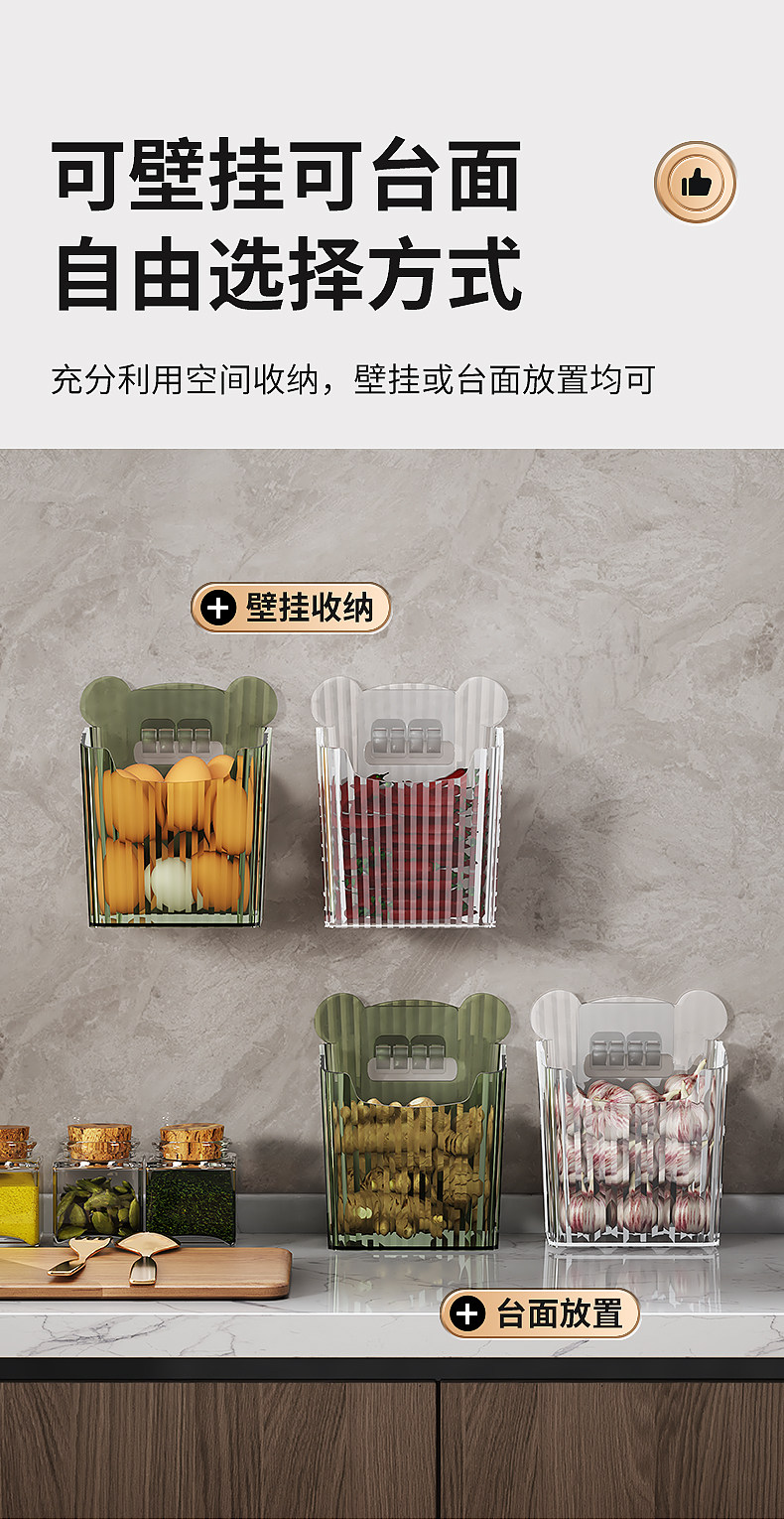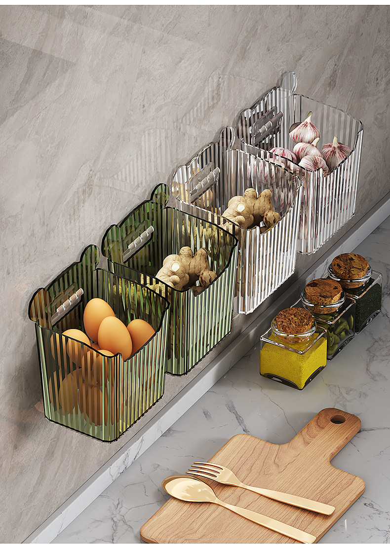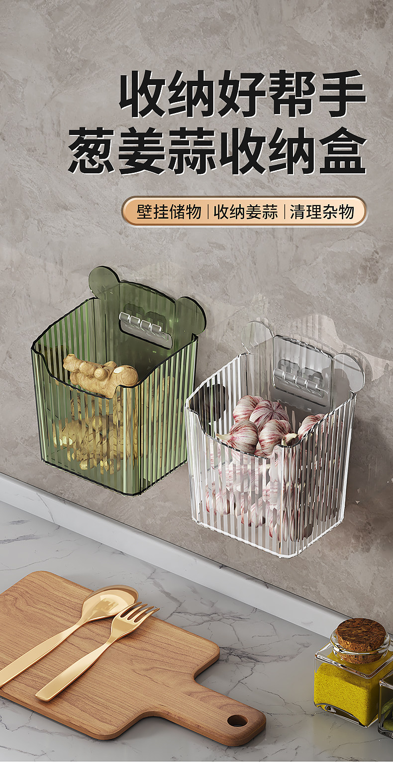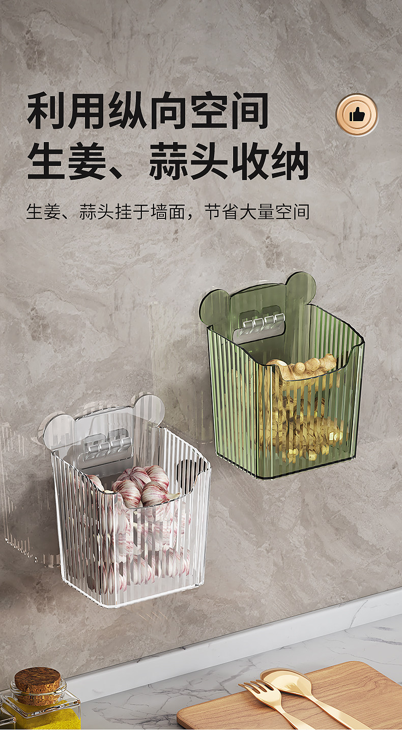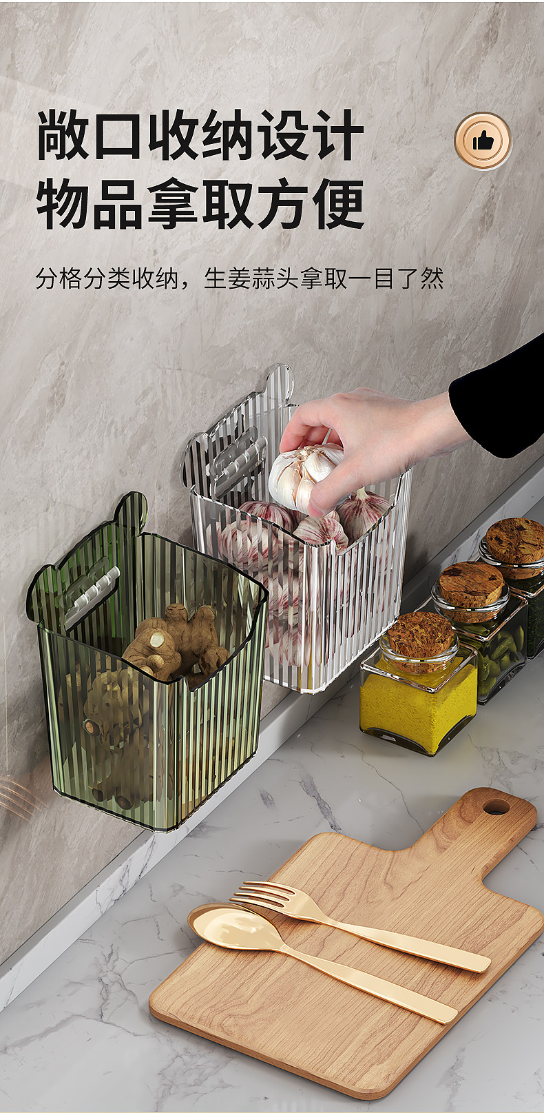 Kitchen Wall-Mounted Storage Rack for Onions, Ginger, and Garlic, No-Drill Vegetable Basket, Ginger and Garlic Storage Basket, Household Hanging Basket Storage Box