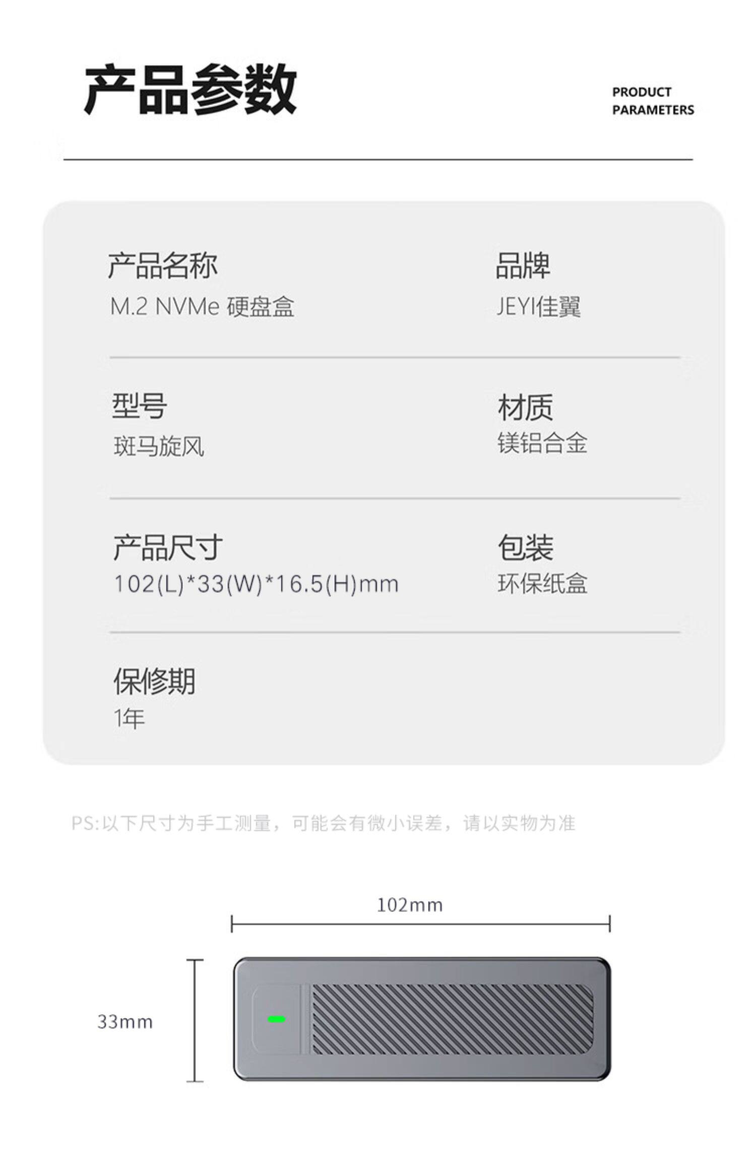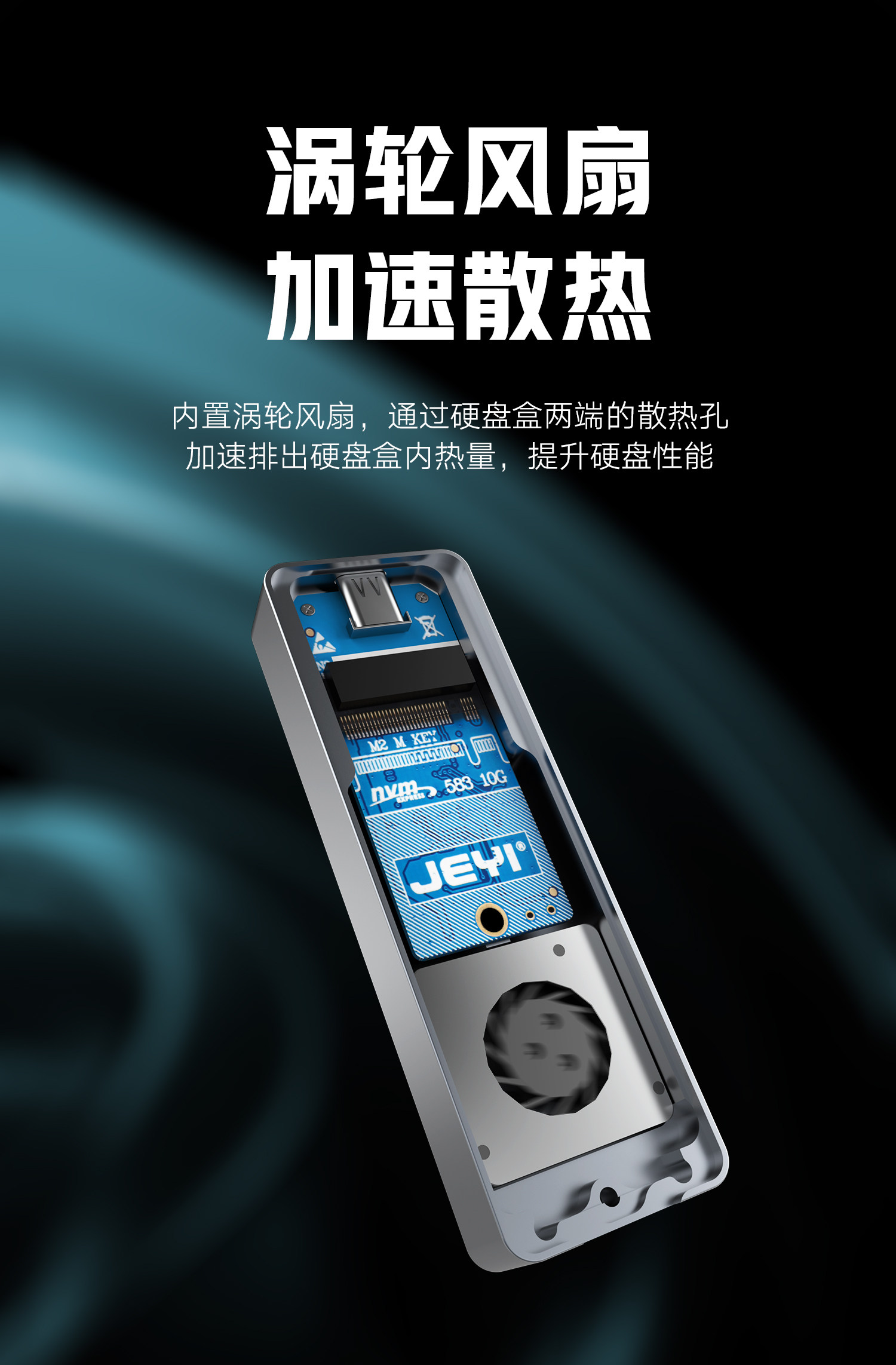 Jeyi Cyclone Zebra M2 Mobile Hard Drive Enclosure M.2 Solid State Nvme to Type-C with Fan External Reader