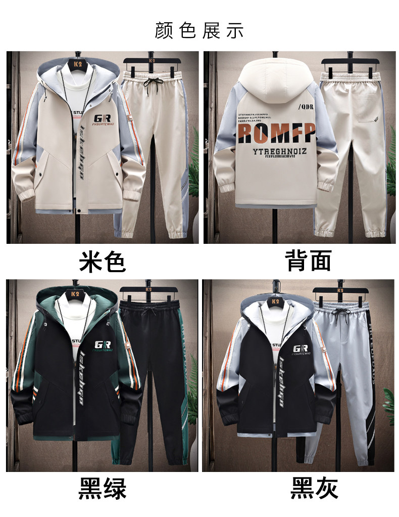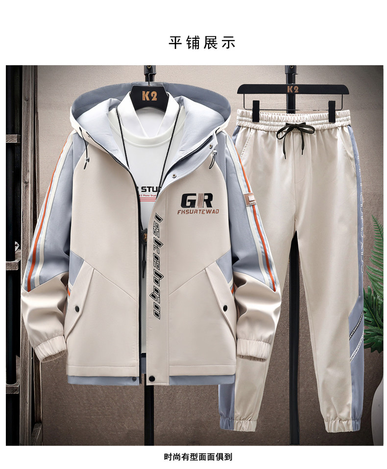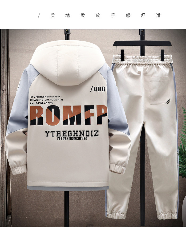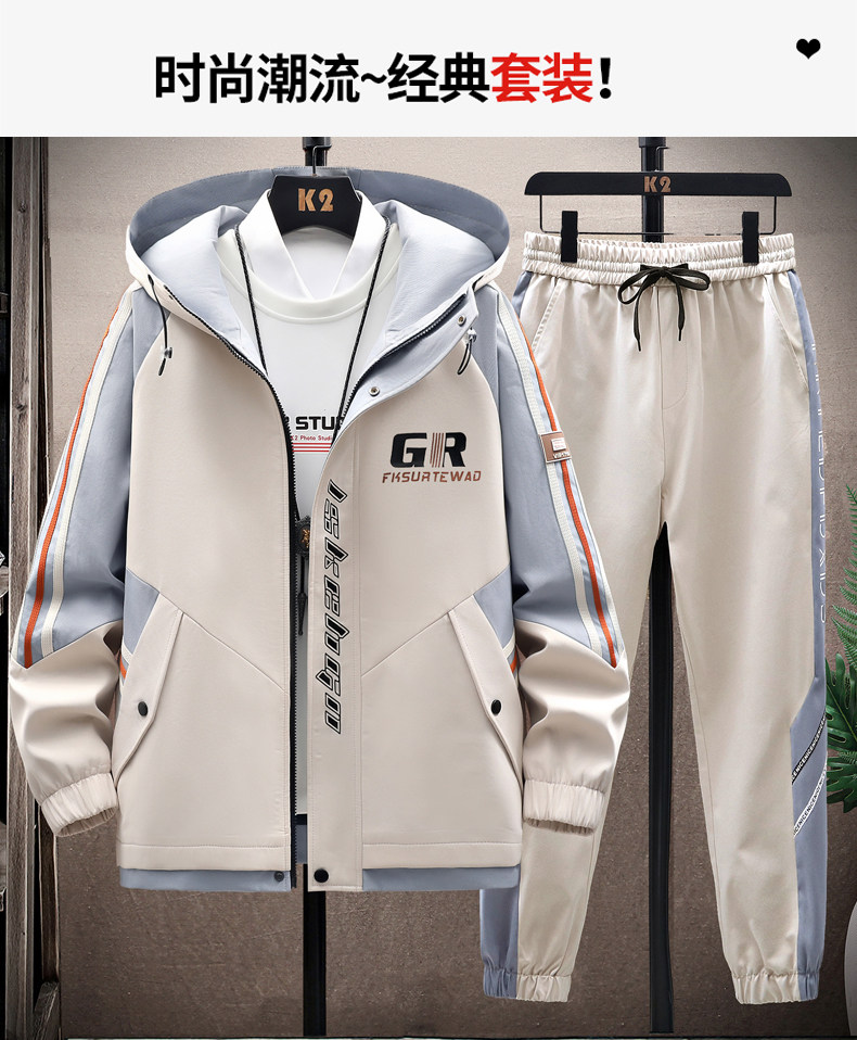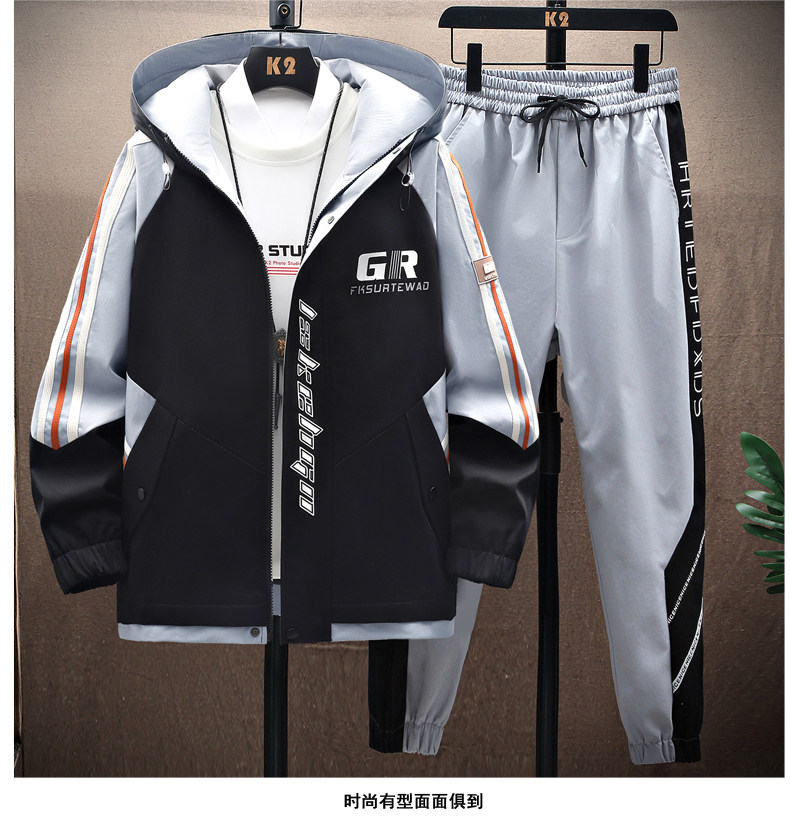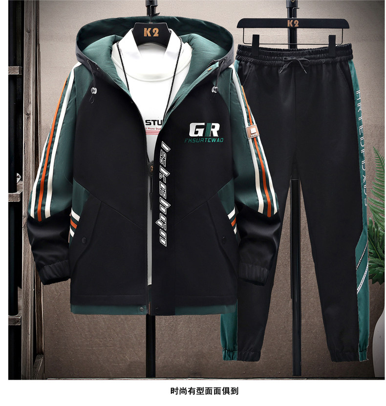 Woodpecker hooded jacket suit men's autumn and winter fashionable versatile loose jacket sports and leisure two-piece set