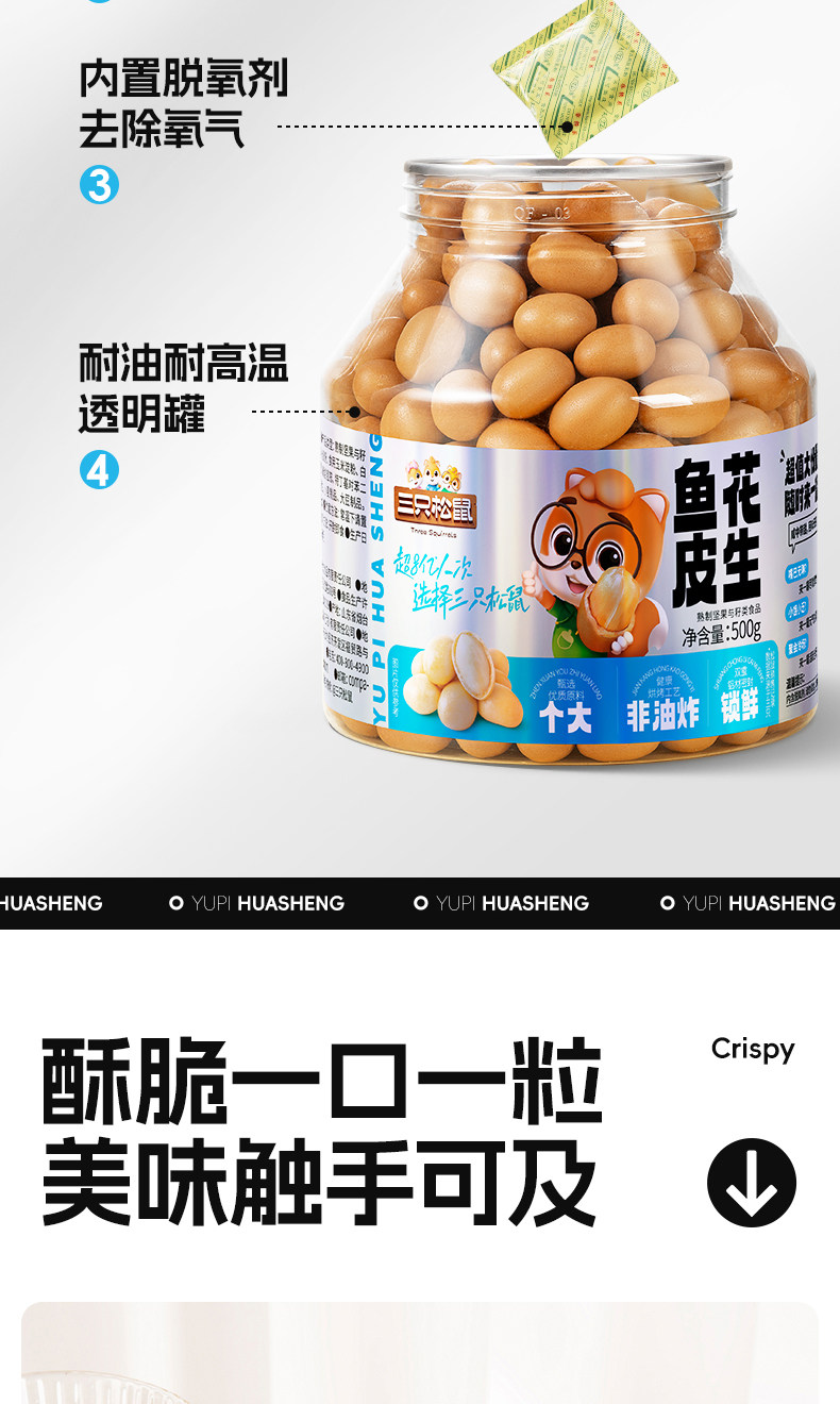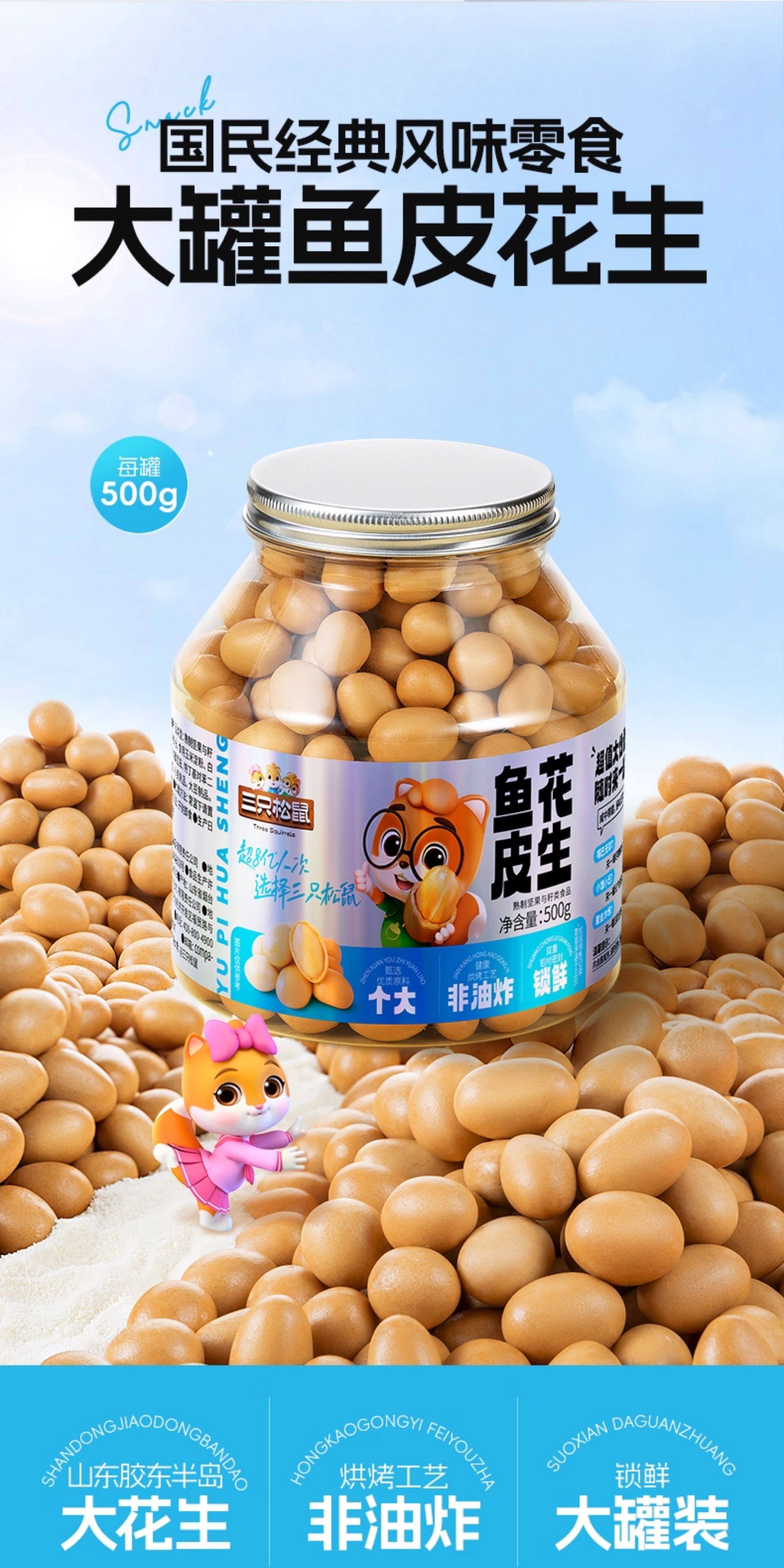 New Product [Three Squirrels_Fish Skin Peanuts 500g] Nut Snacks, Roasted Peanuts, Snacks to Accompany Drinks, Peanut Snacks