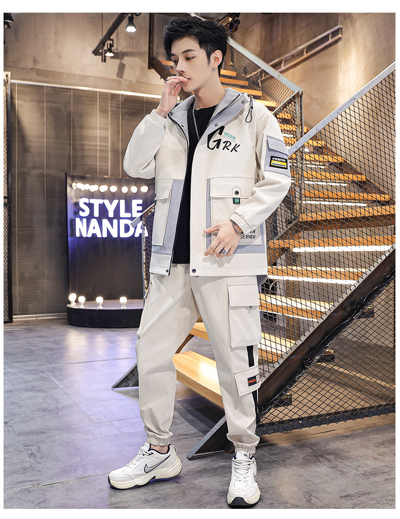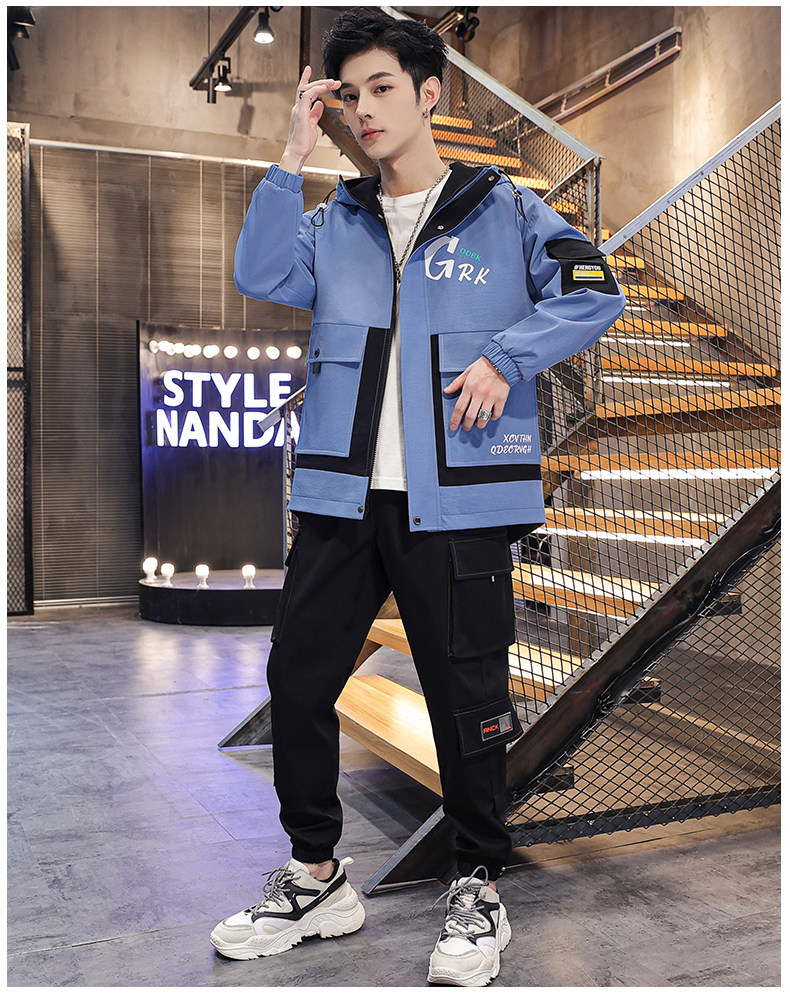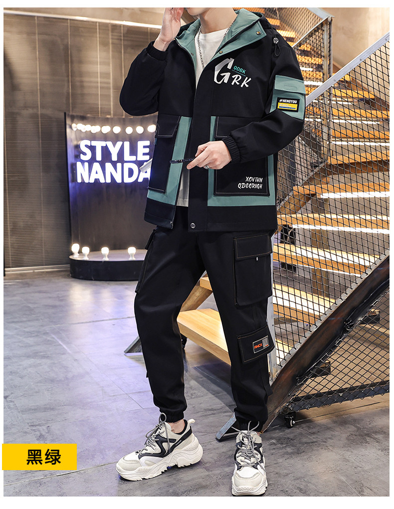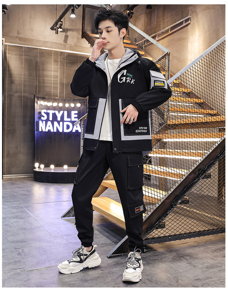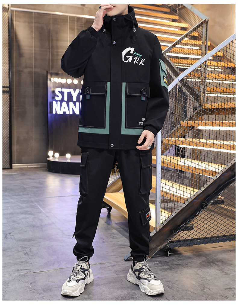 Woodpecker work jacket men's autumn and winter trendy set with handsome casual sports suit men's jacket