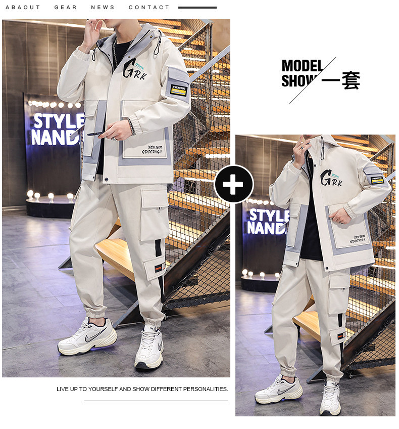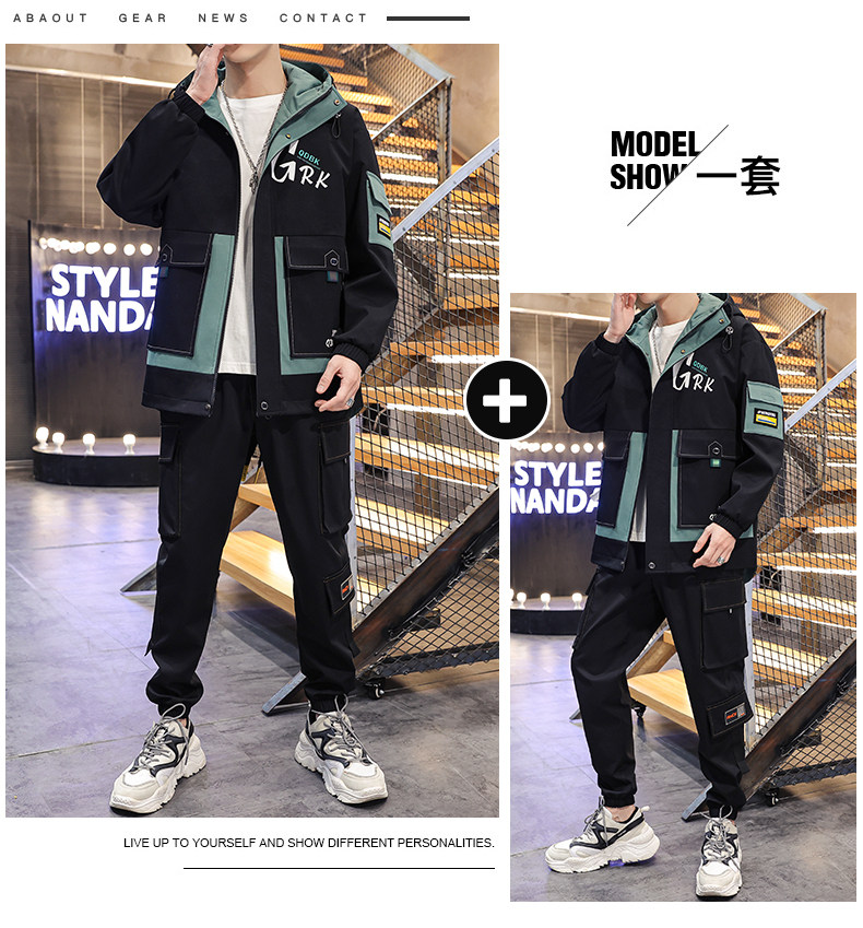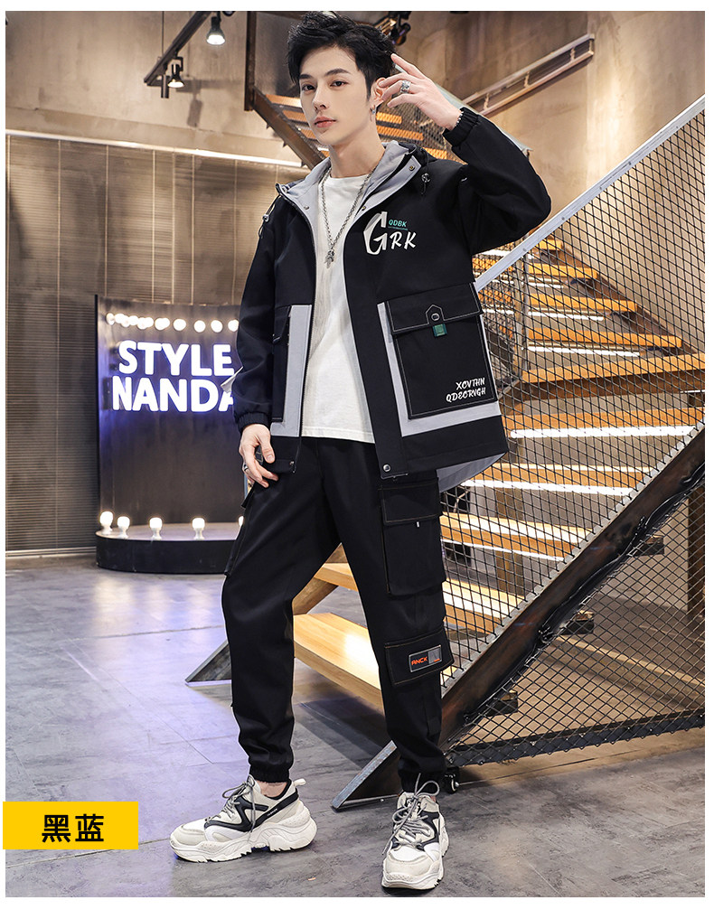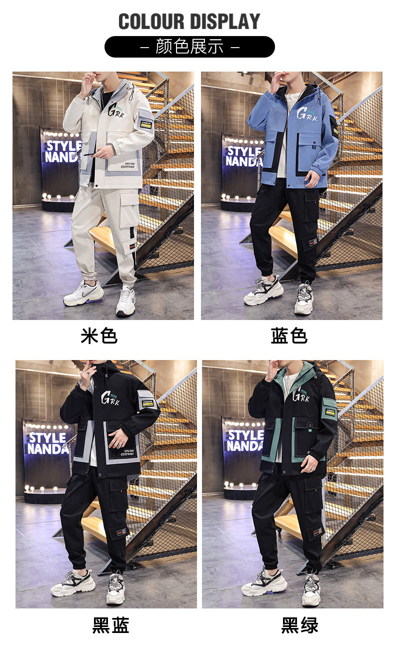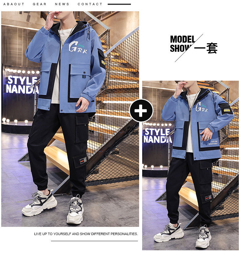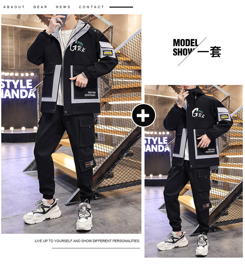 Woodpecker work jacket men's autumn and winter trendy set with handsome casual sports suit men's jacket
