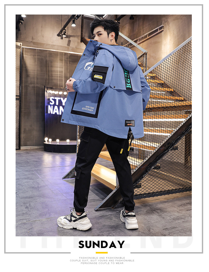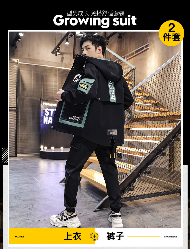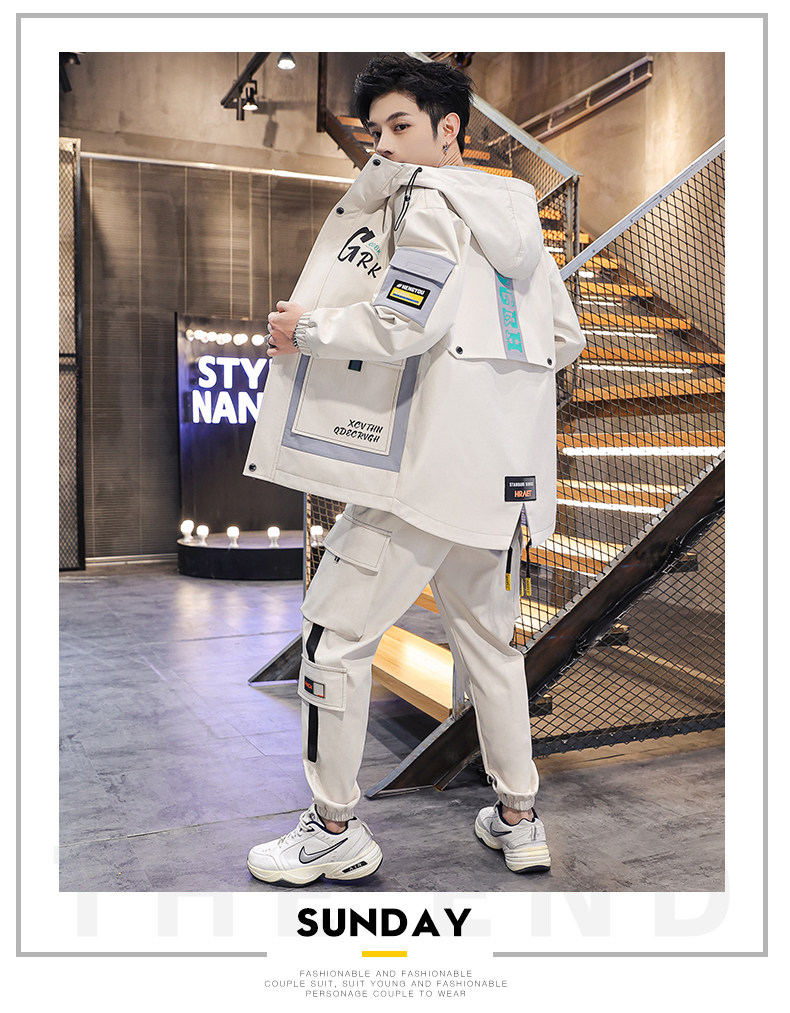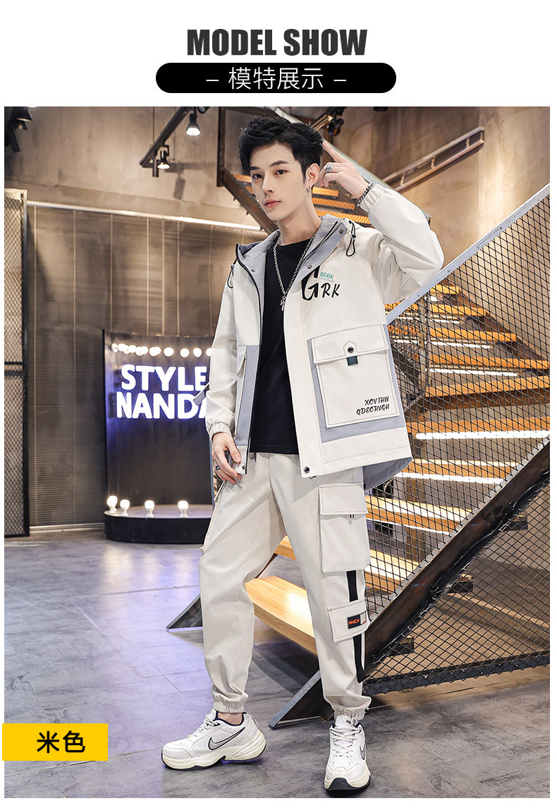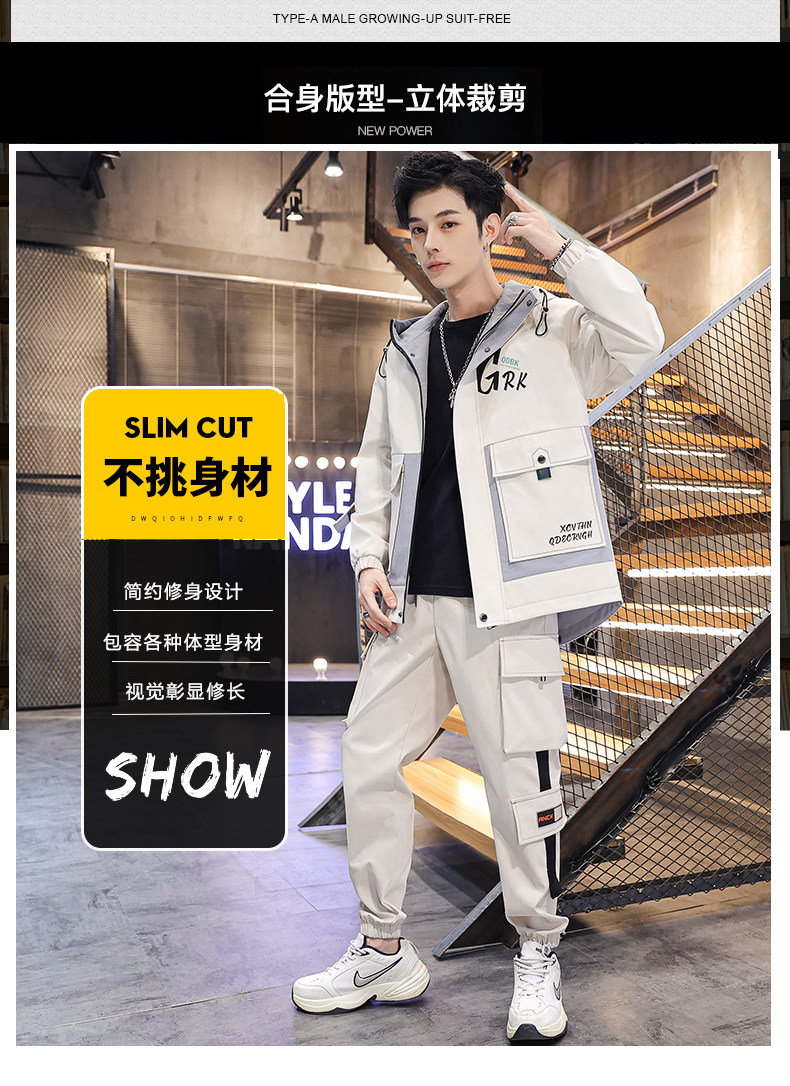 Woodpecker work jacket men's autumn and winter trendy set with handsome casual sports suit men's jacket