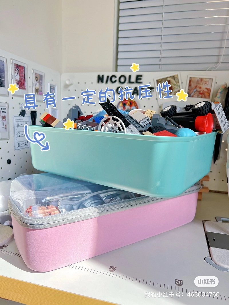 Color Classification Pink Bag with Transparent Lid,Mist Blue Transparent Cover