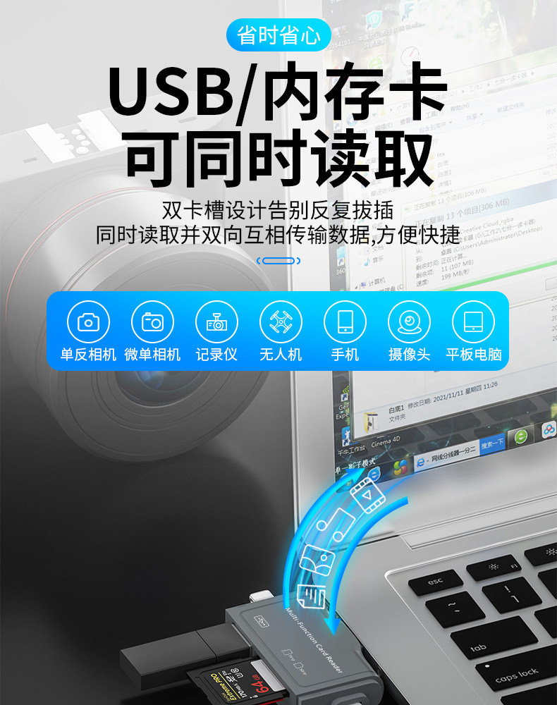 Card Reader Camera Sd Card Tf Card Seven-In-One Universal Usb3.0 High-Speed Reading U Disk Converter Driving Recorder Internal Storage Card Suitable for Apple Huawei Mobile Phones Computer Slr Camera