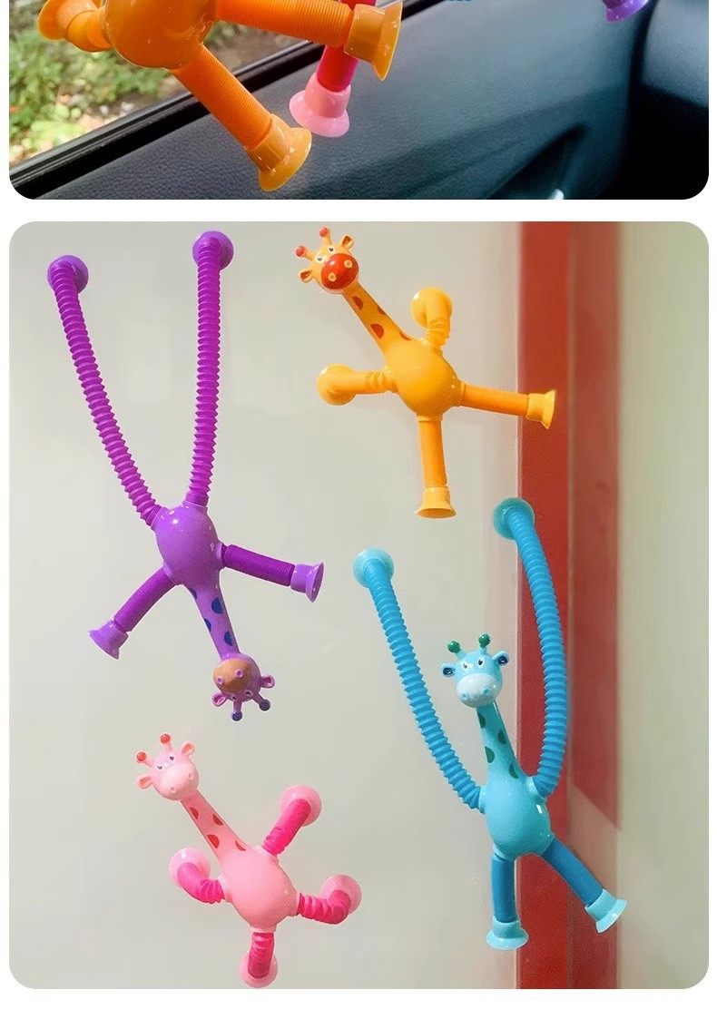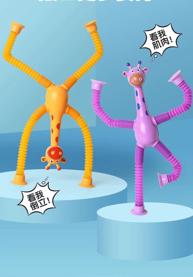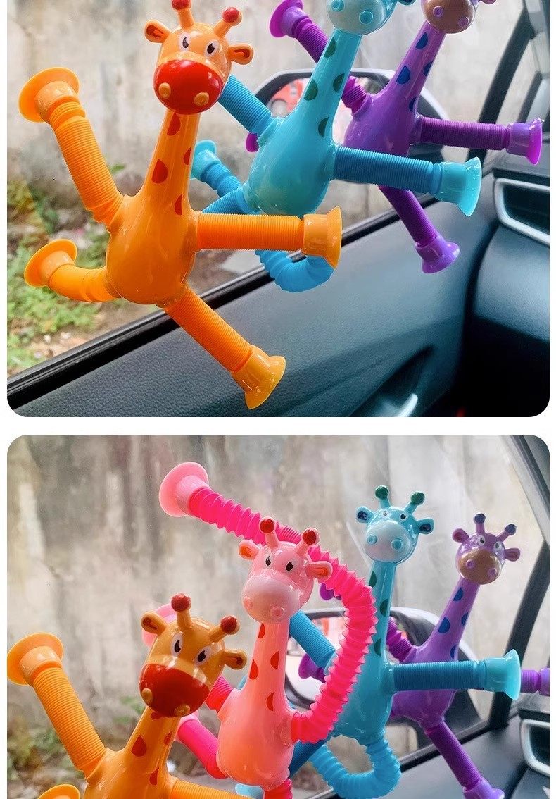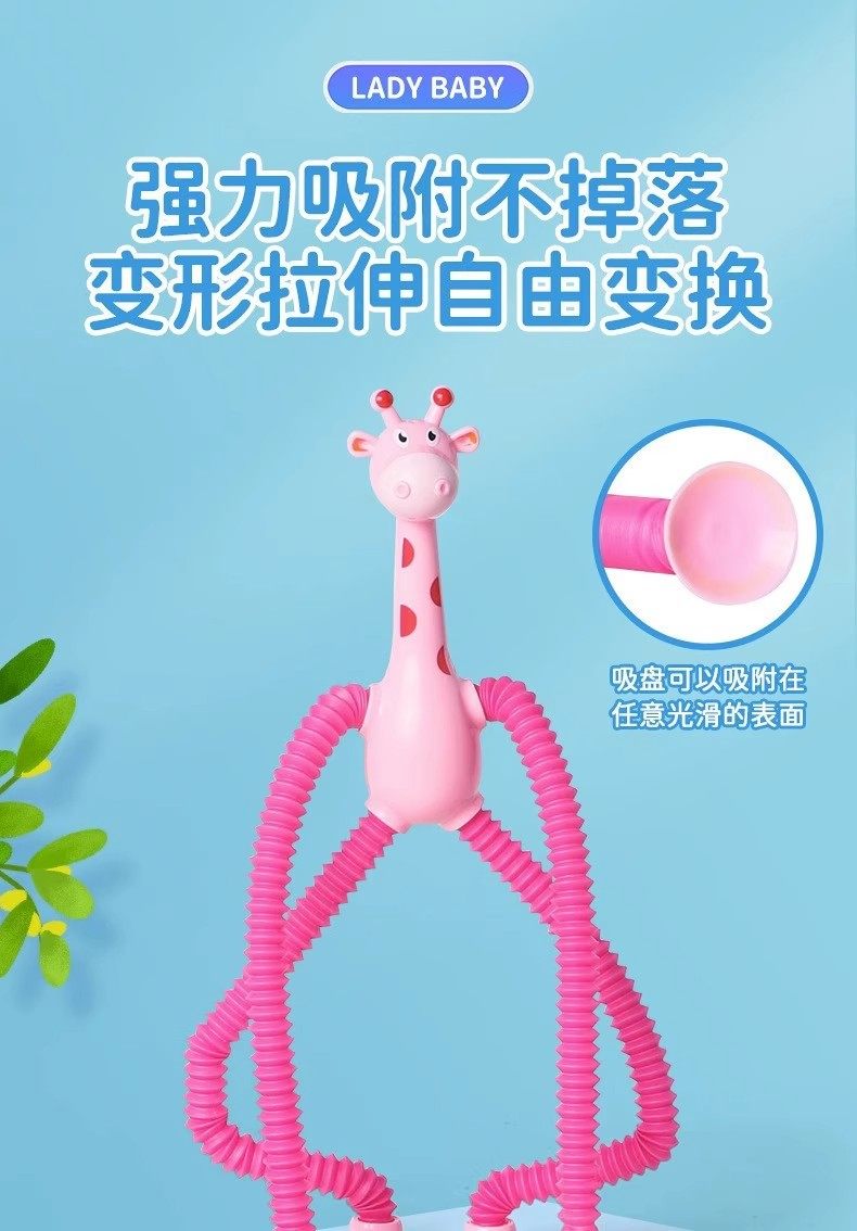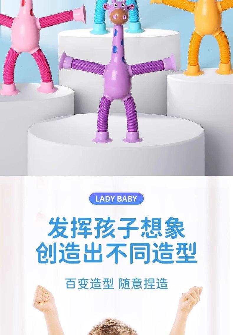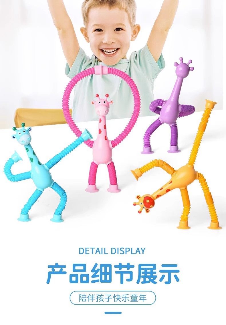 Popular popular educational decompression suction cup, ever-changing telescopic giraffe luminous parent-child interactive children's baby toy