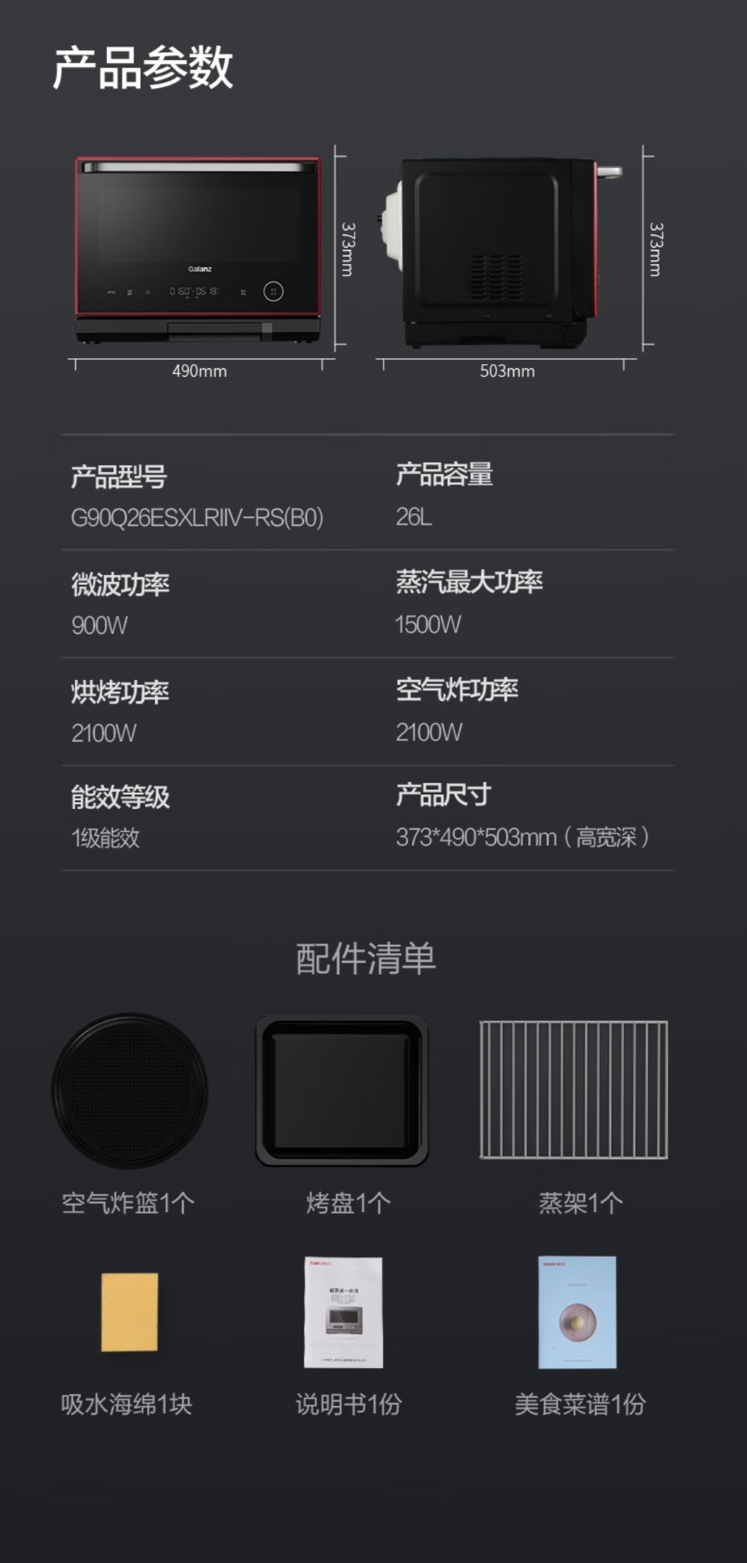 galanz G90Q26Esxlriiv-Rs(B0) Household Smart Variable Frequency Stainless Steel Micro-Steaming and Baking