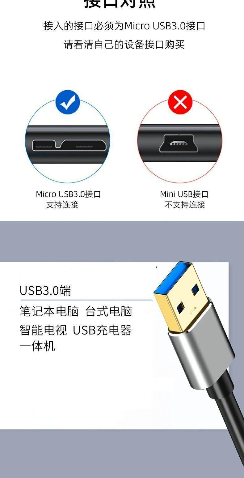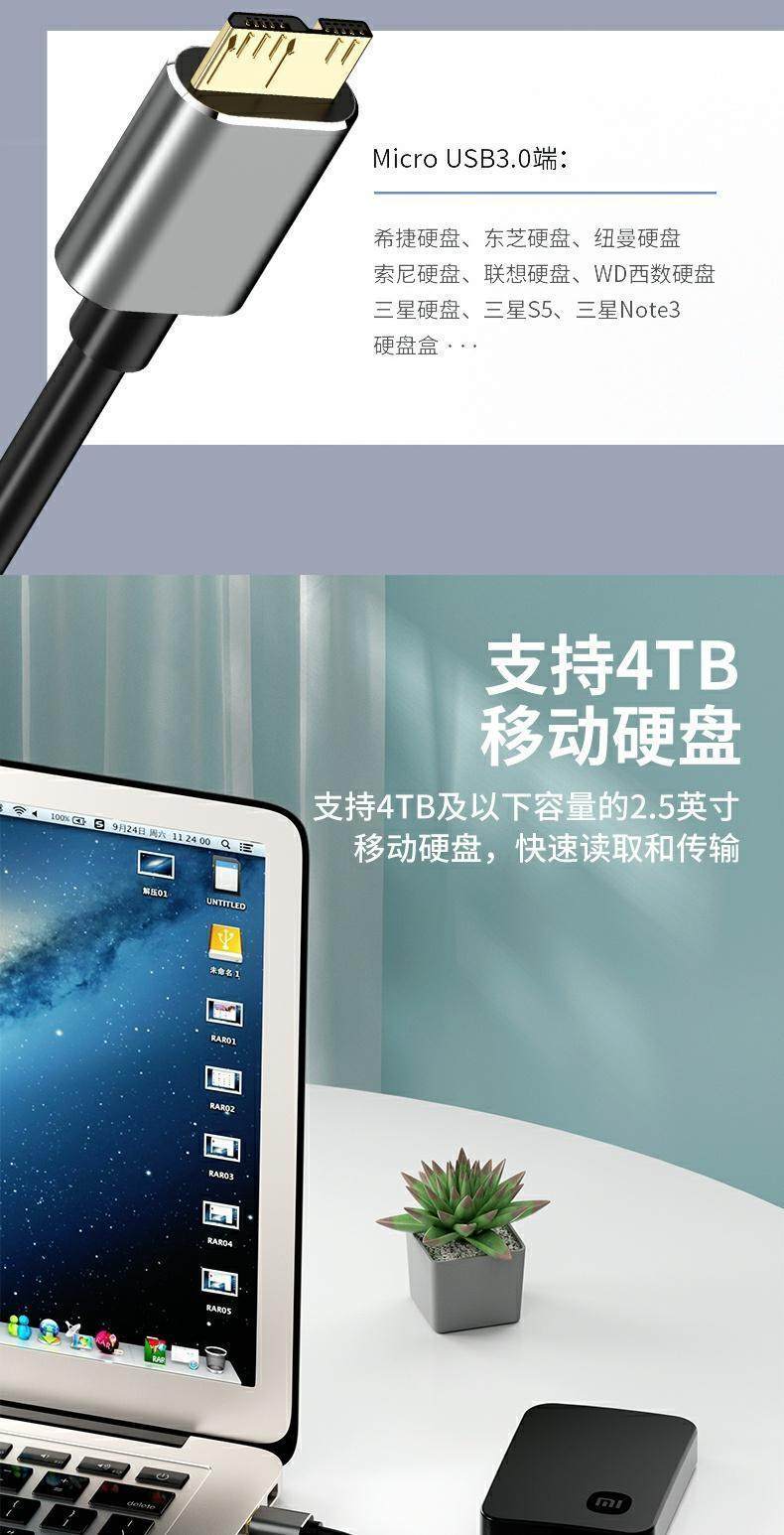 Typec to microusb3.0 high-speed mobile hard disk interface data cable extension is suitable for Toshiba Seagate wd hard disk box mobile phone Apple computer mac notebook book Xiaomi A1843