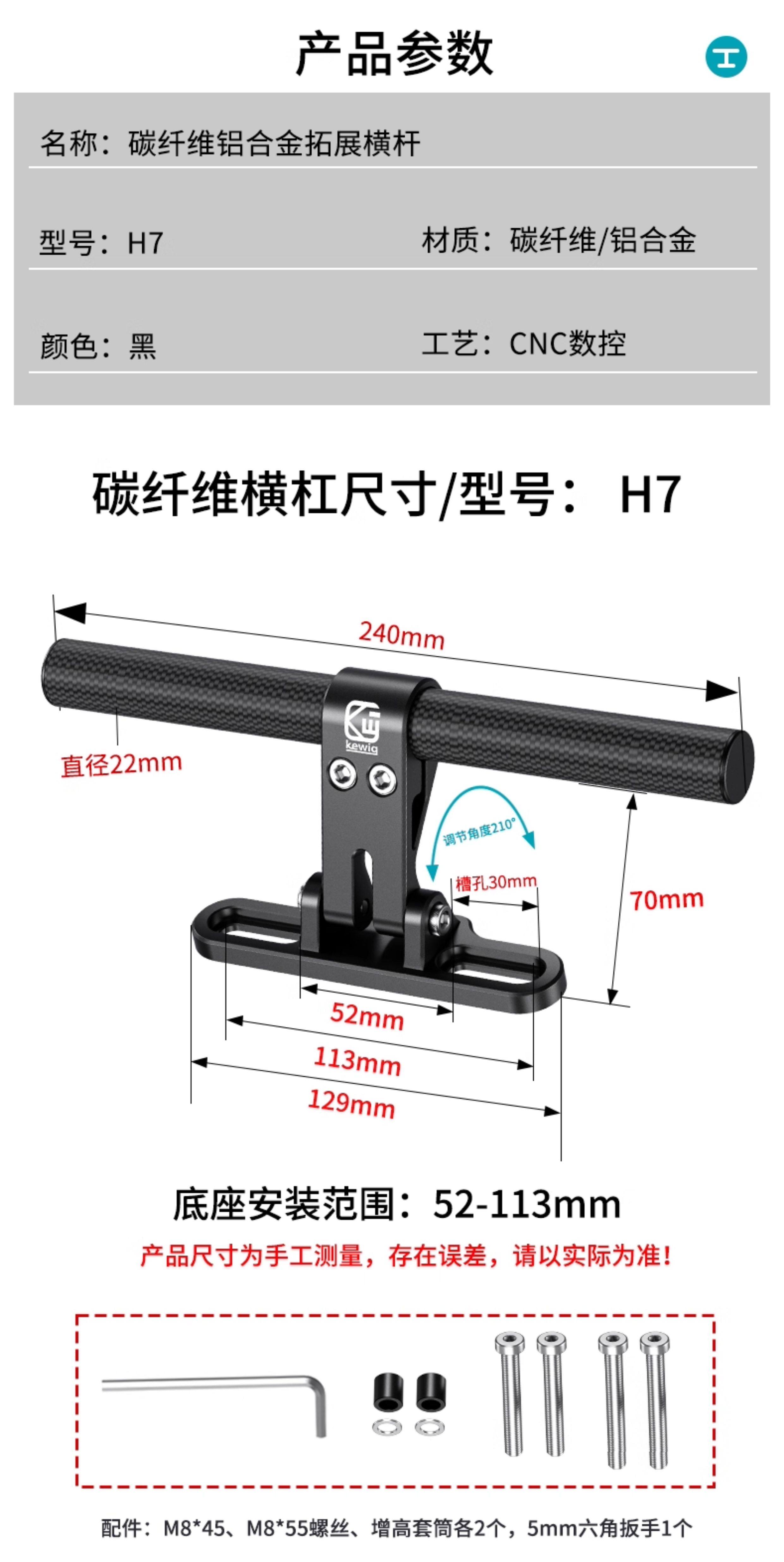 Kaiweige carbon fiber balance bar electric vehicle additional crossbar expansion bracket scooter aluminum alloy crossbar