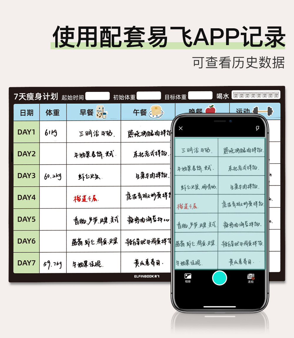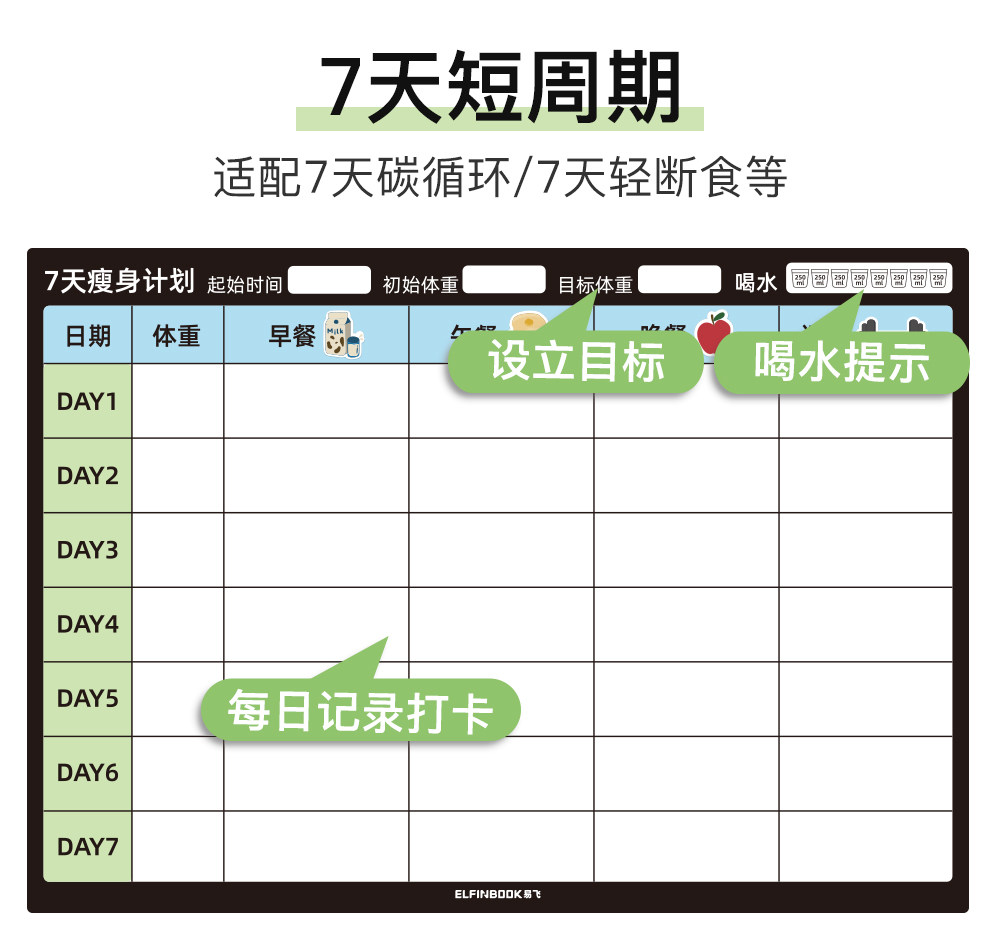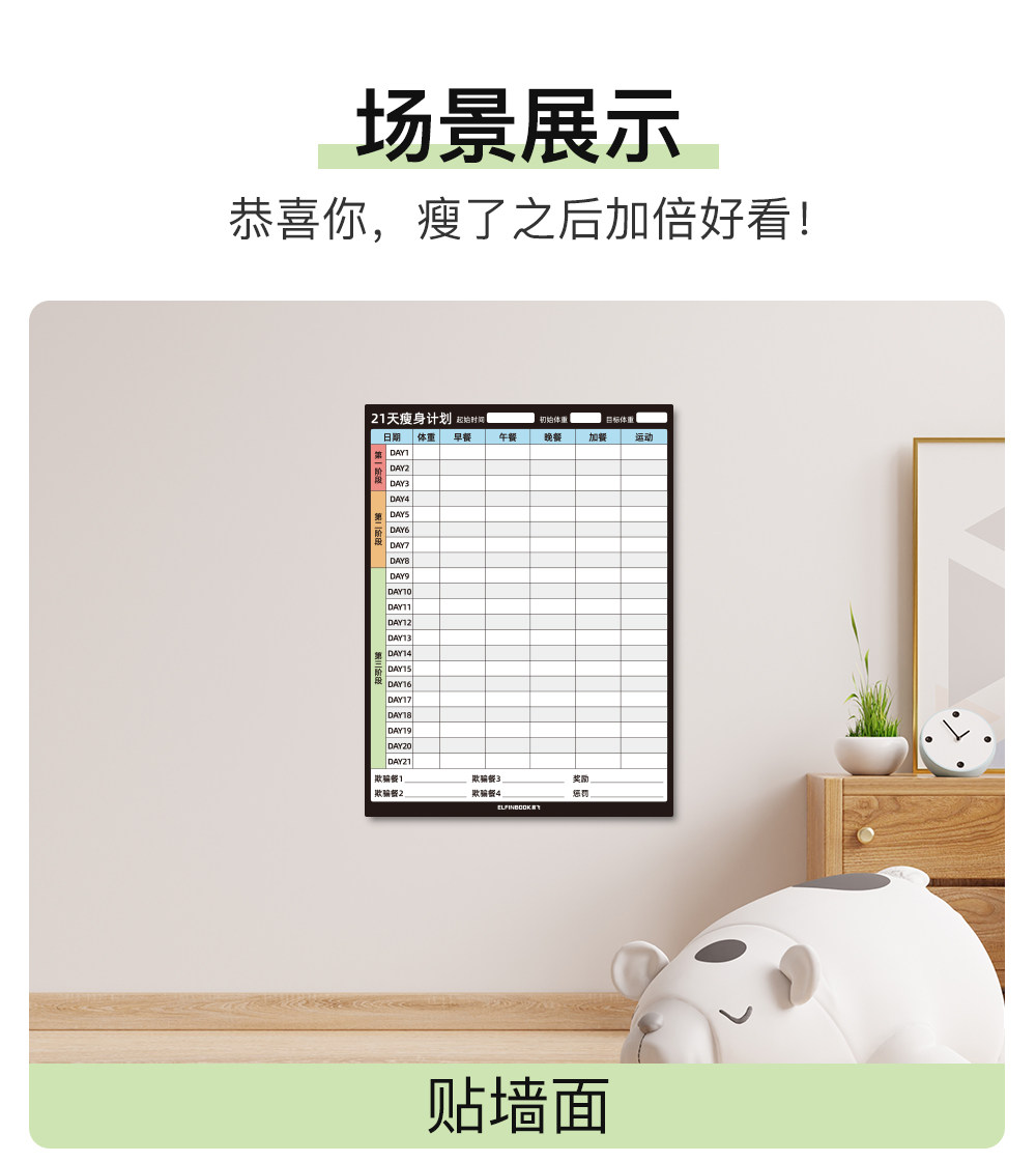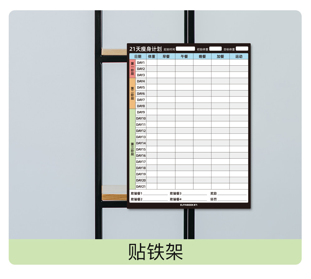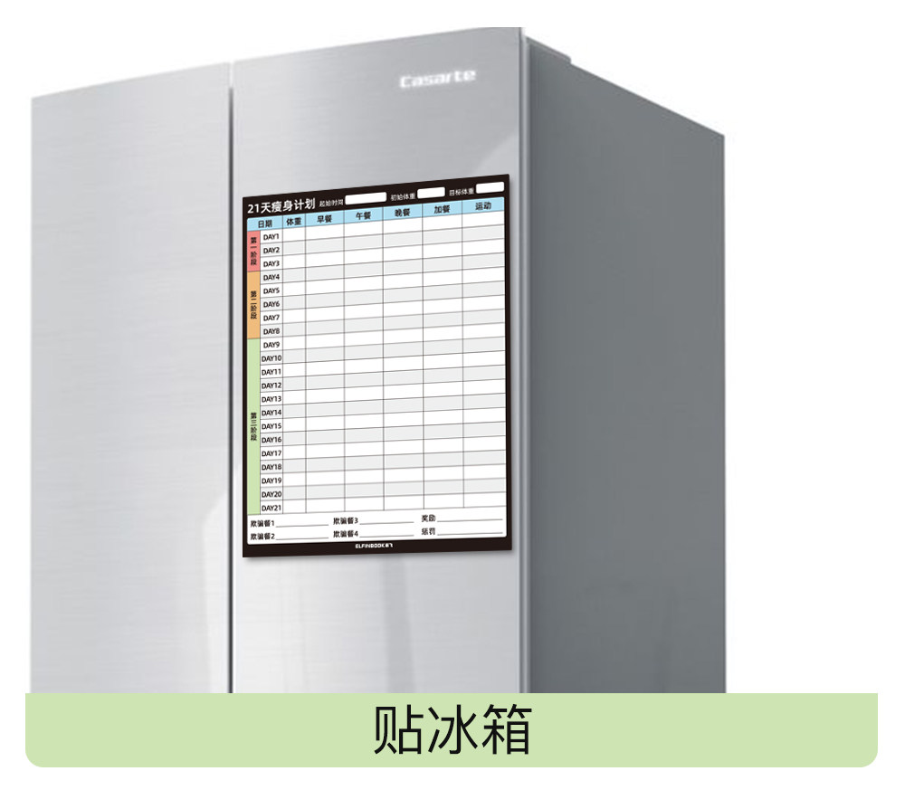 Yifei weight loss plan table refrigerator sticker food calorie table comparison table self-discipline clock weight loss artifact sports fitness wall stickers muscle gain training plan lazy slimming record book 30 days