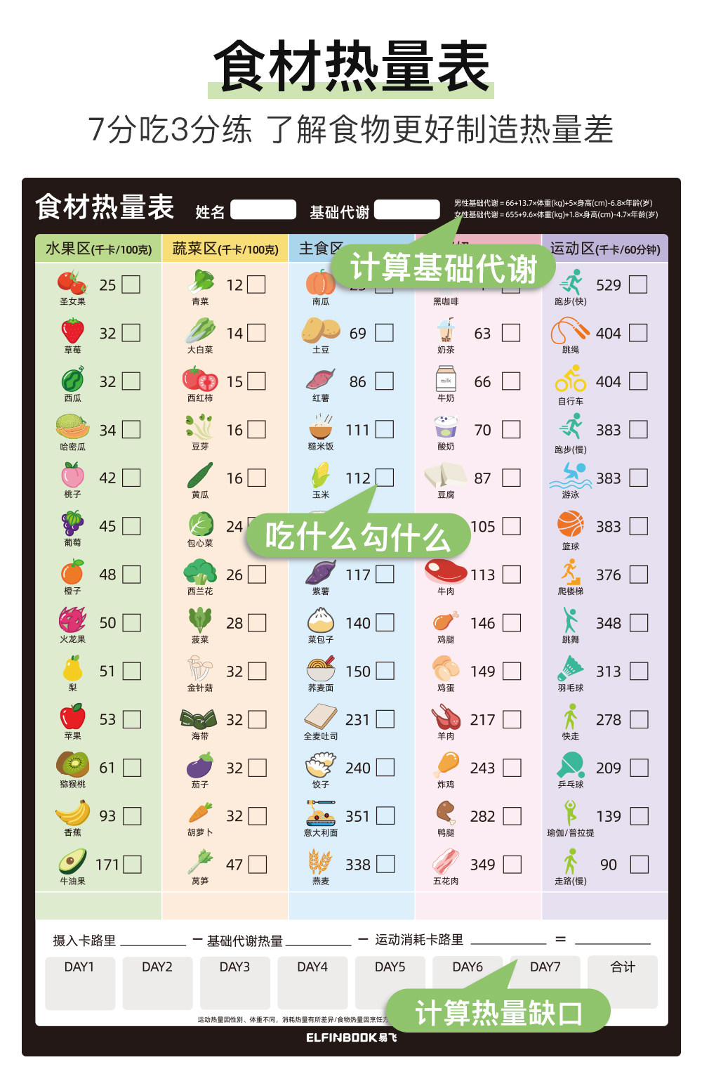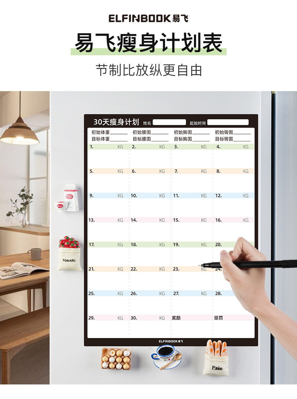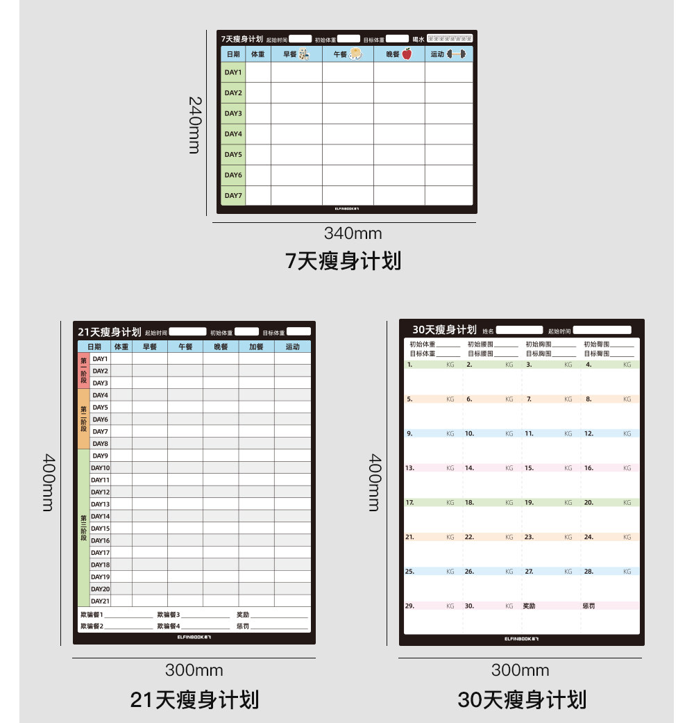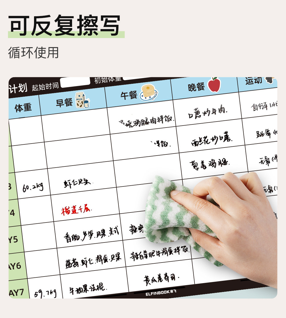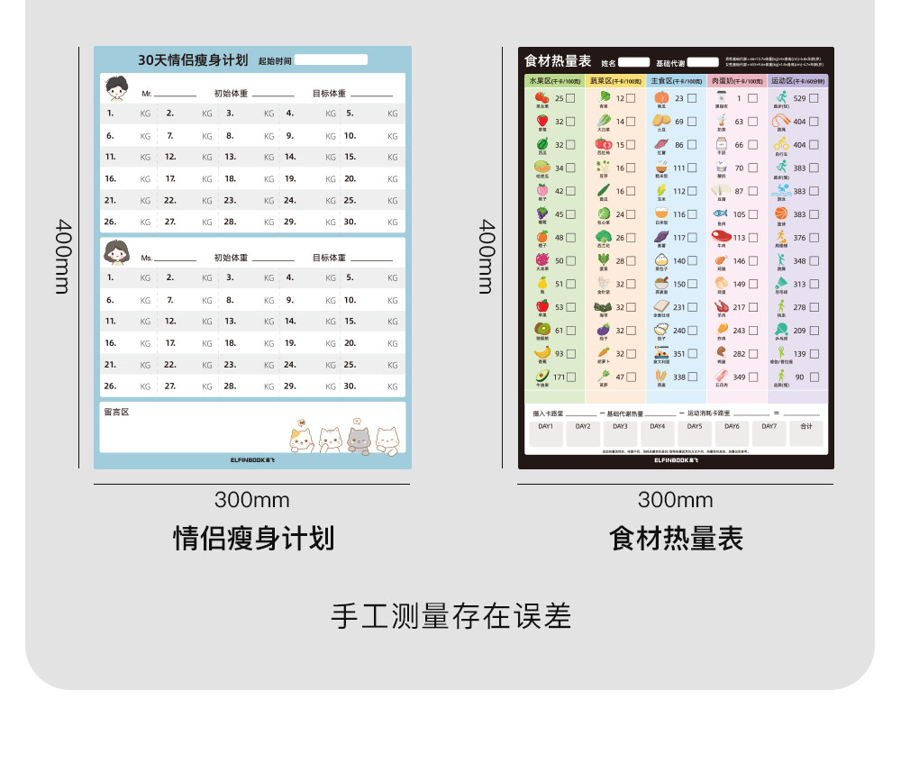 Yifei weight loss plan table refrigerator sticker food calorie table comparison table self-discipline clock weight loss artifact sports fitness wall stickers muscle gain training plan lazy slimming record book 30 days
