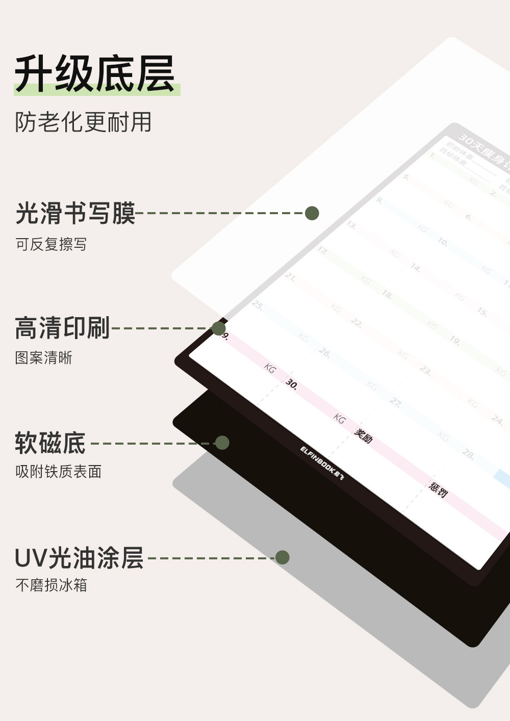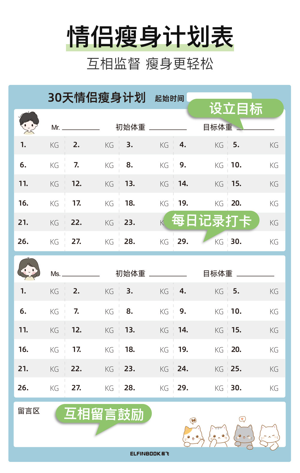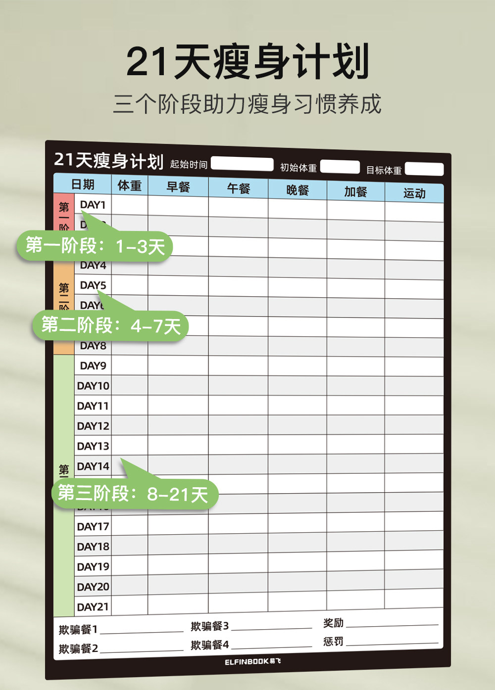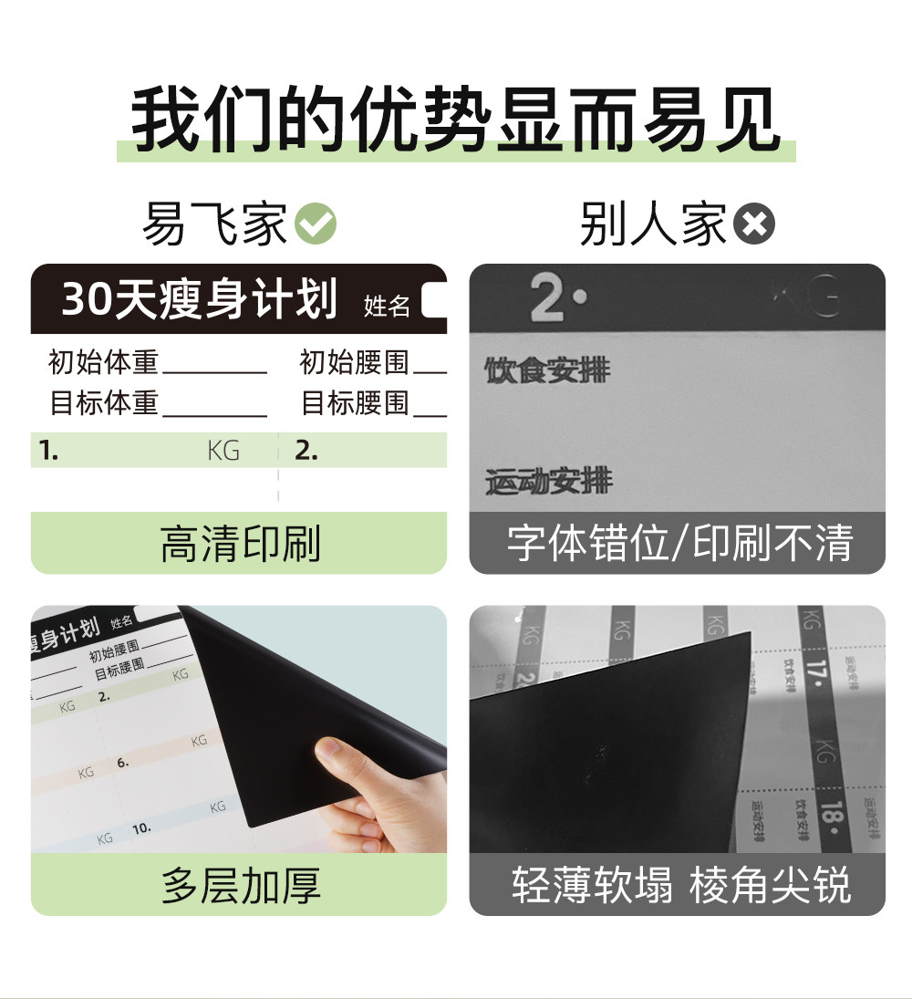 Yifei weight loss plan table refrigerator sticker food calorie table comparison table self-discipline clock weight loss artifact sports fitness wall stickers muscle gain training plan lazy slimming record book 30 days