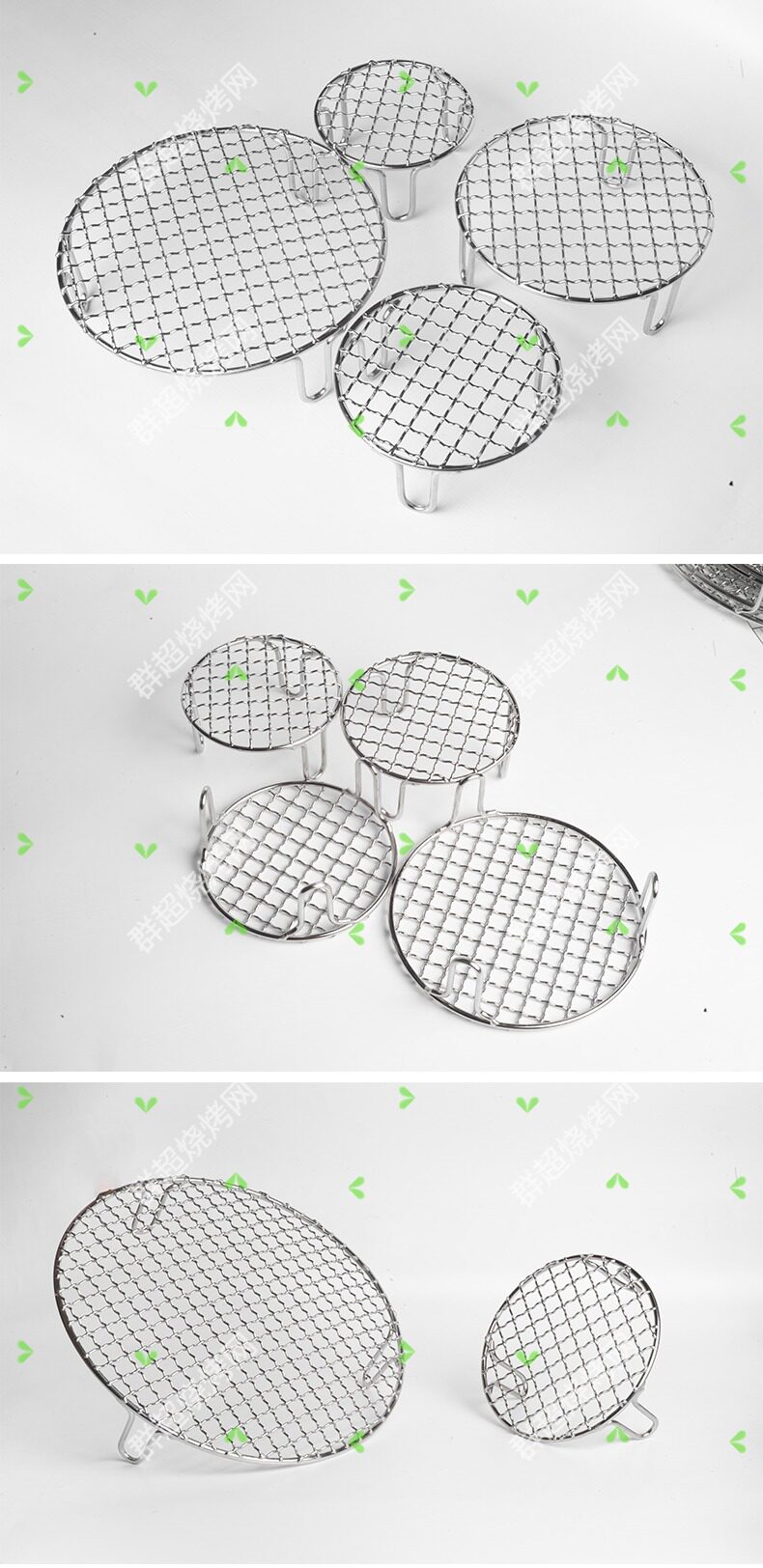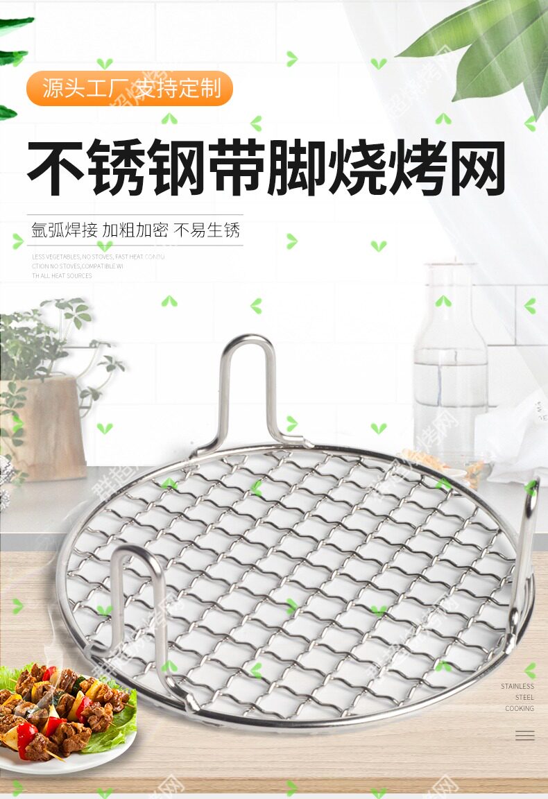 Stainless Steel Round Barbecue Grill Air Fryer Grid Rack with Raised Legs, 5cm Reinforced and Thickened for Oil and Water Drainage