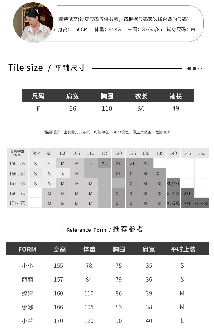 China (cm) 160-165/84-86 165-170 / 88-90 167-172 / 92-96 168-173 / 98-102 170-176 / 106-110