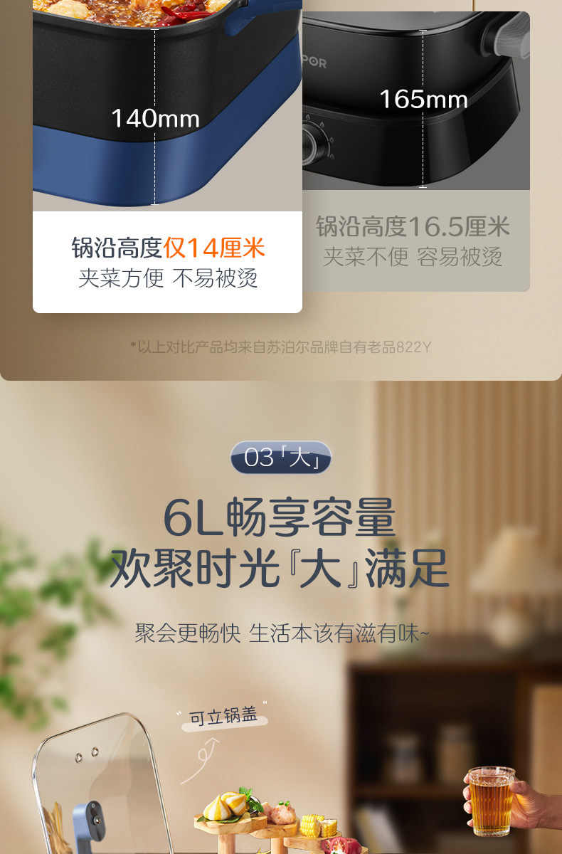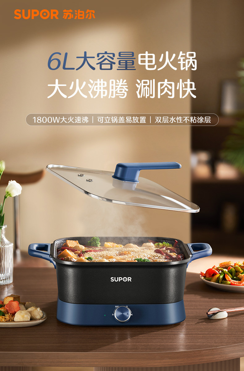 Supor Electric Hot Pot for Home Use, Multifunctional All-In-One Cooking Pot, Electric Cooking Pot, New Model with 6L Large Capacity