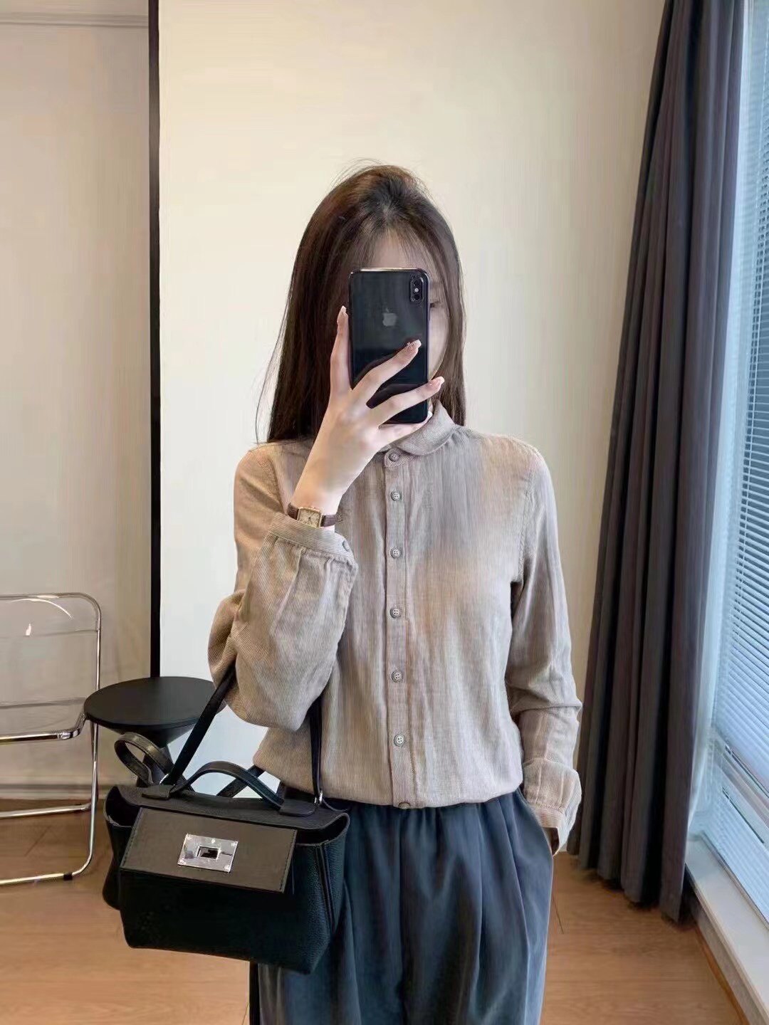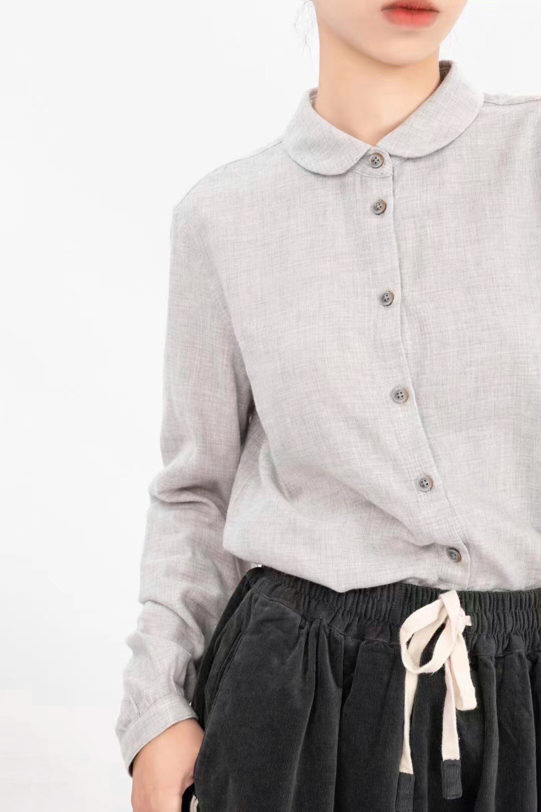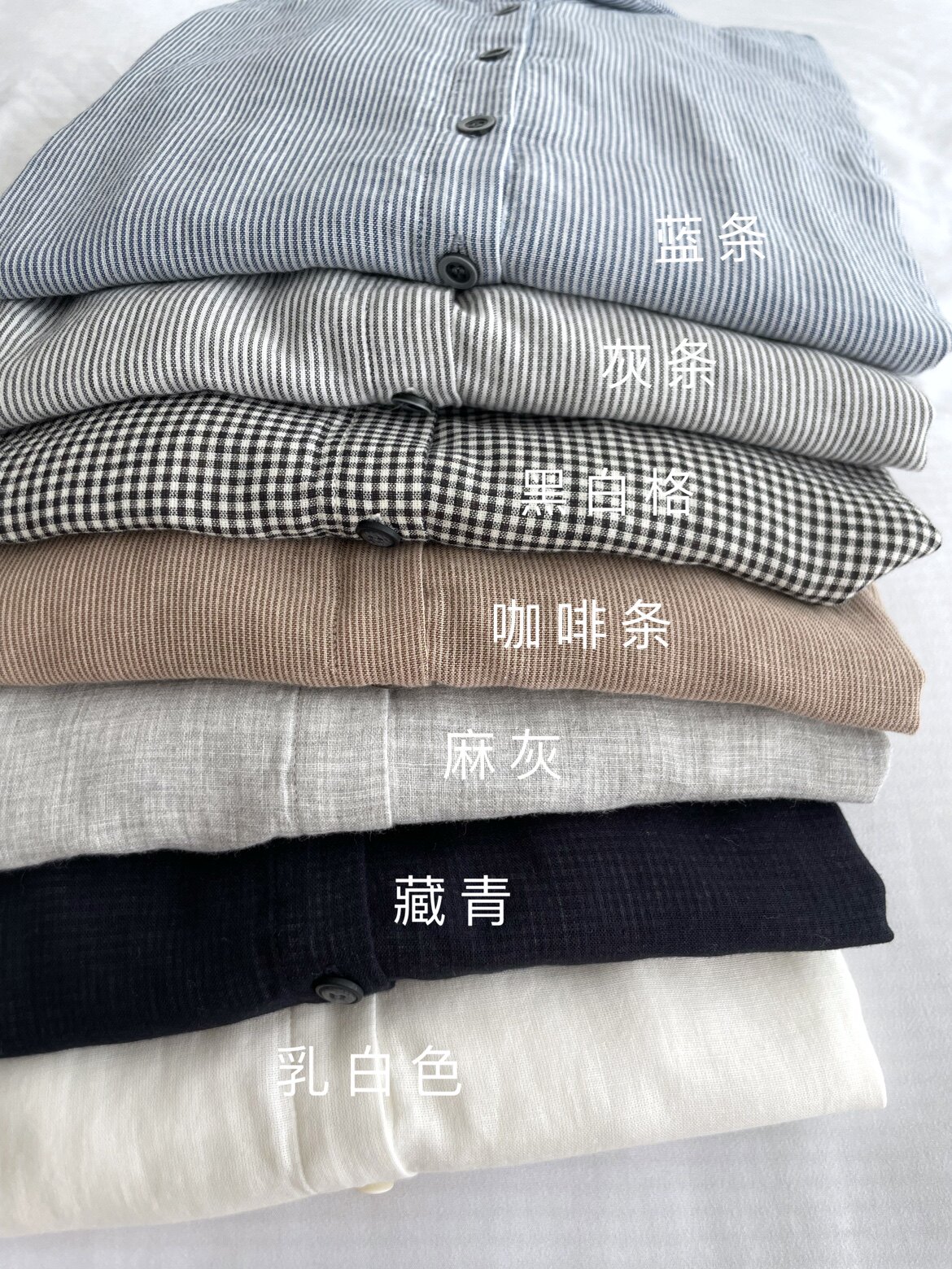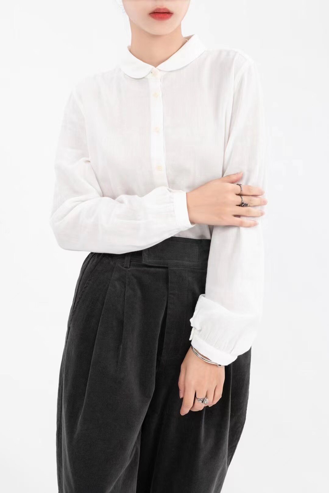 Japanese Order Autumn and Winter Simple Retro Mandarin Collar Doll Stripe Double-Layer Gauze Solid Color Women's Shirt Long-Sleeved Blouse